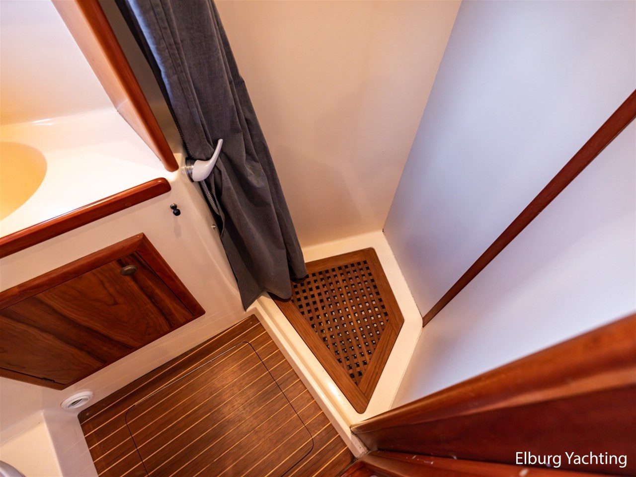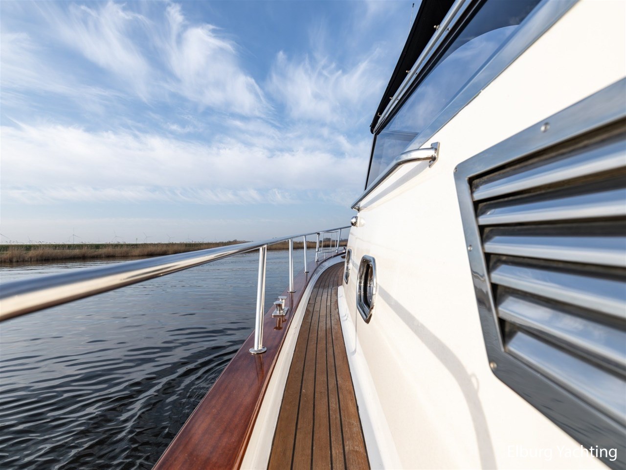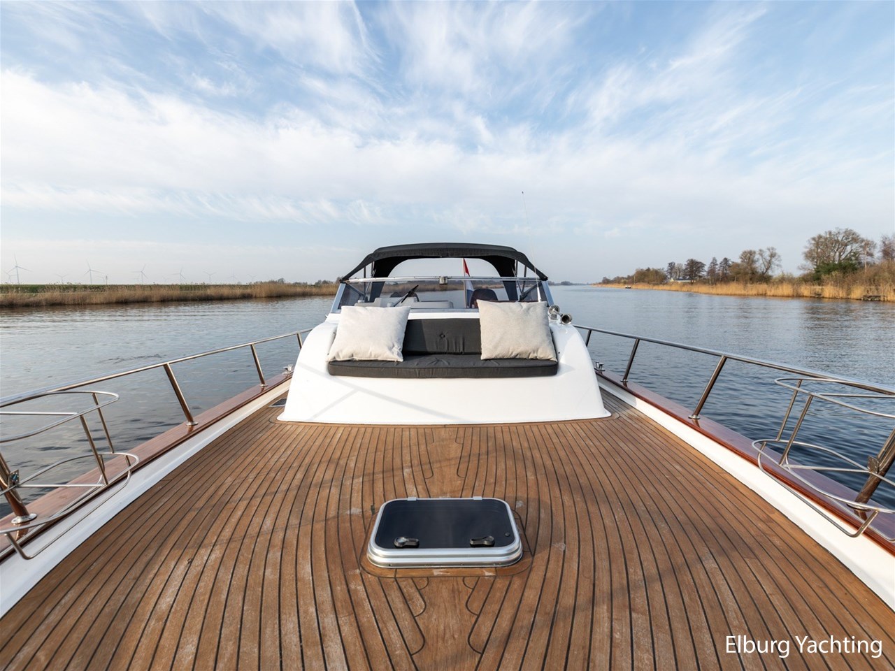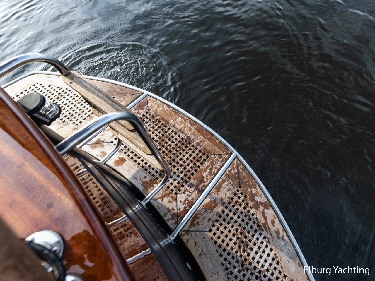 - Aangehangen met teak belegd + r.v.s. zwemtrap