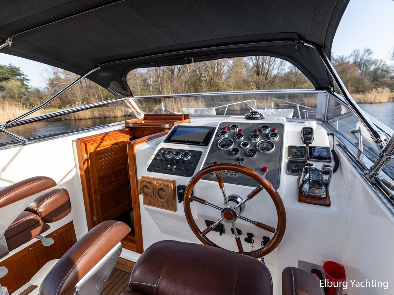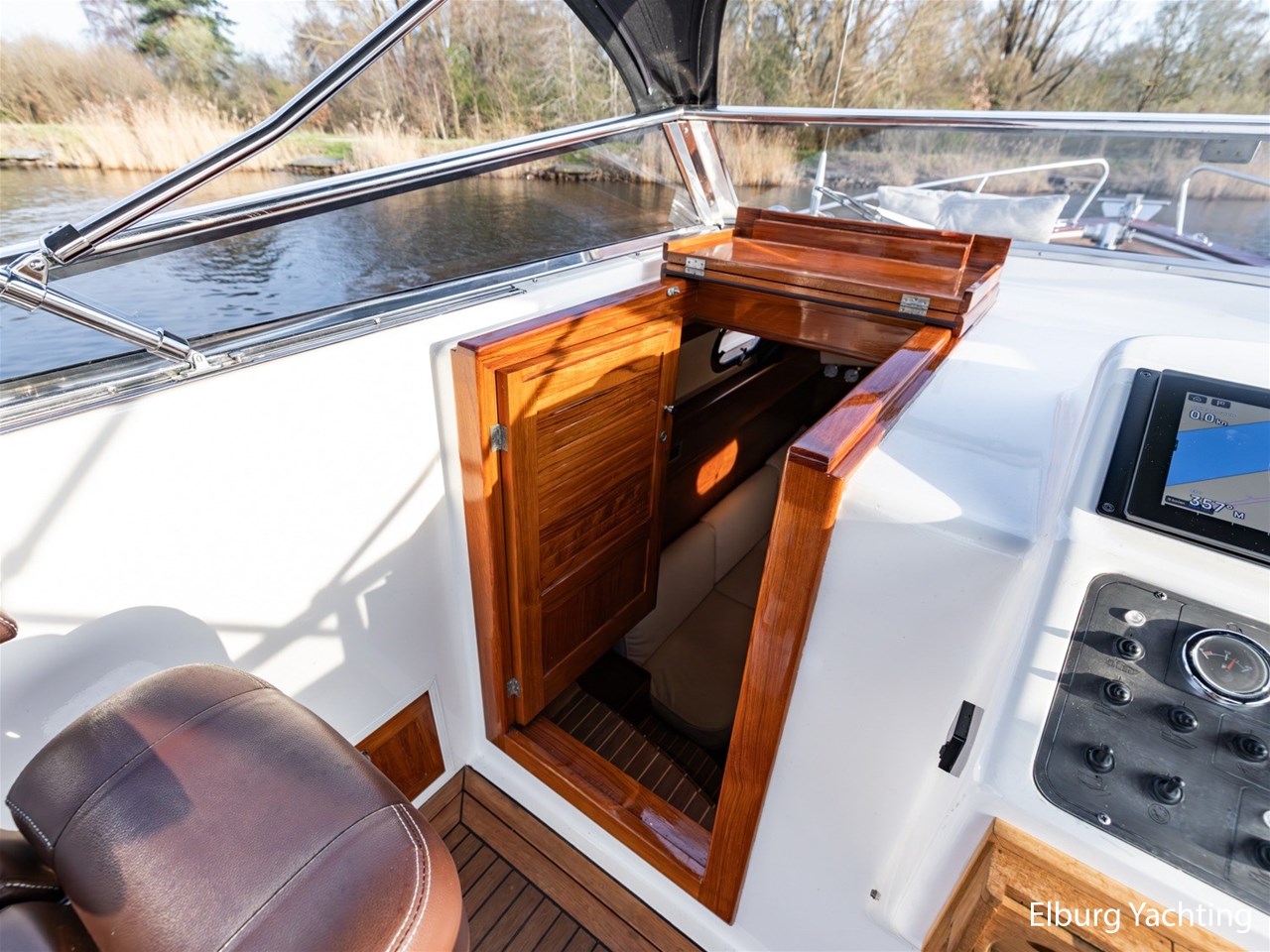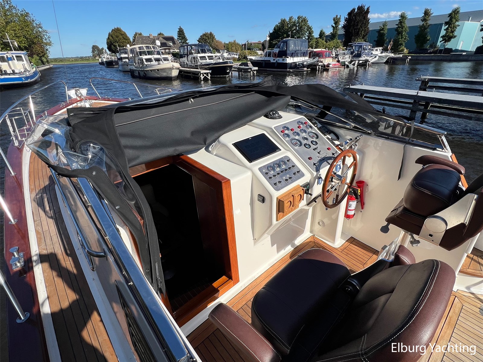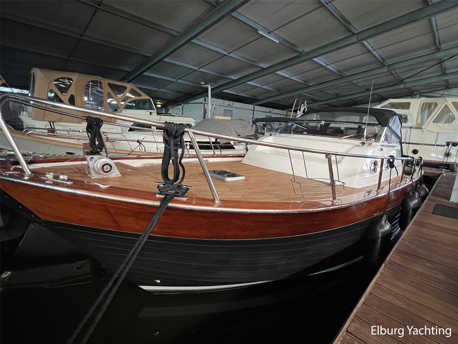 Prachtige Apreamare 10 Semi Cabinato met gezellige leefruimte buiten op zowel het voor- als achterdek. De huidige eigenaar heeft het afgelopen jaren vele zaken vernieuwd en verbeterd aan boord. De volgende werkzaamheden zijn uitgevoerd: Houtwerk/potdeksel in Q2 2025 opnieuw gelakt, keerkoppelingen zijn compleet gereviseerd, boiler 12 liter vervangen door nieuwe 40 liter boiler, Webasto heteluchtverwarming ingebouwd, nieuwe Raymarine plotter touchscreen en nieuwe Raymarine stuurautomaat, Garmin marifoon met AIS, 3000Watt omvormer Victron, Nieuwe accu's geplaatst, Nieuwe koelkast, Nieuwe lattenbodem en matrassen, onderwater schip kaal gehaald en opnieuw antifouling aangebracht. Sinds 2021 heeft dit schip het alle jaren in een schiphuis gelegen. Dit schiphuis in Ossenzijl is separaat overdraagbaar in de vorm van huur of koop. Deze Apreamare 10 Semi Cabinato is voorzien van: vaste bank in kuip en op het voordek met afneembare kussens, biminitop over achterdek, bakskisten, r.v.s. fenderhouders, volledige kuip tent over stuurstand met uitneembare delen, machinekamer bereikbaar via twee grote kuipluiken, dubbele Separ brandstoffilters, twee luxe vaarstoelen in hoogte verstelbaar, trimtabs, radio, victron battery display. De tent is over de stuurstand is neerklapbaar waarmee een minimale doorvaarthoogte van 2,20meter kan worden verkregen.