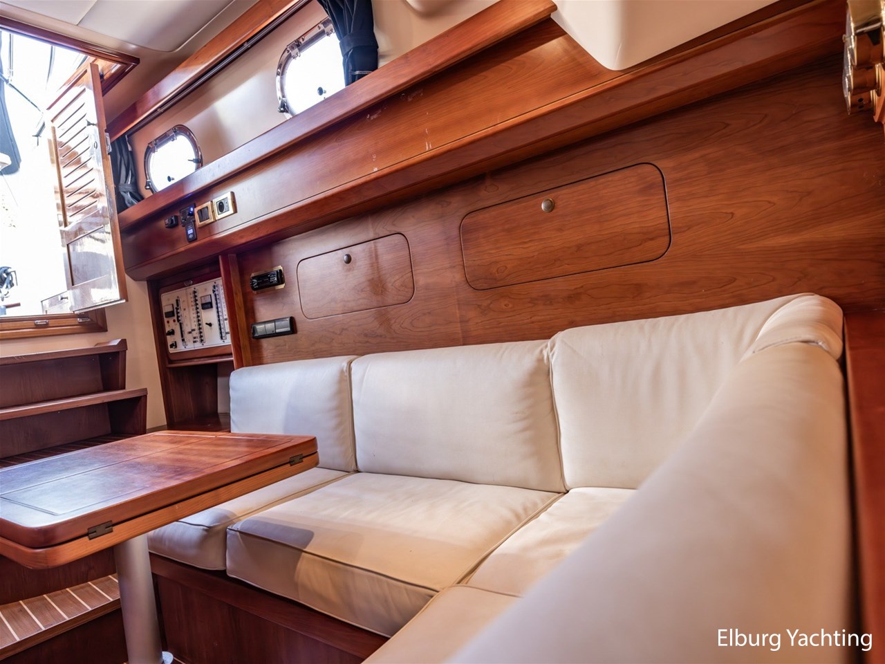 - Teak scheepsinterieur met creme kleurig lederen binnen bekleding
