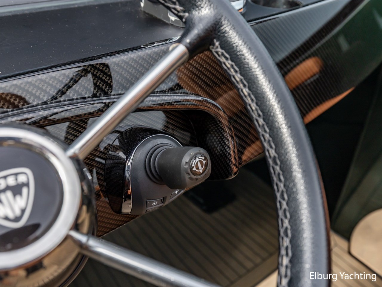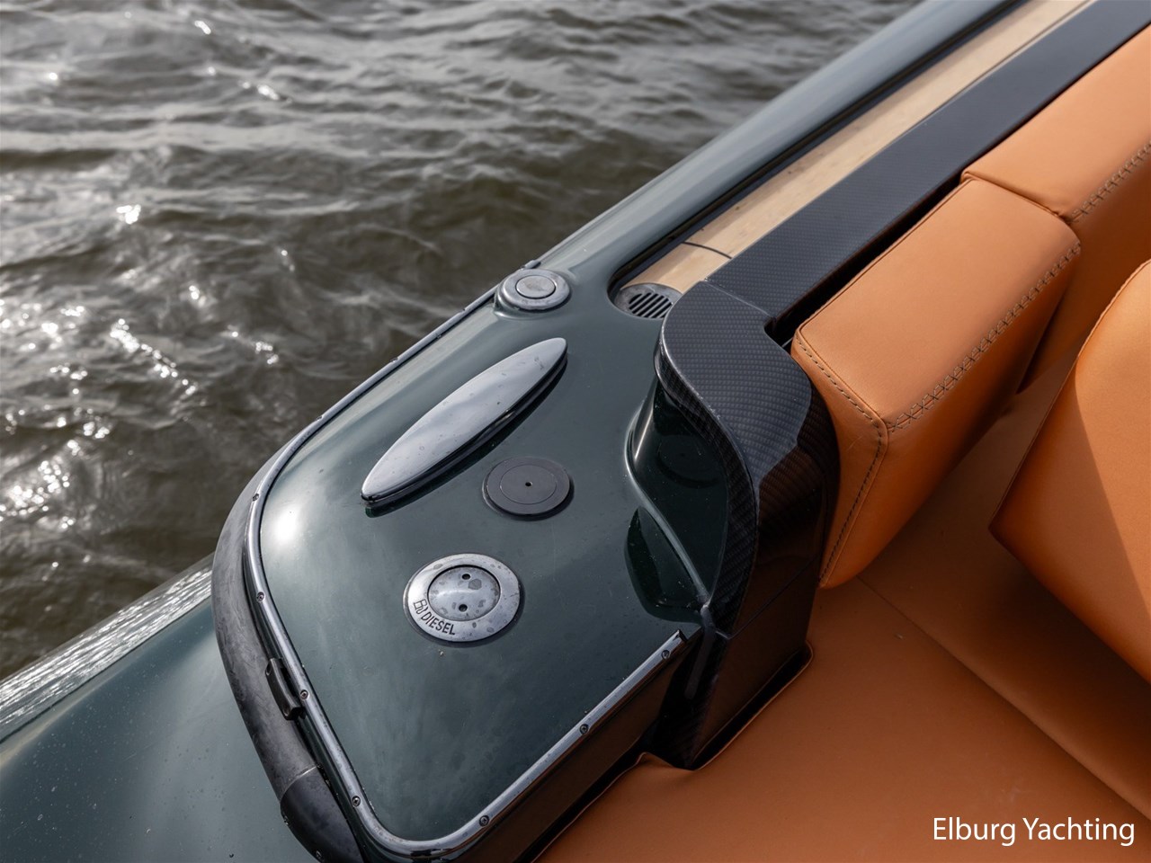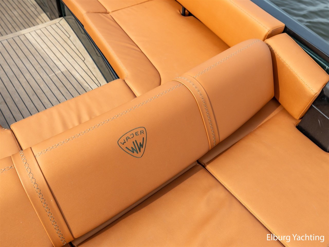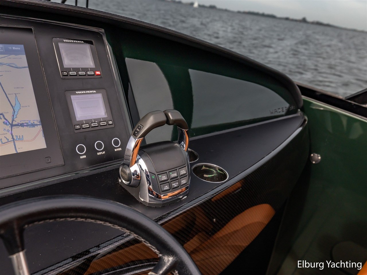 Prachtig uitgevoerde Wajer 38 met de IPS600 topmotorisering van Volvo Penta. Deze Wajer 38 is begin 2025 volledig door Wajer Yachts herspoten in de kleur Bentley Cumbrian Green, de binnen- en buitenbekleding is vernieuwd, er is een uitneembaar ligbed in het achterdek toegevoegd en de zwemtrap is vergemakkelijkt met een uitneembare handreling. In het oog springende elementen is het carbon fiber afgewerkte exterieur design, zwart geanodiseerd r.v.s. dekbeslag, Fusion audio met 4 versterkers / 8 speakers / 2 woofers, onderwaterverlichting, Webasto verwarming en airconditioning. Verder is deze Wajer 38 uitgerust met: dimbare sfeerverlichting in de kuip en kajuit, zonnebed op het voordek met afdekhoes, ankerkluis met bergruimte en water aansluiting, inklapbare fenderogen en bolders, wegneembare r.v.s. handgeleiders voor op- en afstappen van boord, klapbare voorruit, multifunctioneel display voor bediening boordsystemen en verlichting, drie keer Stidd stoelen met X-craft vering, afneembare zwarte biminitop over de stuurstand, volledige Wajer afdekhoes over de kuip. De kuipbank kan gebruikt worden in U-opstelling, volledig zonnebed of door het wegnemen van het middenstuk wordt er een volledige doorloop gecreëerd naar het zwemplateau. Topsnelheid ca. 45 knopen, kruissnelheid ca. 25 knopen.
