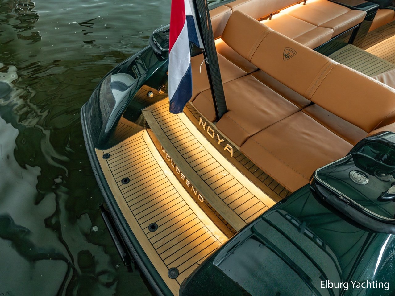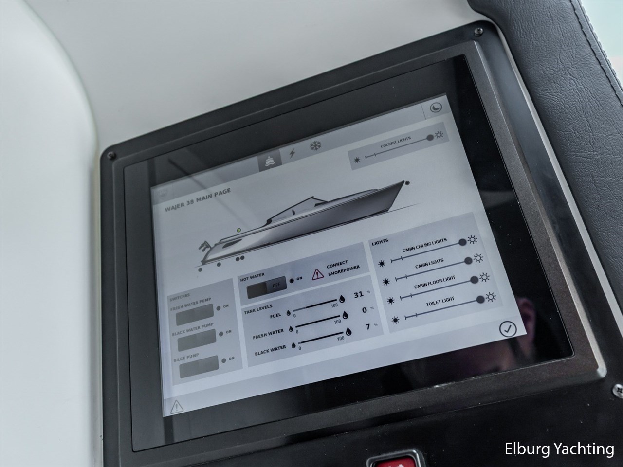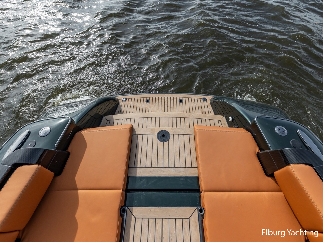 Prachtig uitgevoerde Wajer 38 met de IPS600 topmotorisering van Volvo Penta. Deze Wajer 38 is begin 2025 volledig door Wajer Yachts herspoten in de kleur Bentley Cumbrian Green, de binnen- en buitenbekleding is vernieuwd, er is een uitneembaar ligbed in het achterdek toegevoegd en de zwemtrap is vergemakkelijkt met een uitneembare handreling. In het oog springende elementen is het carbon fiber afgewerkte exterieur design, zwart geanodiseerd r.v.s. dekbeslag, Fusion audio met 4 versterkers / 8 speakers / 2 woofers, onderwaterverlichting, Webasto verwarming en airconditioning. Verder is deze Wajer 38 uitgerust met: dimbare sfeerverlichting in de kuip en kajuit, zonnebed op het voordek met afdekhoes, ankerkluis met bergruimte en water aansluiting, inklapbare fenderogen en bolders, wegneembare r.v.s. handgeleiders voor op- en afstappen van boord, klapbare voorruit, multifunctioneel display voor bediening boordsystemen en verlichting, drie keer Stidd stoelen met X-craft vering, afneembare zwarte biminitop over de stuurstand, volledige Wajer afdekhoes over de kuip. De kuipbank kan gebruikt worden in U-opstelling, volledig zonnebed of door het wegnemen van het middenstuk wordt er een volledige doorloop gecreëerd naar het zwemplateau. Topsnelheid ca. 45 knopen, kruissnelheid ca. 25 knopen.