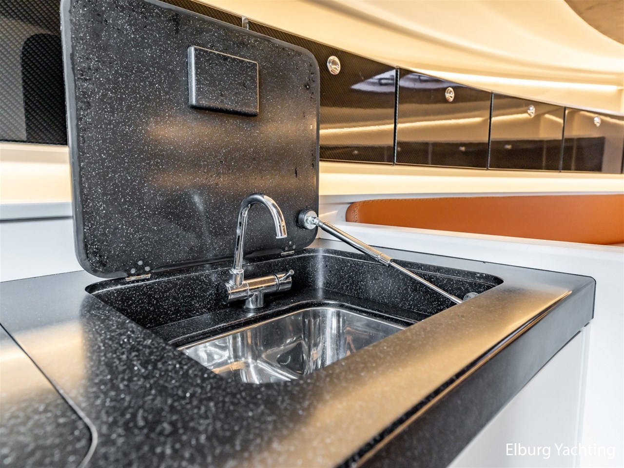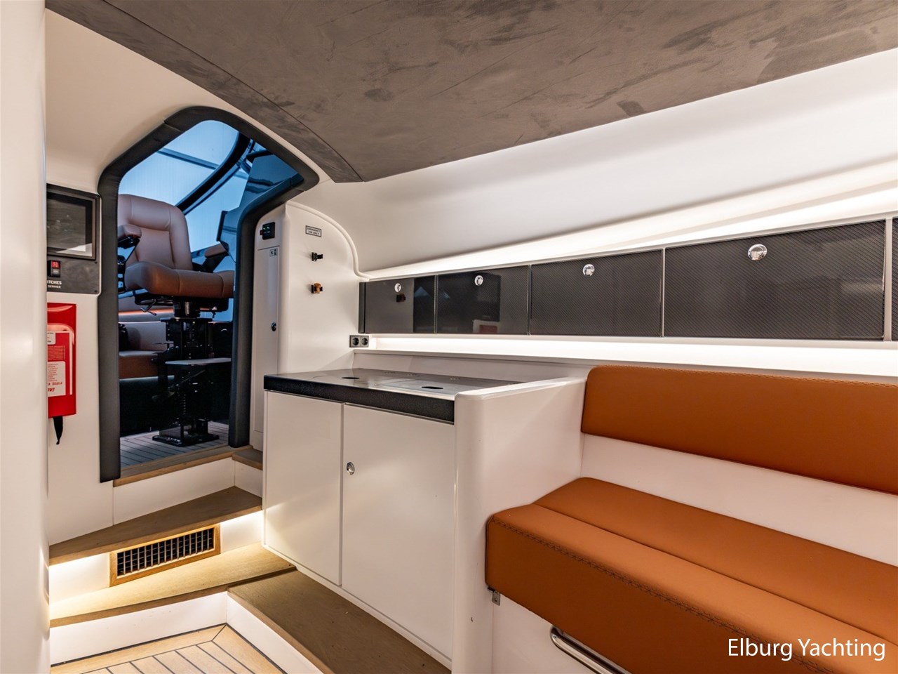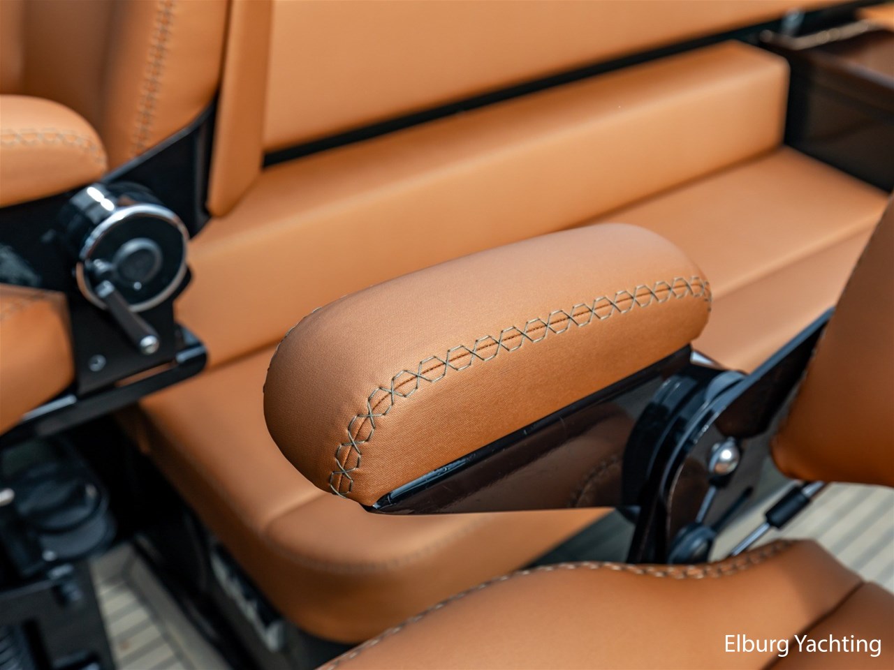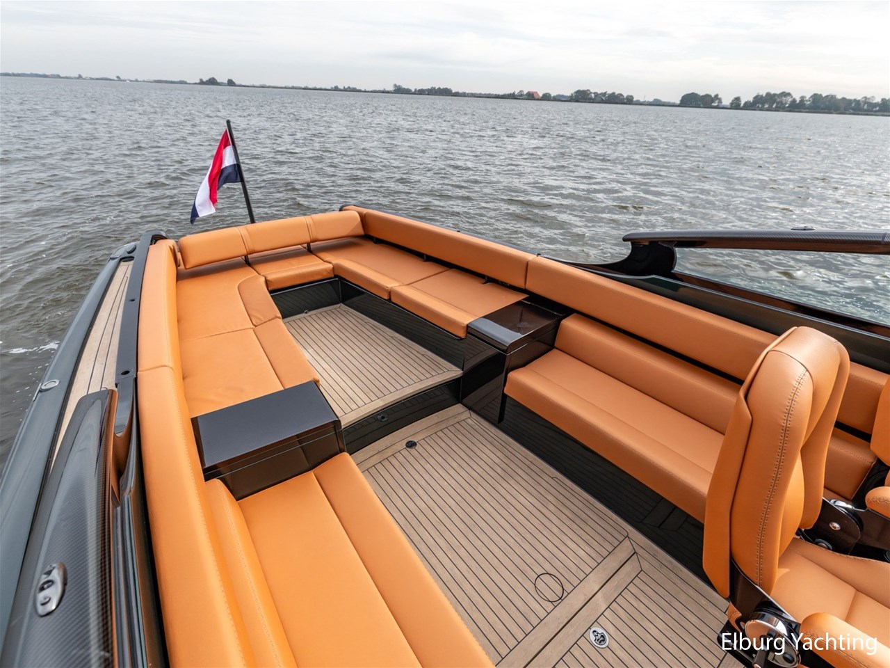 Prachtig uitgevoerde Wajer 38 met de IPS600 topmotorisering van Volvo Penta. Deze Wajer 38 is begin 2025 volledig door Wajer Yachts herspoten in de kleur Bentley Cumbrian Green, de binnen- en buitenbekleding is vernieuwd, er is een uitneembaar ligbed in het achterdek toegevoegd en de zwemtrap is vergemakkelijkt met een uitneembare handreling. In het oog springende elementen is het carbon fiber afgewerkte exterieur design, zwart geanodiseerd r.v.s. dekbeslag, Fusion audio met 4 versterkers / 8 speakers / 2 woofers, onderwaterverlichting, Webasto verwarming en airconditioning. Verder is deze Wajer 38 uitgerust met: dimbare sfeerverlichting in de kuip en kajuit, zonnebed op het voordek met afdekhoes, ankerkluis met bergruimte en water aansluiting, inklapbare fenderogen en bolders, wegneembare r.v.s. handgeleiders voor op- en afstappen van boord, klapbare voorruit, multifunctioneel display voor bediening boordsystemen en verlichting, drie keer Stidd stoelen met X-craft vering, afneembare zwarte biminitop over de stuurstand, volledige Wajer afdekhoes over de kuip. De kuipbank kan gebruikt worden in U-opstelling, volledig zonnebed of door het wegnemen van het middenstuk wordt er een volledige doorloop gecreëerd naar het zwemplateau. Topsnelheid ca. 45 knopen, kruissnelheid ca. 25 knopen.