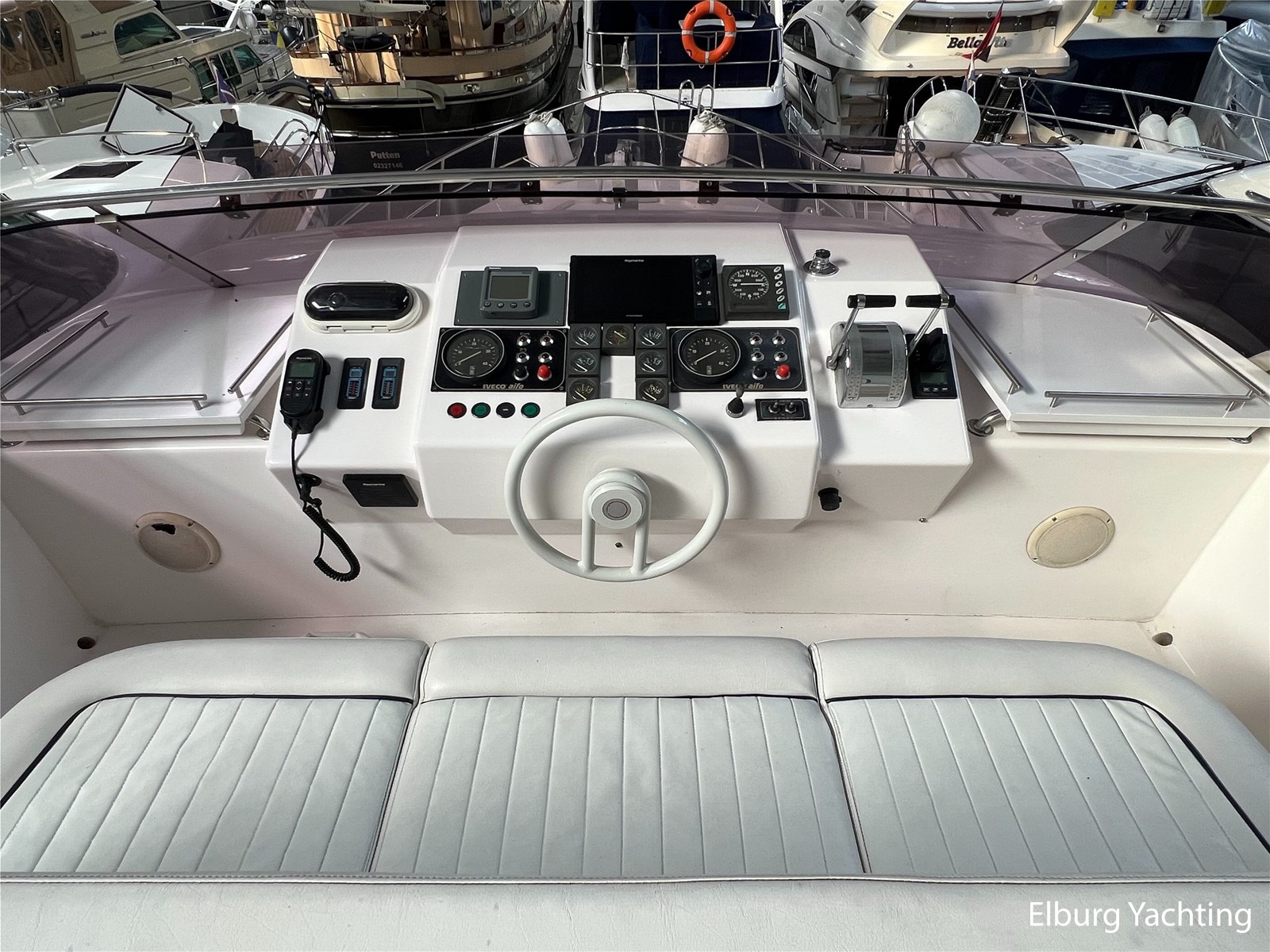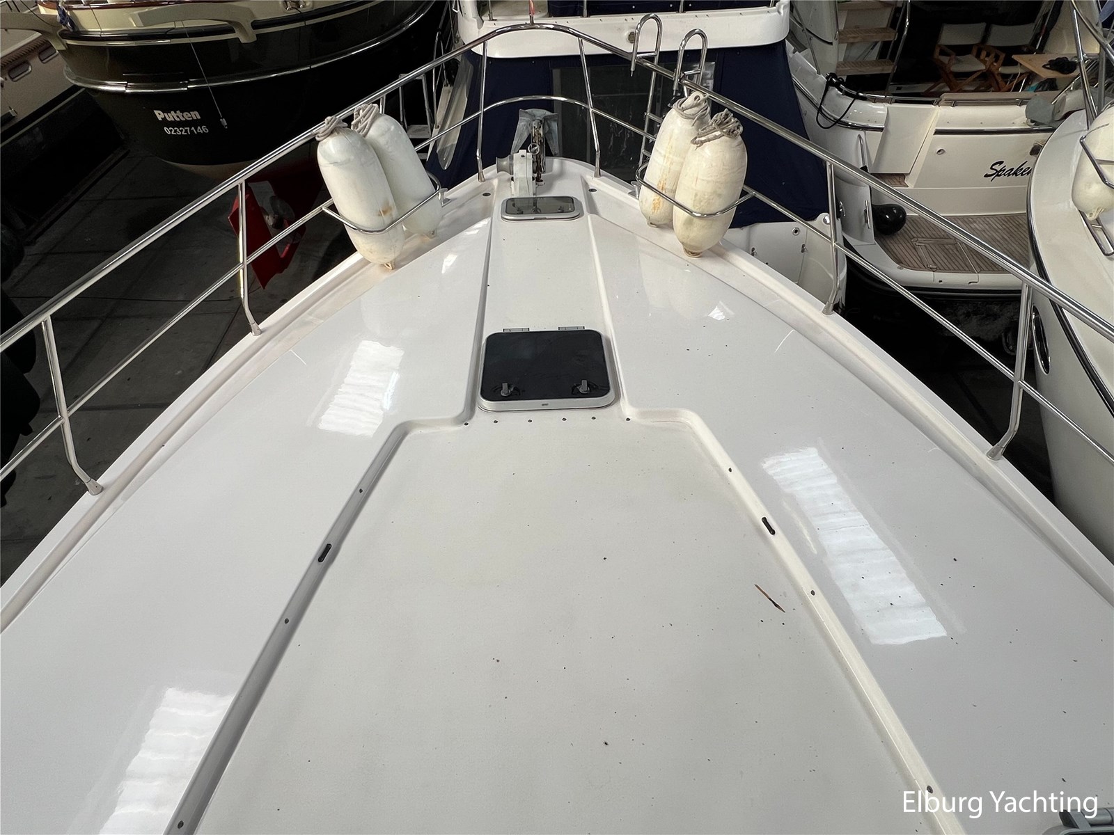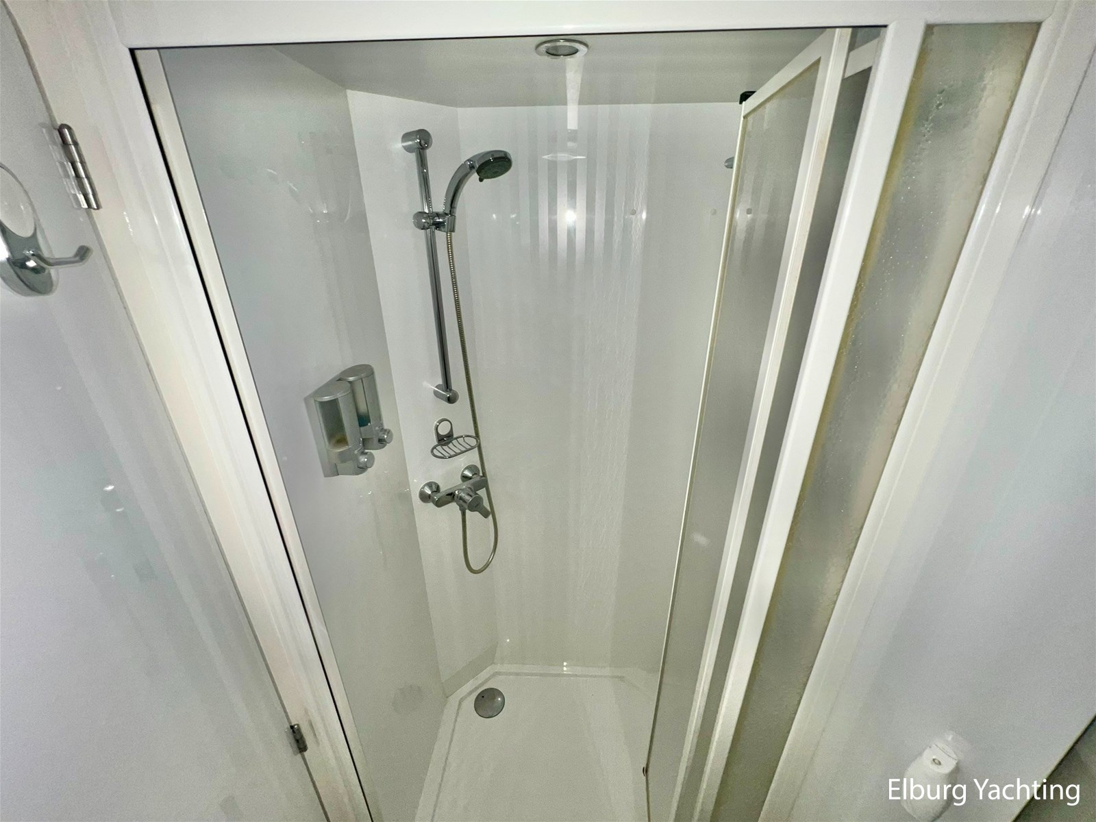 Deze ruime en sportieve Neptunus 156 verkeert in nette staat voor zijn leeftijd en wordt verkocht door de eerste eigenaar. Het jacht beschikt over drie hutten voor minimaal 6 opvarenden en heeft twee aparte badkamers. De open kuip en de salon zijn gelijkvloers met elkaar verbonden. Een complete tent dekt de open kuip af met grote zichtvensters. Via een vaste trap in de kuip krijg je krijg je toegang tot de riante flybridge met een U-vormige zitbank. De stuurstand heeft een 2-persoons vaarbank en biedt een overzichtelijke dashboard met alle benodigde apparatuur waaronder een vernieuwde Raymarine Axiom Pro 9 S plotter. De salon wordt betreden via een afsluitbare r.v.s. schuifpui. Een riante L-bank met twee geïntegreerde fauteuils bieden veel zit comfort. Er zijn veel opbergmogelijkheden in banken en kasten. De dinette bevindt zich tegen over de stuurstand waardoor de gehele crew op vaarhoogte kan meekijken. Benedendeks bevind zich de kombuis met een koelkast / vriezer / magnetron / vaatwasser / kookplaat en spoelbak. Aan SB-zijde bevind zich een 2 x 1-persoons gastenhut en aan BB-zijde een 1 x 2 persoons hut met frans bed. De gasten badkamer bevind zich midscheeps en is vrij toegankelijk. In het voorschip bevind zich de eigenaarshut met een 1 x 2 persoons bed met badkamer en-suite. Onder het bed van de voorhut bevind zich een ruime berging. Via een breed luik in de kuipvloer wordt het achterschip betreden. In het achterschip bevind zich opbergruimte, zowel een wasmachine als droger, de generator en nog verdere techniek. Via het achterschip is er een doorloop naar de machinekamer. De bakboordmotor is in de winter van 2023-2024 vervangen, rekeningen van deze werkzaamheden zijn beschikbaar. Deze Neptunus 156 is verder voorzien van: Afneembare kussens voor het achterdek, flybridge en voordek, bimini top over de flybridge, delen op de flybridge voorzien van afdekhoezen, r.v.s. fenderhouders, afsluitbare kuip met deur naar zwemplateau, buiten verlichting, 4 x schuifraam in salon voor ventilatie + 2 horren, muggenhorren voor patrijspoorten, afneembaar zonnescherm op voorruit, zijladder. Stahoogte in het interieur ca. 2 meter.