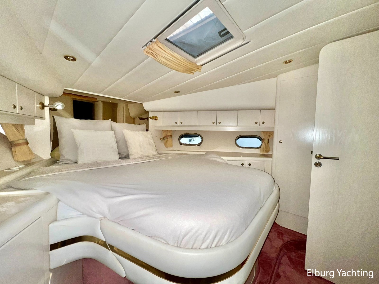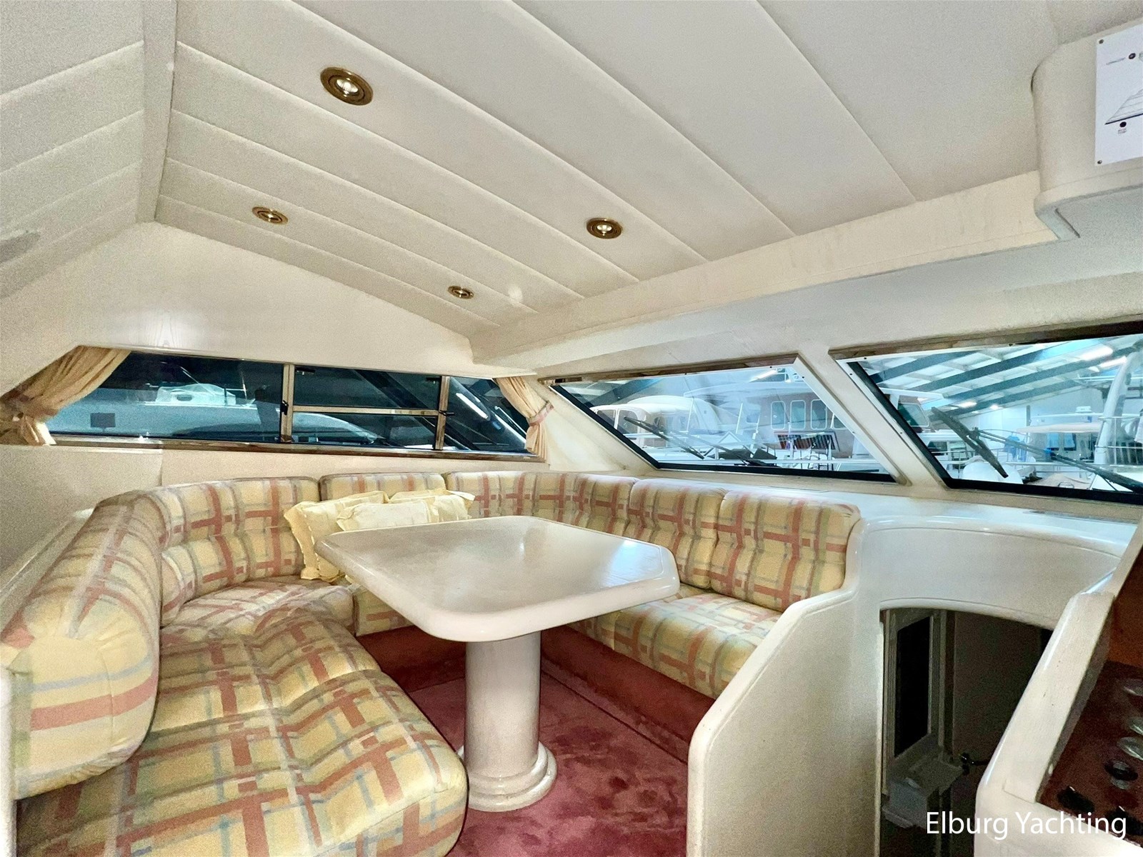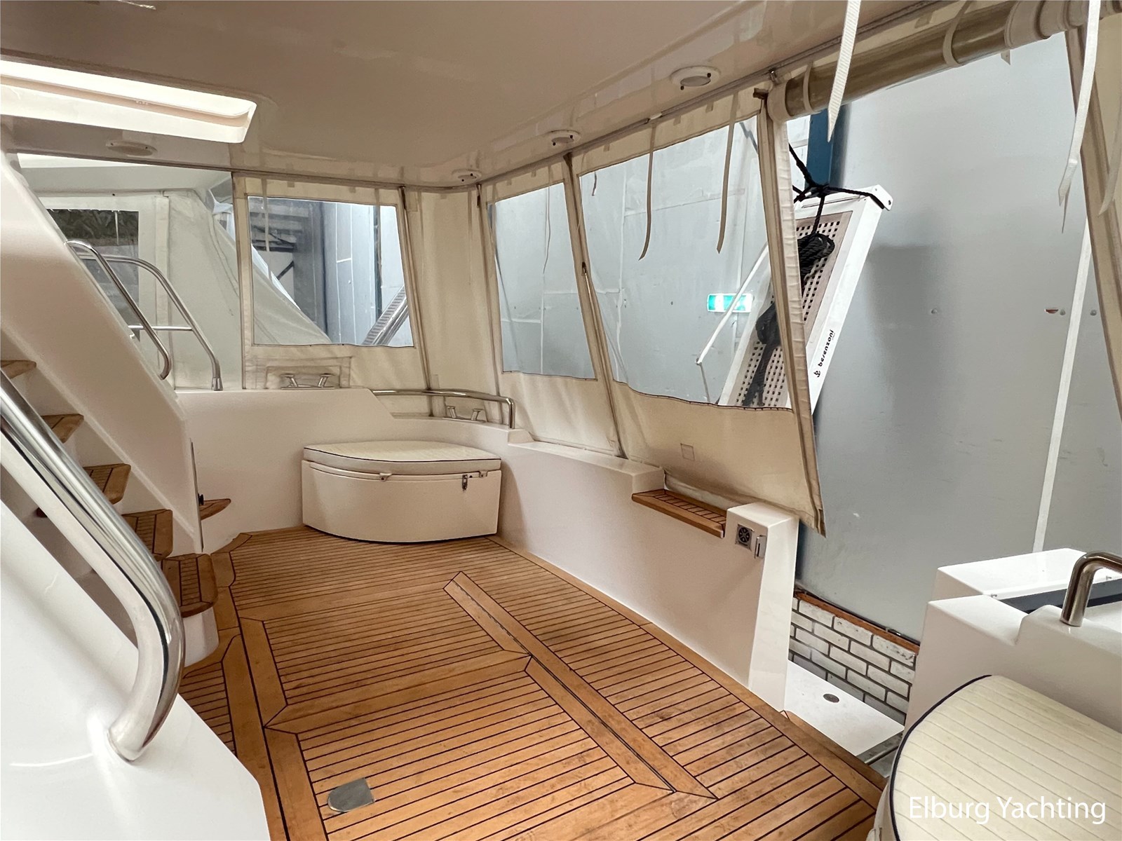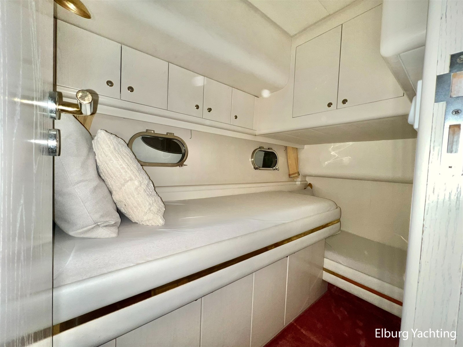 Deze ruime en sportieve Neptunus 156 verkeert in nette staat voor zijn leeftijd en wordt verkocht door de eerste eigenaar. Het jacht beschikt over drie hutten voor minimaal 6 opvarenden en heeft twee aparte badkamers. De open kuip en de salon zijn gelijkvloers met elkaar verbonden. Een complete tent dekt de open kuip af met grote zichtvensters. Via een vaste trap in de kuip krijg je krijg je toegang tot de riante flybridge met een U-vormige zitbank. De stuurstand heeft een 2-persoons vaarbank en biedt een overzichtelijke dashboard met alle benodigde apparatuur waaronder een vernieuwde Raymarine Axiom Pro 9 S plotter. De salon wordt betreden via een afsluitbare r.v.s. schuifpui. Een riante L-bank met twee geïntegreerde fauteuils bieden veel zit comfort. Er zijn veel opbergmogelijkheden in banken en kasten. De dinette bevindt zich tegen over de stuurstand waardoor de gehele crew op vaarhoogte kan meekijken. Benedendeks bevind zich de kombuis met een koelkast / vriezer / magnetron / vaatwasser / kookplaat en spoelbak. Aan SB-zijde bevind zich een 2 x 1-persoons gastenhut en aan BB-zijde een 1 x 2 persoons hut met frans bed. De gasten badkamer bevind zich midscheeps en is vrij toegankelijk. In het voorschip bevind zich de eigenaarshut met een 1 x 2 persoons bed met badkamer en-suite. Onder het bed van de voorhut bevind zich een ruime berging. Via een breed luik in de kuipvloer wordt het achterschip betreden. In het achterschip bevind zich opbergruimte, zowel een wasmachine als droger, de generator en nog verdere techniek. Via het achterschip is er een doorloop naar de machinekamer. De bakboordmotor is in de winter van 2023-2024 vervangen, rekeningen van deze werkzaamheden zijn beschikbaar. Deze Neptunus 156 is verder voorzien van: Afneembare kussens voor het achterdek, flybridge en voordek, bimini top over de flybridge, delen op de flybridge voorzien van afdekhoezen, r.v.s. fenderhouders, afsluitbare kuip met deur naar zwemplateau, buiten verlichting, 4 x schuifraam in salon voor ventilatie + 2 horren, muggenhorren voor patrijspoorten, afneembaar zonnescherm op voorruit, zijladder. Stahoogte in het interieur ca. 2 meter.