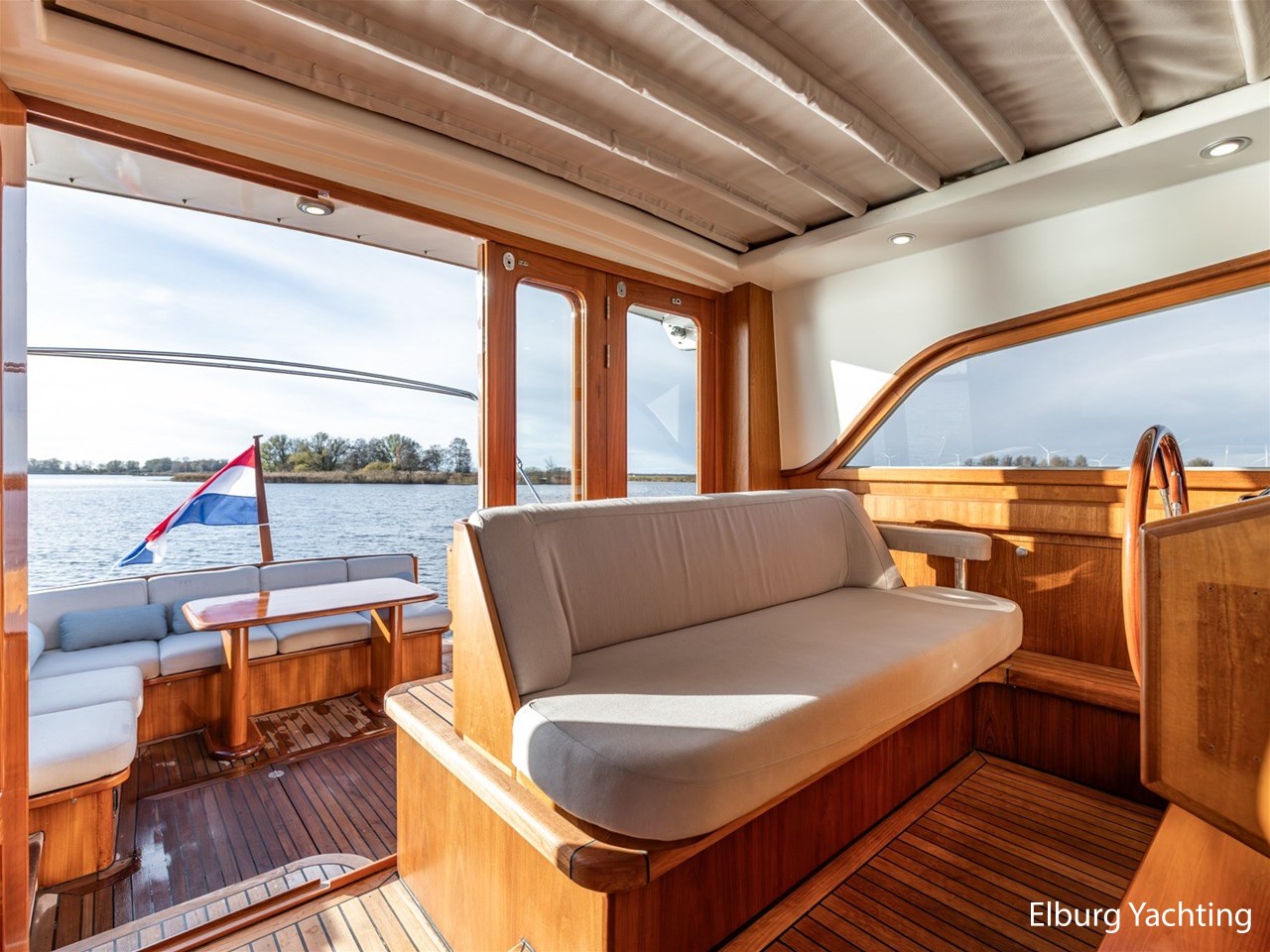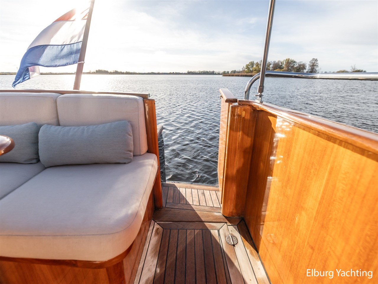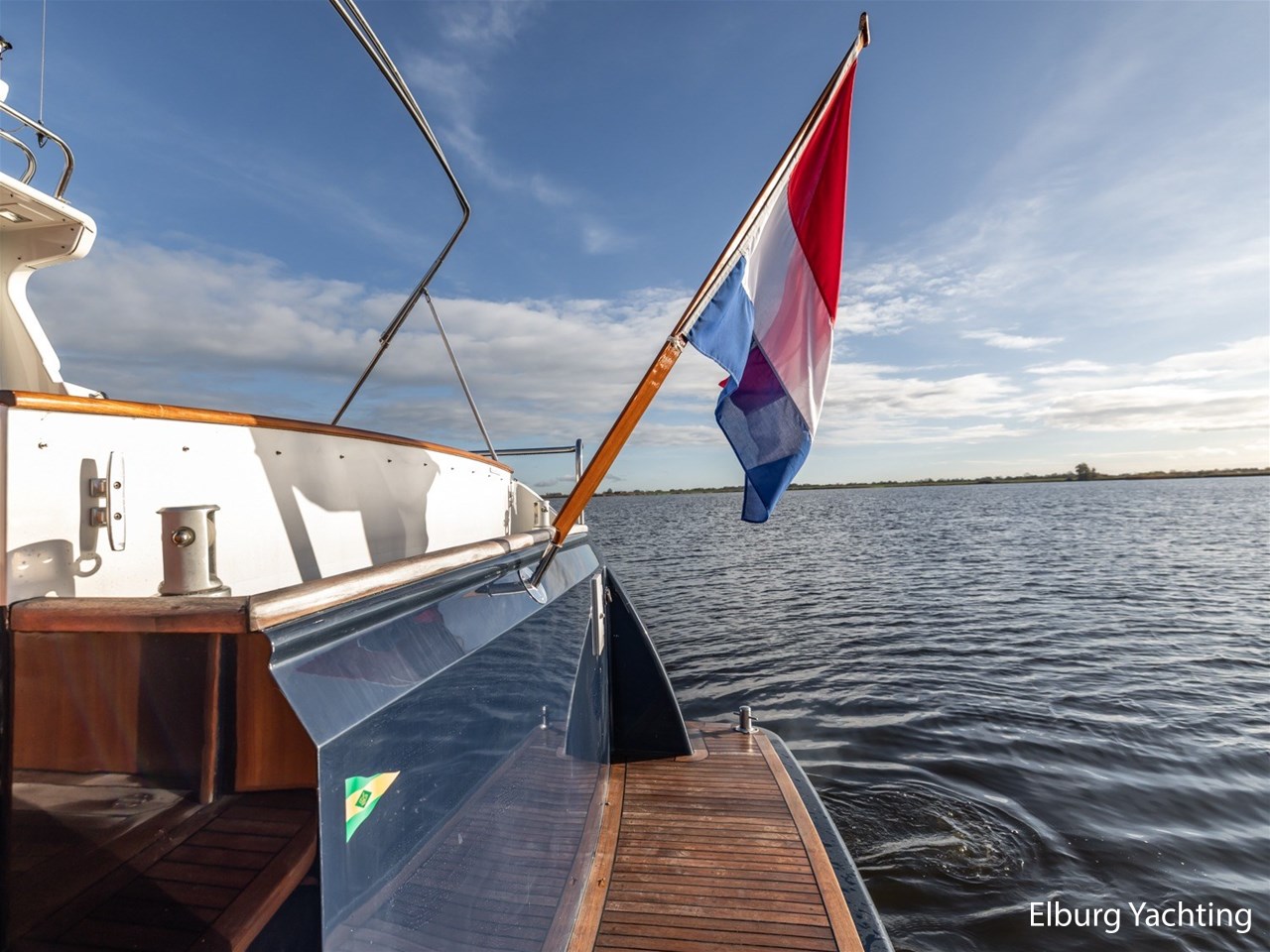 De Mulder Favorite 46 is een elegant en degelijk motorjacht, ontworpen door Guido de Groot en gebouwd door de gerenommeerde werf Mulder Shipyard. Dit jacht straalt tijdloze klasse uit en is ontworpen voor comfortabel en stijlvol verblijf aan boord. De ruime open kuip staat in directe verbinding met de salon en het stuurhuis, wat zorgt voor een open en lichte leefruimte. Het interieur is klassiek uitgevoerd in mahoniehout en voorzien van lichte, recent vernieuwde stoffering. Dankzij de twee hutten, elk met eigen sanitair, is het schip uitstekend geschikt voor langer verblijf aan boord. Tussen 2021 en 2025 is er breed geïnvesteerd in techniek, afwerking en uitrusting. Het teakdek is in 2023-2024 volledig vernieuwd door Jonker Jachtbouw.