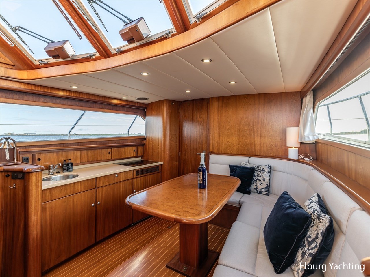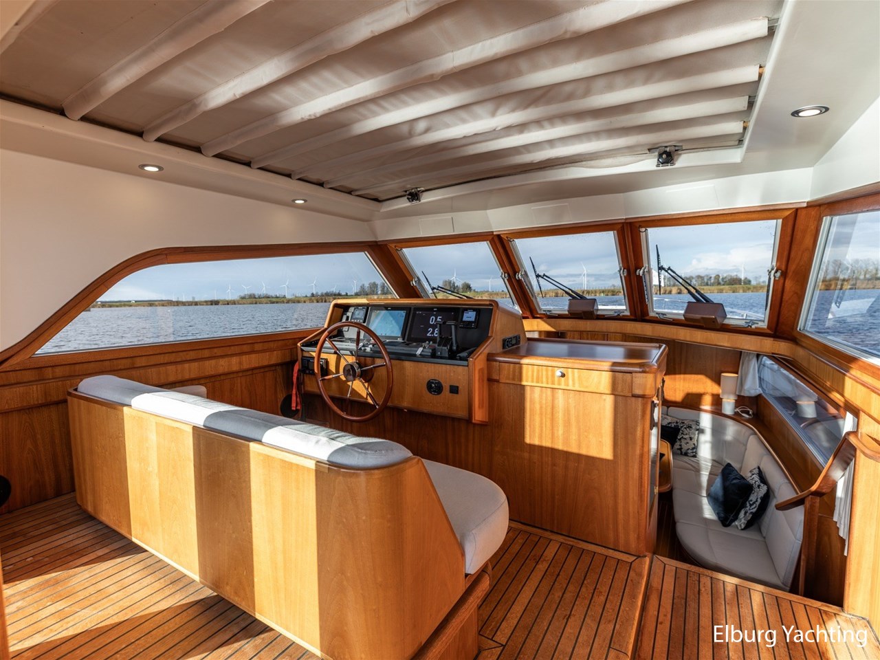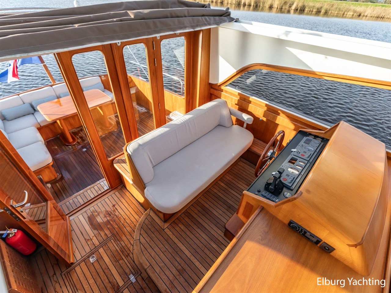 De Mulder Favorite 46 is een elegant en degelijk motorjacht, ontworpen door Guido de Groot en gebouwd door de gerenommeerde werf Mulder Shipyard. Dit jacht straalt tijdloze klasse uit en is ontworpen voor comfortabel en stijlvol verblijf aan boord. De ruime open kuip staat in directe verbinding met de salon en het stuurhuis, wat zorgt voor een open en lichte leefruimte. Het interieur is klassiek uitgevoerd in mahoniehout en voorzien van lichte, recent vernieuwde stoffering. Dankzij de twee hutten, elk met eigen sanitair, is het schip uitstekend geschikt voor langer verblijf aan boord. Tussen 2021 en 2025 is er breed geïnvesteerd in techniek, afwerking en uitrusting. Het teakdek is in 2023-2024 volledig vernieuwd door Jonker Jachtbouw.