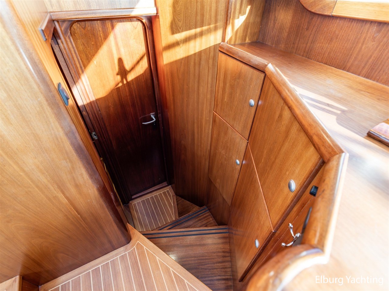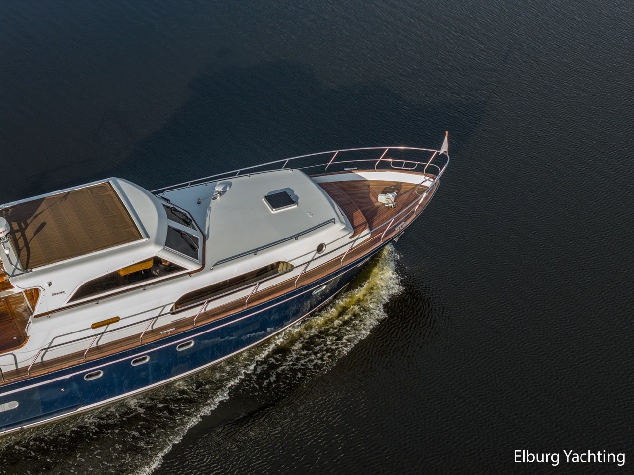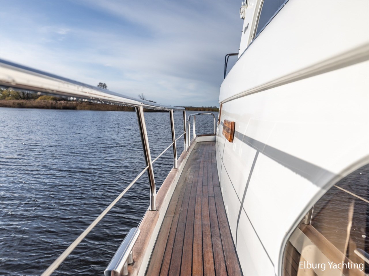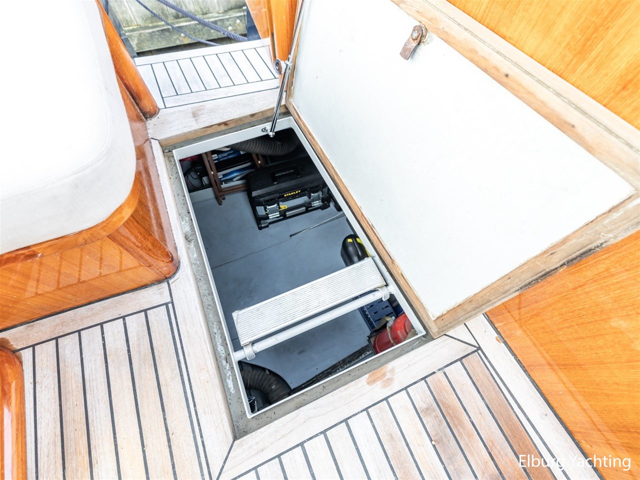 Het onderwaterschip is in diezelfde periode gestraald en behandeld met nieuwe antifouling. In 2023 is groot motoronderhoud uitgevoerd, inclusief de plaatsing van twee nieuwe turbo’s. In 2024 is aanvullende service aan de motoren uitgevoerd. Het jacht is voorzien van schroefassen en vierblads schroeven. De generator is in mei 2025 geserviced. De kruissnelheid bedraagt ca. 8 knopen bij 2500 rpm, met een maximale snelheid van ca. 11 knopen bij 3300 rpm. De economische vaarsnelheid ligt rond de ca. 7 knopen bij 2200 rpm. Qua uitrusting is het jacht voorzien van een uitgebreid en recent vernieuwd Raymarine-navigatiesysteem met onder andere twee Axiom 12” displays, radar, AIS, GPS, autopilot met afstandsbediening, VHF, windmeter en een camera op de radarboog. In 2023-2024 is er een nieuwe hekschroef met afstandsbediening aangebracht, naast de bestaande boegschroef. De kussens op het voordek zijn aanwezig en in 2023-2024 vernieuwd. Verder is het jacht uitgerust met RVS fenderhouders en een zoeklicht. Volledige documentatie van de werkzaamheden is op aanvraag beschikbaar.