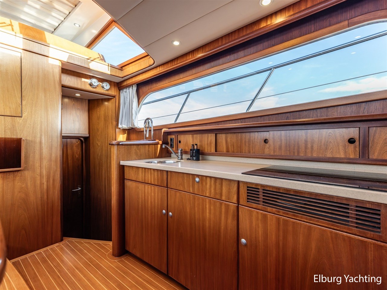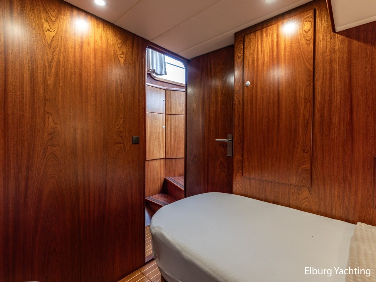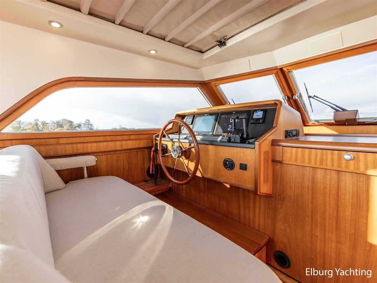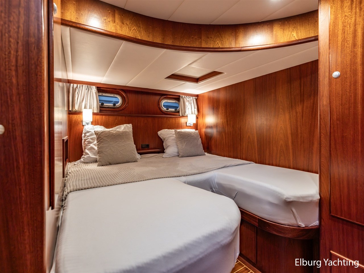 Het onderwaterschip is in diezelfde periode gestraald en behandeld met nieuwe antifouling. In 2023 is groot motoronderhoud uitgevoerd, inclusief de plaatsing van twee nieuwe turbo’s. In 2024 is aanvullende service aan de motoren uitgevoerd. Het jacht is voorzien van schroefassen en vierblads schroeven. De generator is in mei 2025 geserviced. De kruissnelheid bedraagt ca. 8 knopen bij 2500 rpm, met een maximale snelheid van ca. 11 knopen bij 3300 rpm. De economische vaarsnelheid ligt rond de ca. 7 knopen bij 2200 rpm. Qua uitrusting is het jacht voorzien van een uitgebreid en recent vernieuwd Raymarine-navigatiesysteem met onder andere twee Axiom 12” displays, radar, AIS, GPS, autopilot met afstandsbediening, VHF, windmeter en een camera op de radarboog. In 2023-2024 is er een nieuwe hekschroef met afstandsbediening aangebracht, naast de bestaande boegschroef. De kussens op het voordek zijn aanwezig en in 2023-2024 vernieuwd. Verder is het jacht uitgerust met RVS fenderhouders en een zoeklicht. Volledige documentatie van de werkzaamheden is op aanvraag beschikbaar.