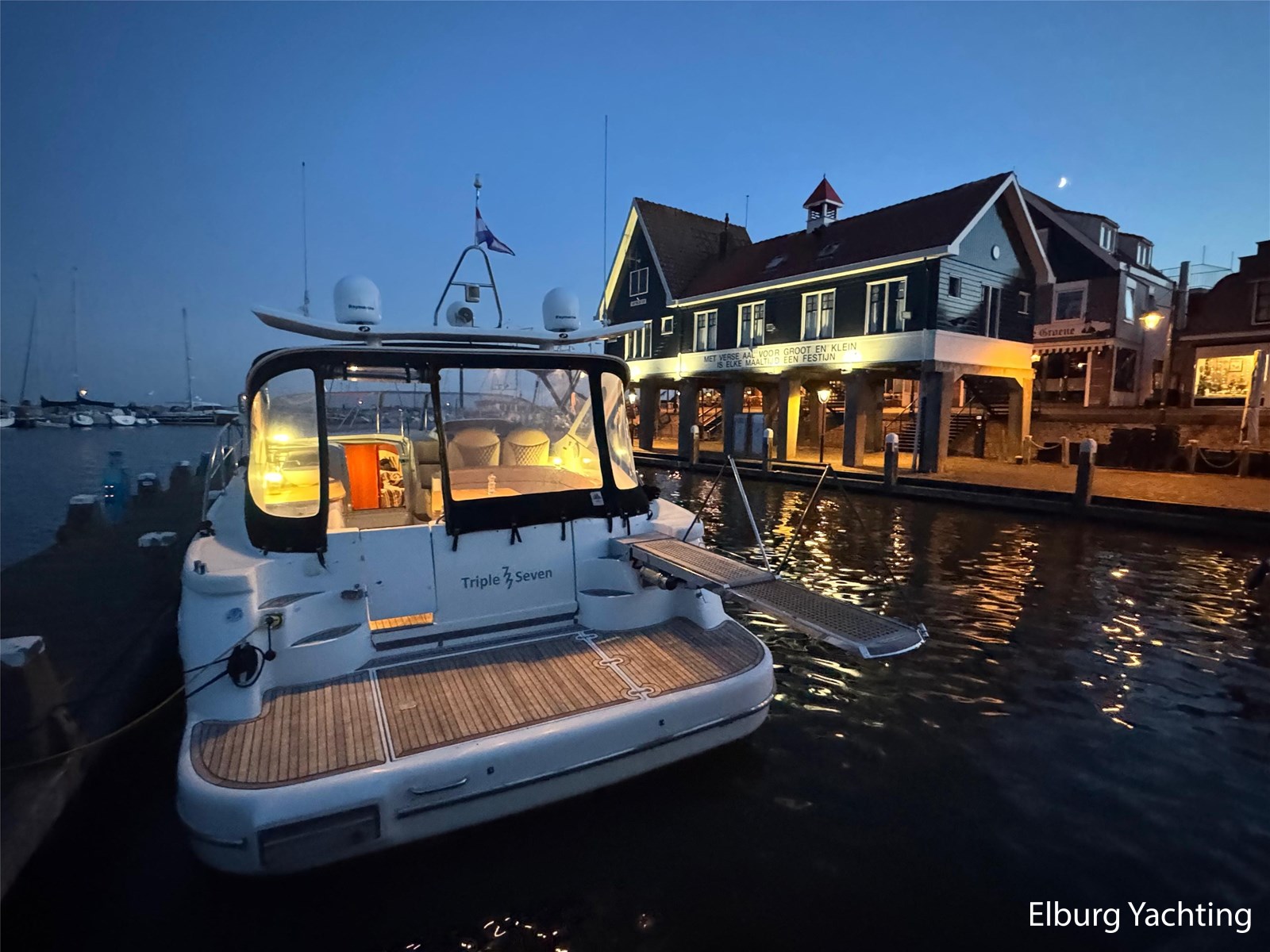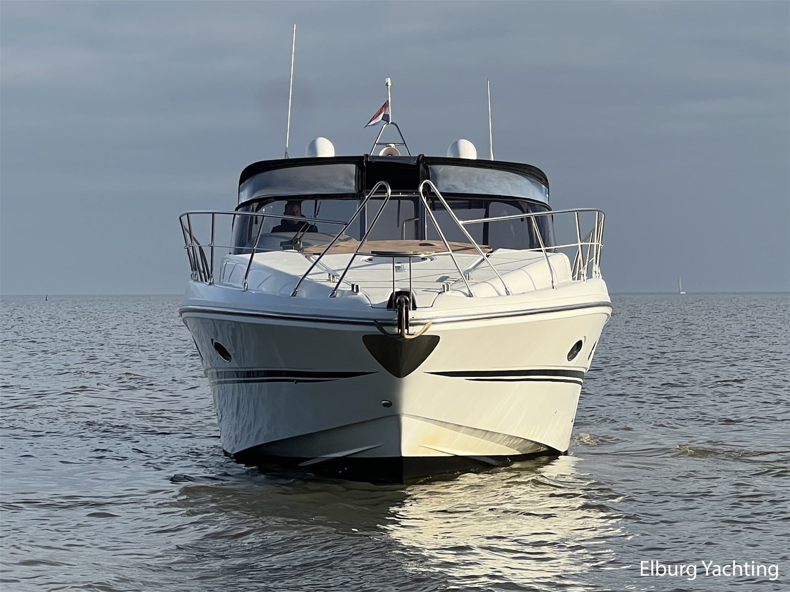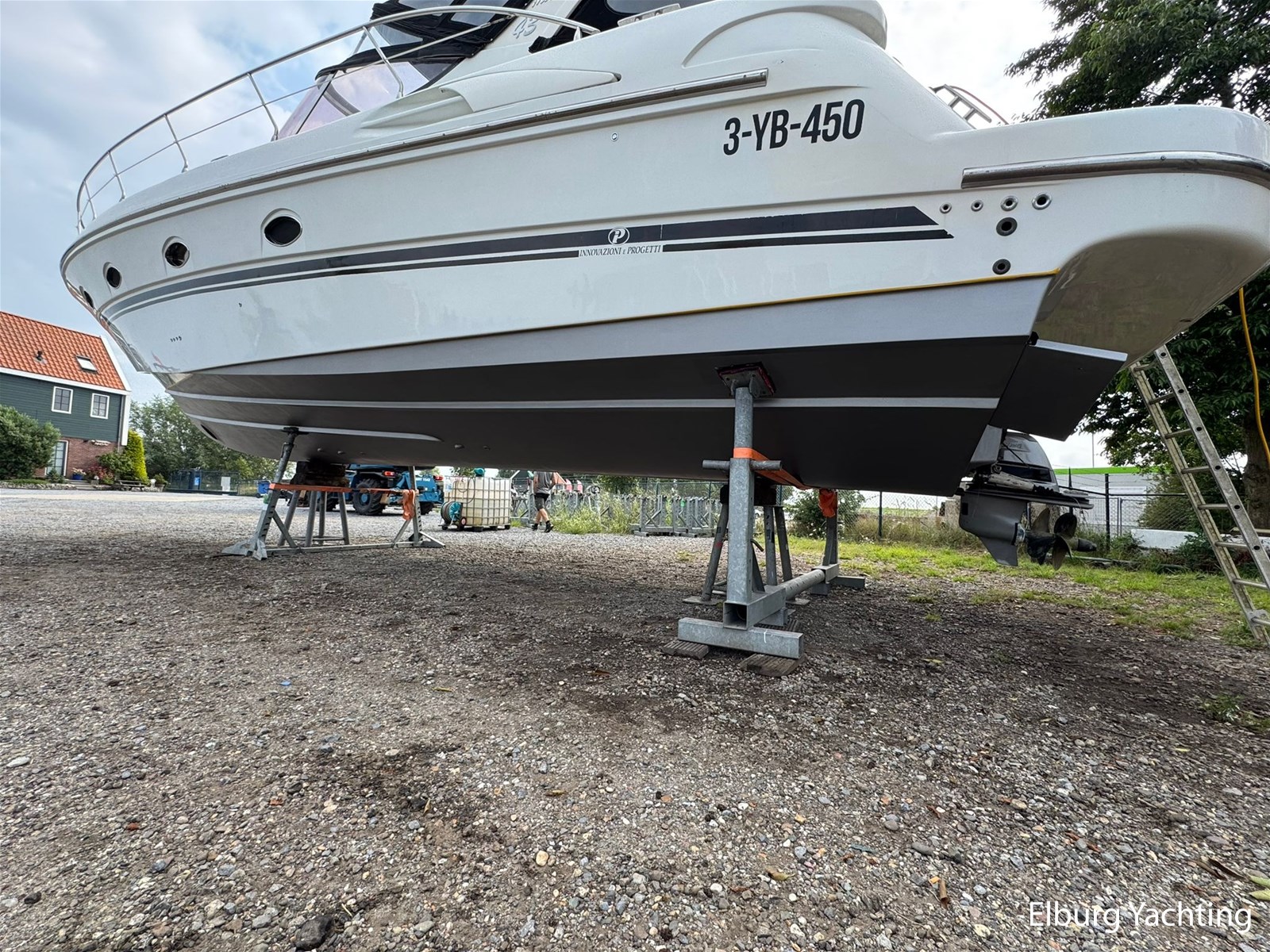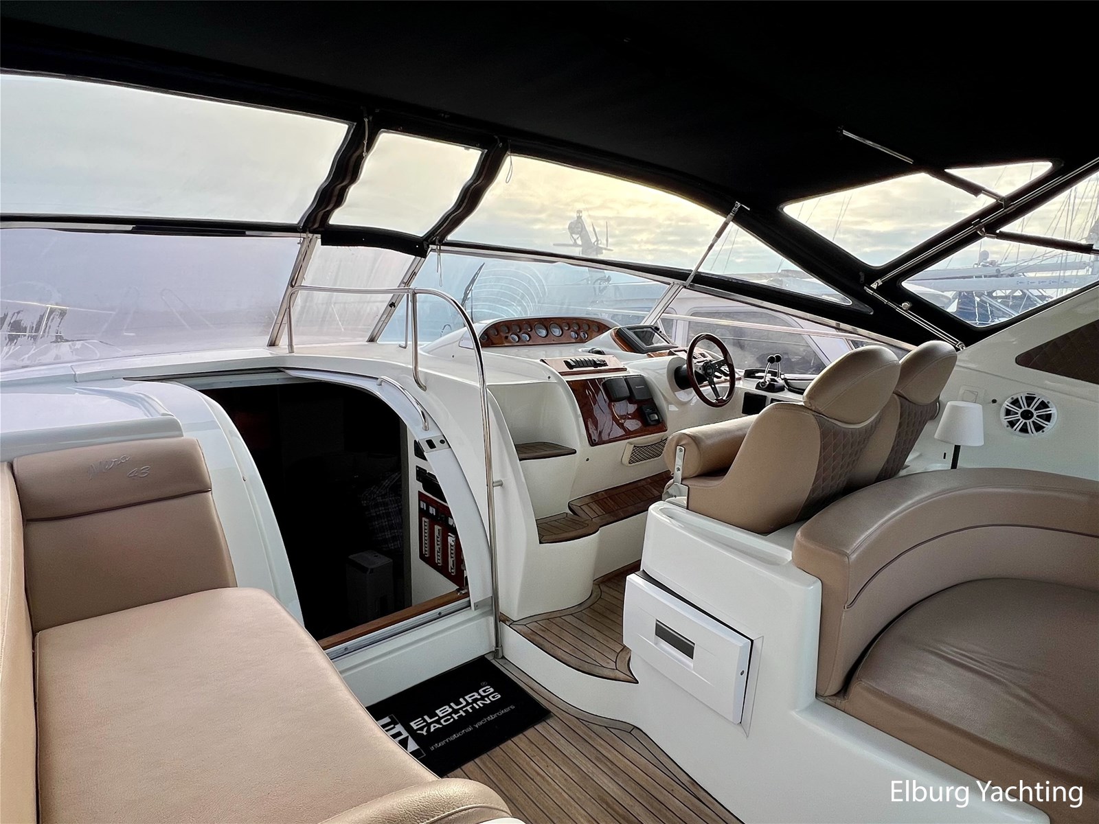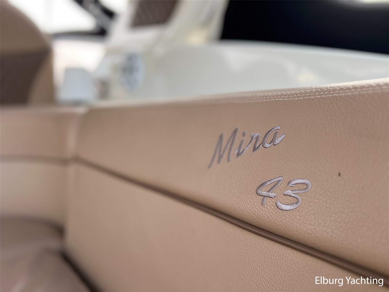Italiaans design in combinatie met veel praktische ruimte kenmerkt deze Mira 43 van de werf Innovazione e Progetti uit Italie. Dit jacht is van bouwjaar 2004 en is voorzien van twee krachtige Volvo Penta D6 motoren met elk 350 pk. De aandrijving verloopt via twee Volvo Penta DPH hekdrives, welke in 2025 zijn geserviced. Deze Mira 43 is voorzien van: Volledige tent rondom kuip met uitristbare delen, hydraulisch uitschuifbare gangway met afstandsbediening, groot bergluik in zwemplateau, kuip voorzien van koelkast / spoelkom / radio met speakers, loop naar het voordek via gangboorden maar ook binnendoor via opstap bij stuurstand, afneembaar zonnebed op het voordek, elektrisch/hydraulisch bedienbaar luik naar machinekamer, diverse 230V aansluitpunten door de boot, TV in salon (2025), tapijt delen in het interieur uitneembaar, 2 x bergluik in salonvloer. Verfsysteem onderwaterschip vernieuwd in juli 2025. Dit schip is op afspraak in Nederland te bezichtigen. Wij maken graag met u een afspraak voor een vrijblijvend bezoek aan boord.