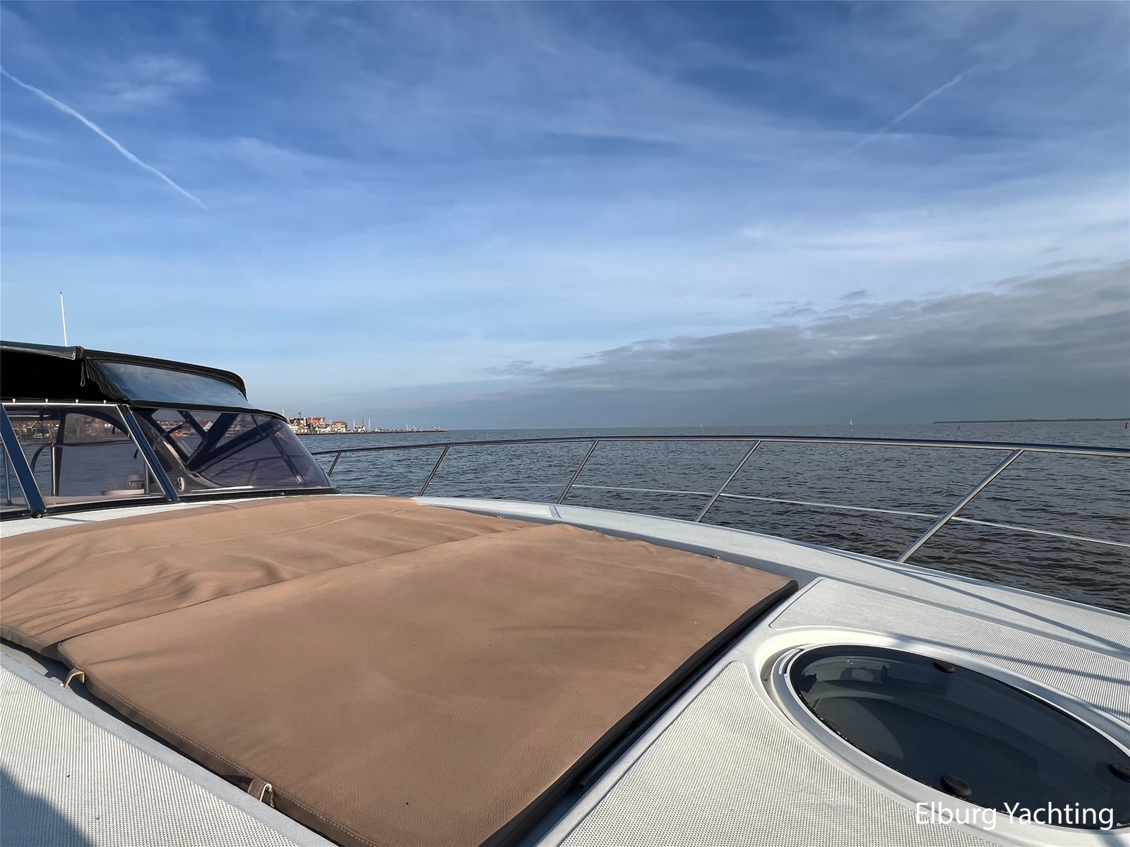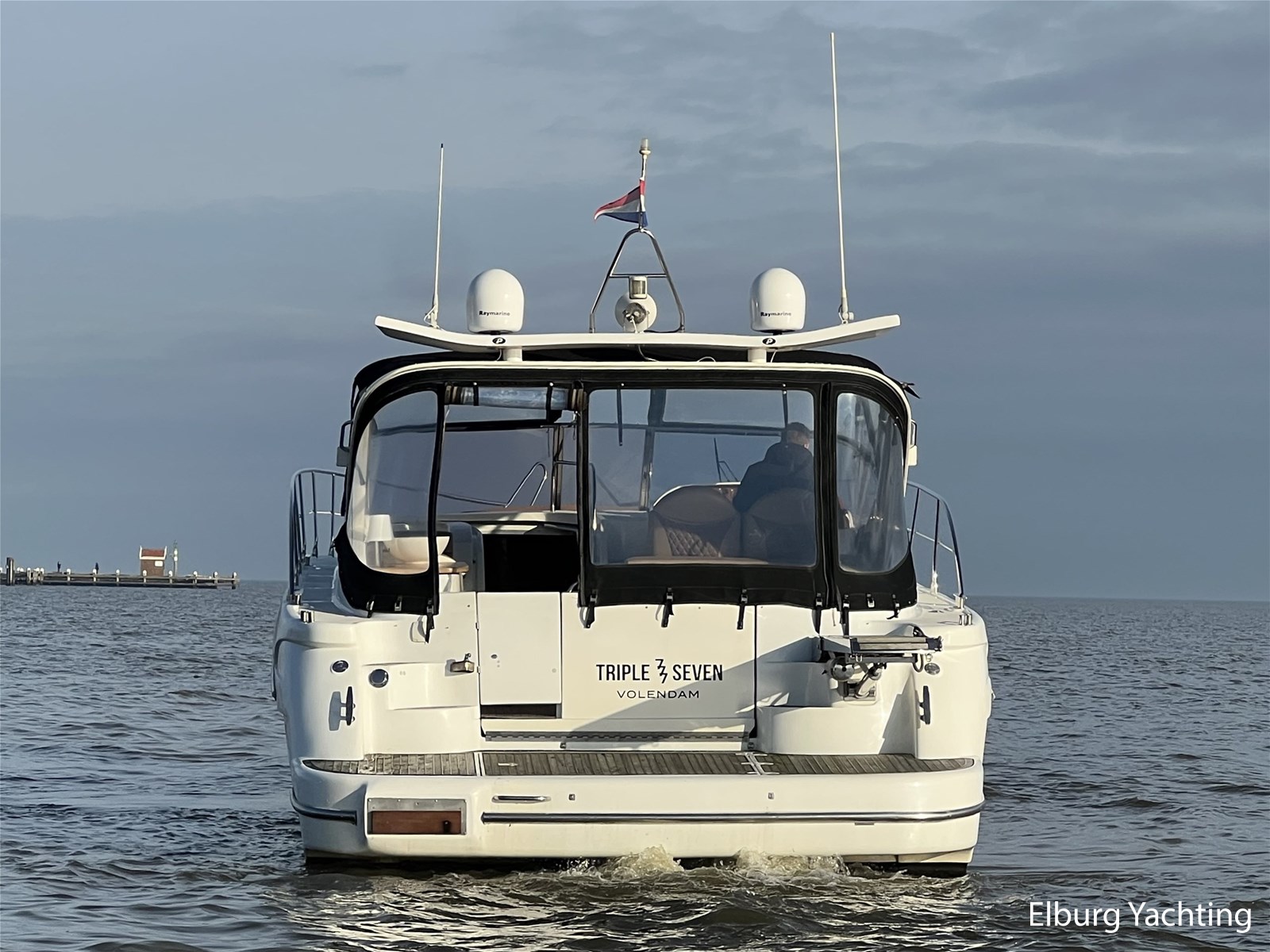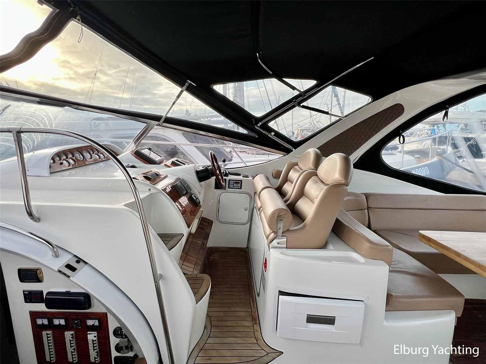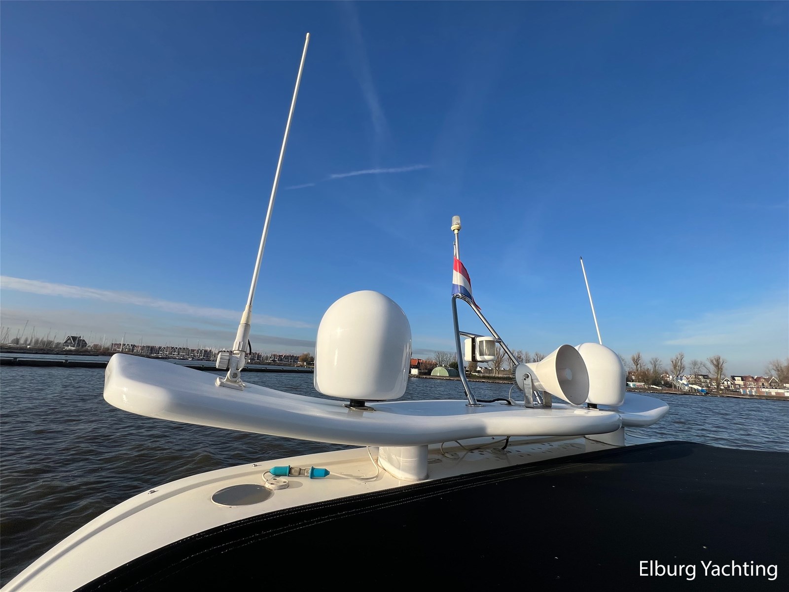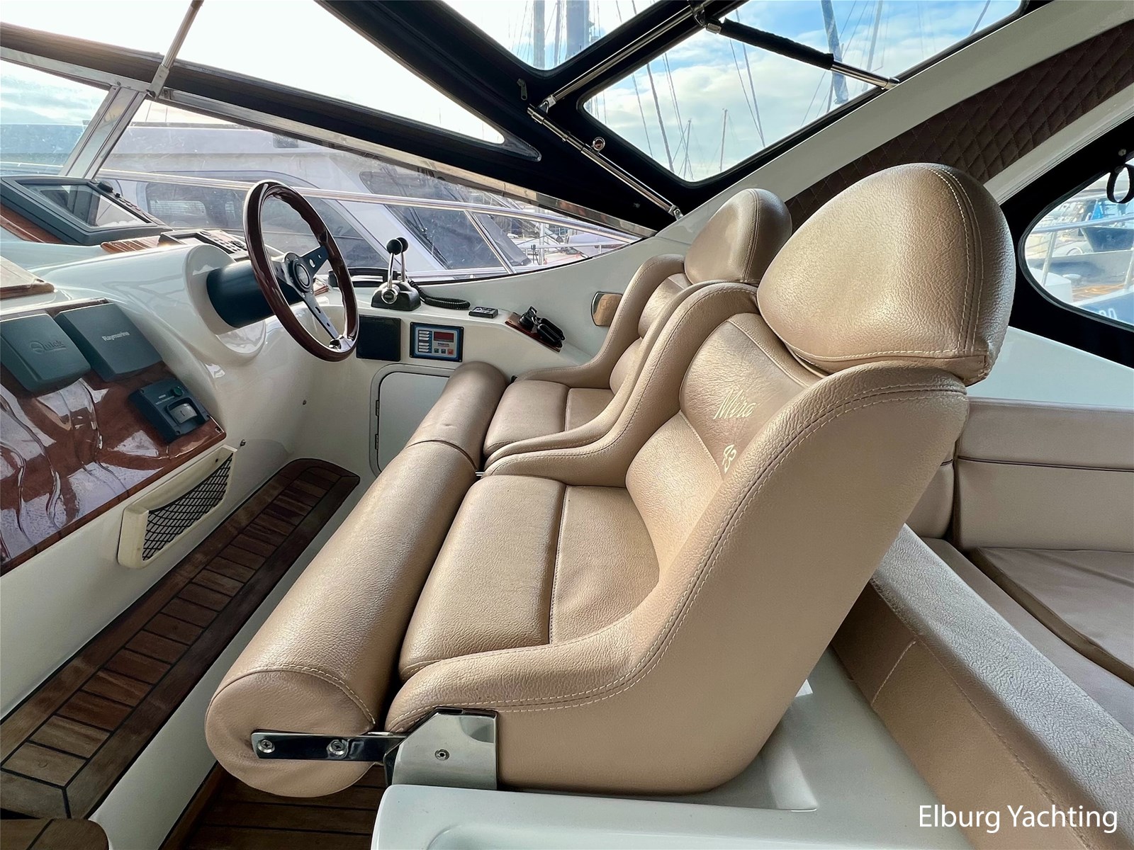 Italiaans design in combinatie met veel praktische ruimte kenmerkt deze Mira 43 van de werf Innovazione e Progetti uit Italie. Dit jacht is van bouwjaar 2004 en is voorzien van twee krachtige Volvo Penta D6 motoren met elk 350 pk. De aandrijving verloopt via twee Volvo Penta DPH hekdrives, welke in 2025 zijn geserviced. Deze Mira 43 is voorzien van: Volledige tent rondom kuip met uitristbare delen, hydraulisch uitschuifbare gangway met afstandsbediening, groot bergluik in zwemplateau, kuip voorzien van koelkast / spoelkom / radio met speakers, loop naar het voordek via gangboorden maar ook binnendoor via opstap bij stuurstand, afneembaar zonnebed op het voordek, elektrisch/hydraulisch bedienbaar luik naar machinekamer, diverse 230V aansluitpunten door de boot, TV in salon (2025), tapijt delen in het interieur uitneembaar, 2 x bergluik in salonvloer. Verfsysteem onderwaterschip vernieuwd in juli 2025. Dit schip is op afspraak in Nederland te bezichtigen. Wij maken graag met u een afspraak voor een vrijblijvend bezoek aan boord.