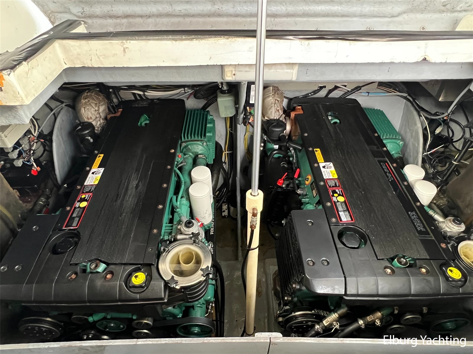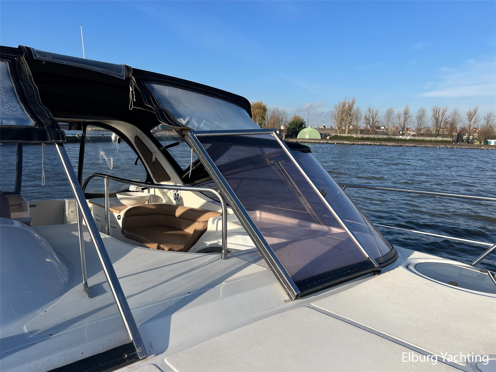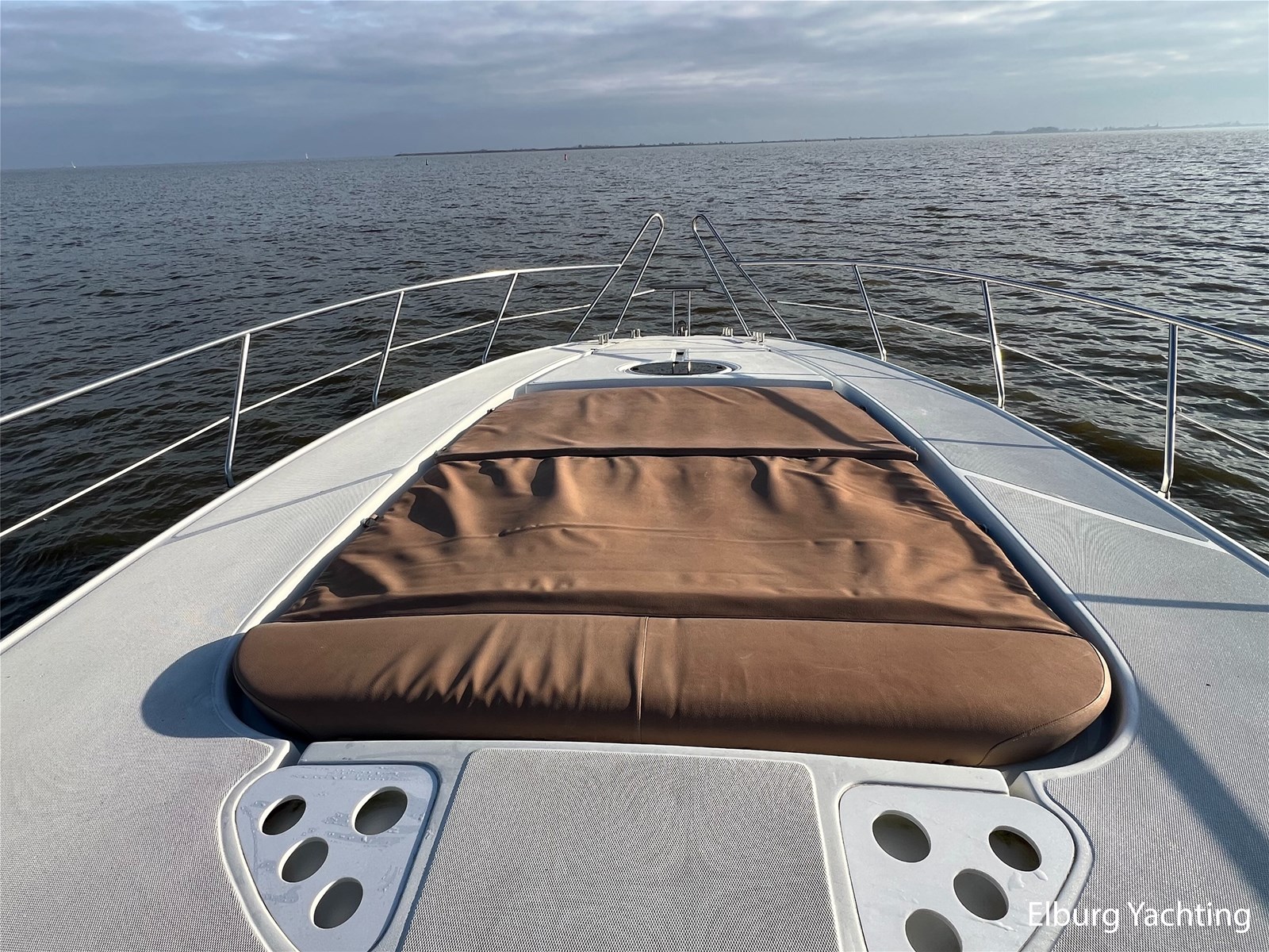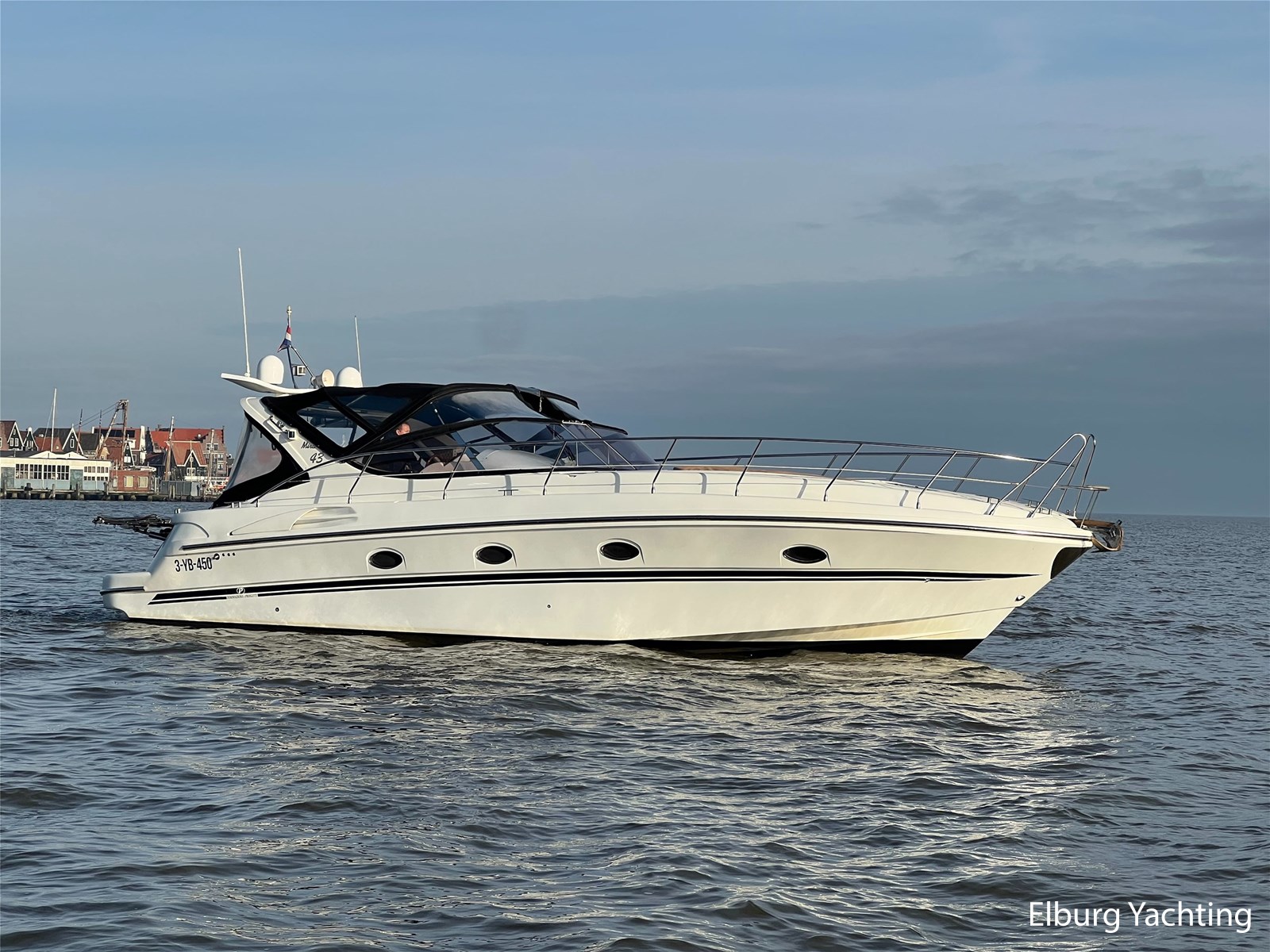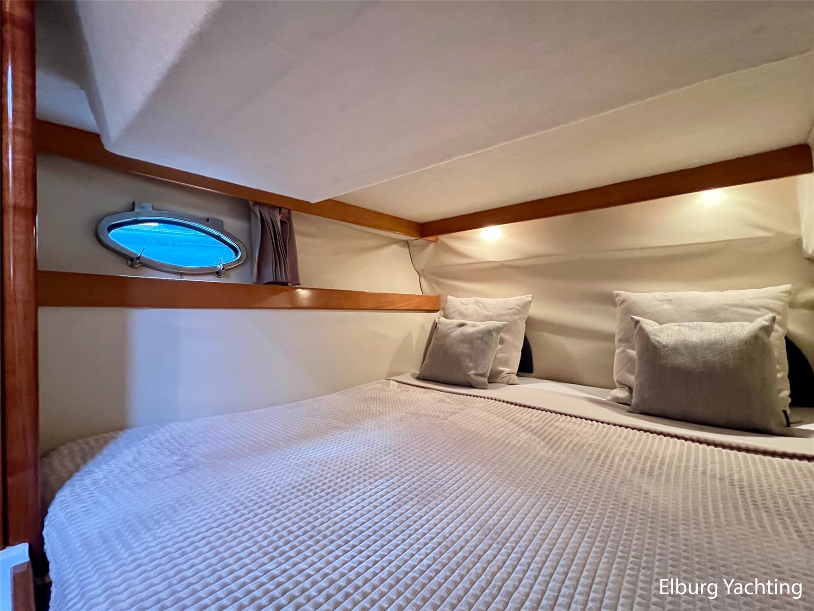 Italiaans design in combinatie met veel praktische ruimte kenmerkt deze Mira 43 van de werf Innovazione e Progetti uit Italie. Dit jacht is van bouwjaar 2004 en is voorzien van twee krachtige Volvo Penta D6 motoren met elk 350 pk. De aandrijving verloopt via twee Volvo Penta DPH hekdrives, welke in 2025 zijn geserviced. Deze Mira 43 is voorzien van: Volledige tent rondom kuip met uitristbare delen, hydraulisch uitschuifbare gangway met afstandsbediening, groot bergluik in zwemplateau, kuip voorzien van koelkast / spoelkom / radio met speakers, loop naar het voordek via gangboorden maar ook binnendoor via opstap bij stuurstand, afneembaar zonnebed op het voordek, elektrisch/hydraulisch bedienbaar luik naar machinekamer, diverse 230V aansluitpunten door de boot, TV in salon (2025), tapijt delen in het interieur uitneembaar, 2 x bergluik in salonvloer. Verfsysteem onderwaterschip vernieuwd in juli 2025. Dit schip is op afspraak in Nederland te bezichtigen. Wij maken graag met u een afspraak voor een vrijblijvend bezoek aan boord.