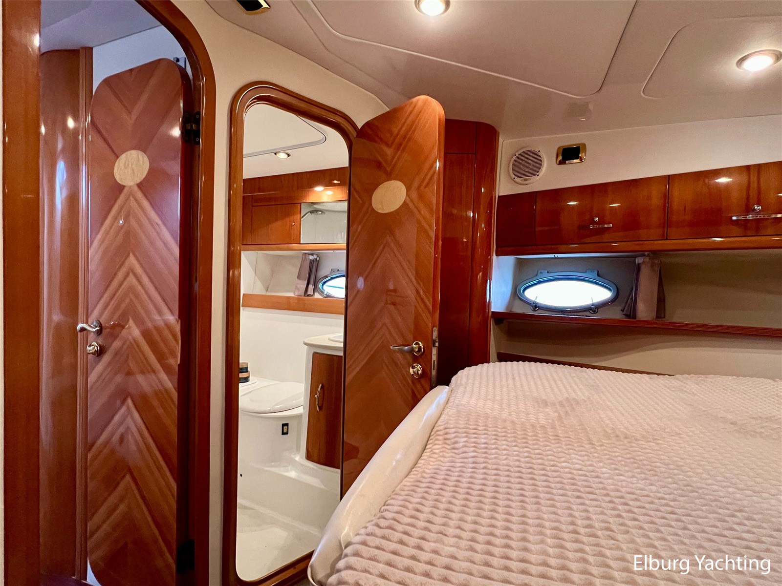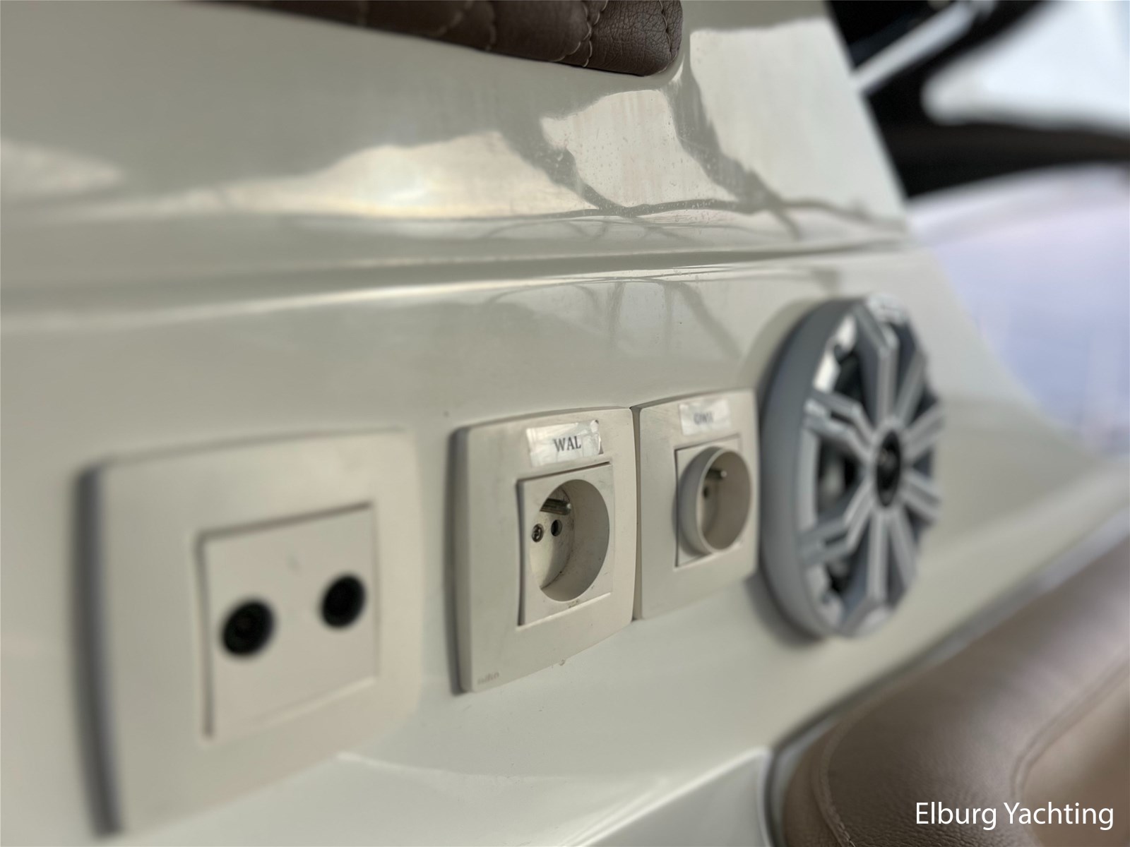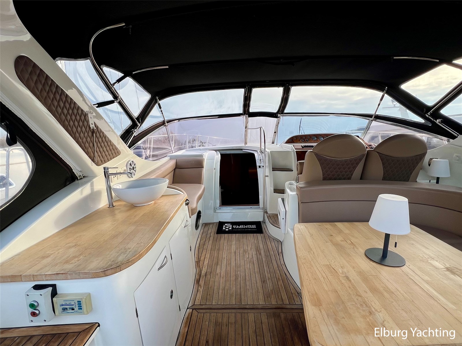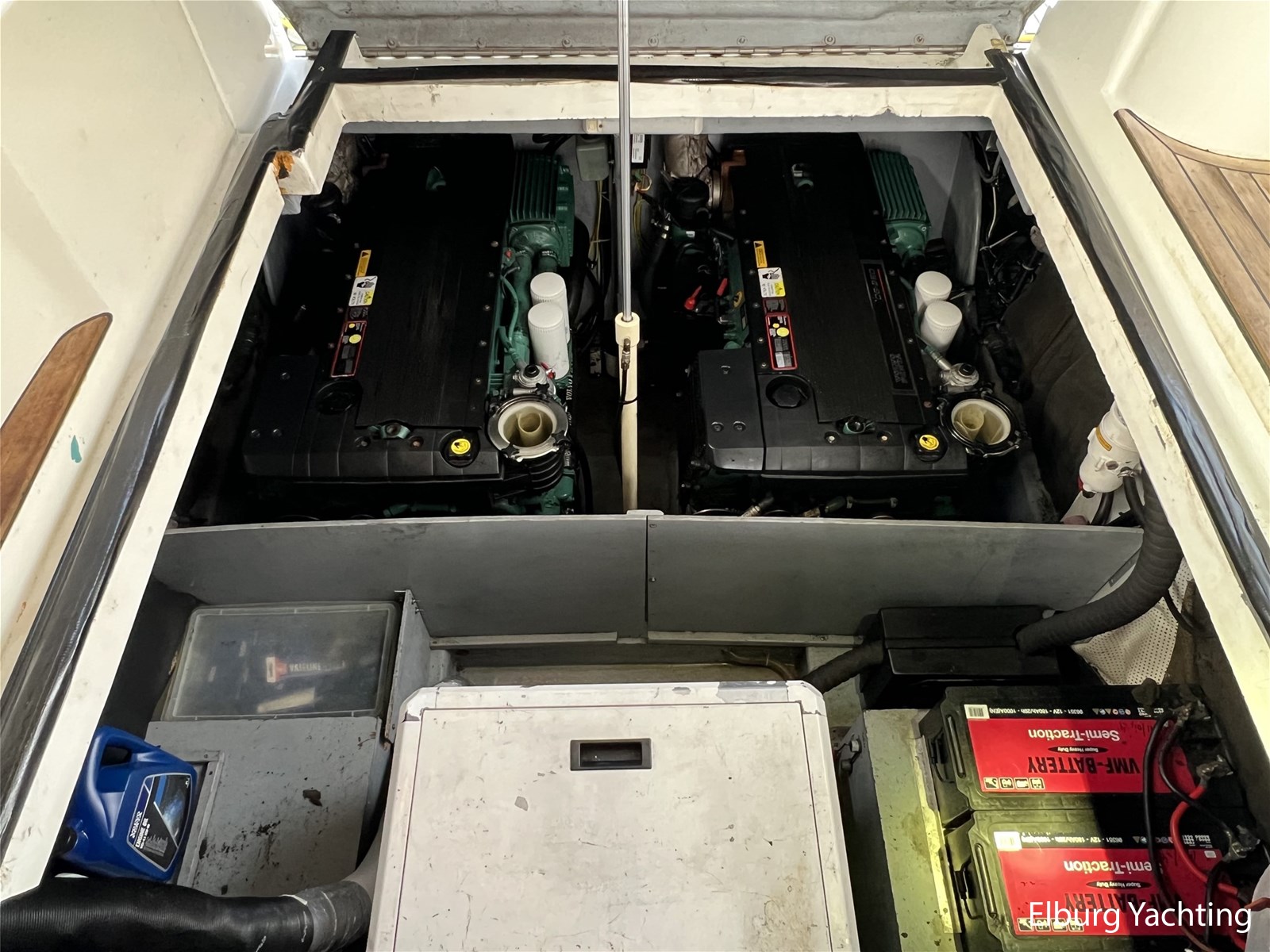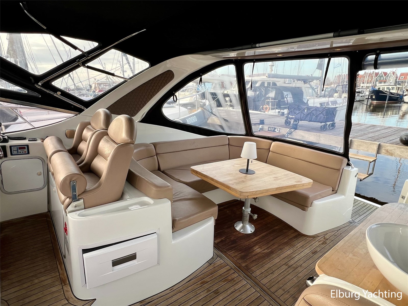 Italiaans design in combinatie met veel praktische ruimte kenmerkt deze Mira 43 van de werf Innovazione e Progetti uit Italie. Dit jacht is van bouwjaar 2004 en is voorzien van twee krachtige Volvo Penta D6 motoren met elk 350 pk. De aandrijving verloopt via twee Volvo Penta DPH hekdrives, welke in 2025 zijn geserviced. Deze Mira 43 is voorzien van: Volledige tent rondom kuip met uitristbare delen, hydraulisch uitschuifbare gangway met afstandsbediening, groot bergluik in zwemplateau, kuip voorzien van koelkast / spoelkom / radio met speakers, loop naar het voordek via gangboorden maar ook binnendoor via opstap bij stuurstand, afneembaar zonnebed op het voordek, elektrisch/hydraulisch bedienbaar luik naar machinekamer, diverse 230V aansluitpunten door de boot, TV in salon (2025), tapijt delen in het interieur uitneembaar, 2 x bergluik in salonvloer. Verfsysteem onderwaterschip vernieuwd in juli 2025. Dit schip is op afspraak in Nederland te bezichtigen. Wij maken graag met u een afspraak voor een vrijblijvend bezoek aan boord.