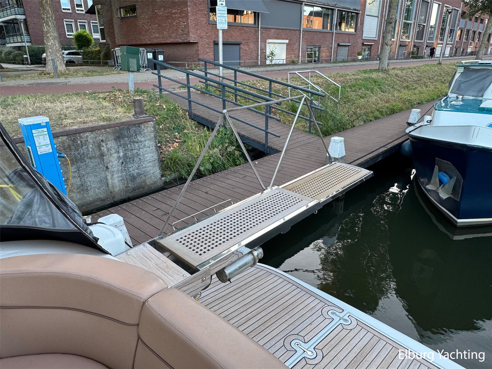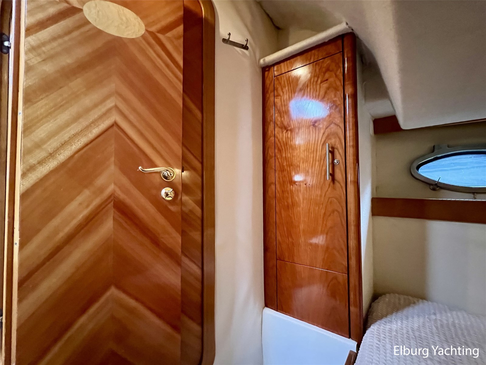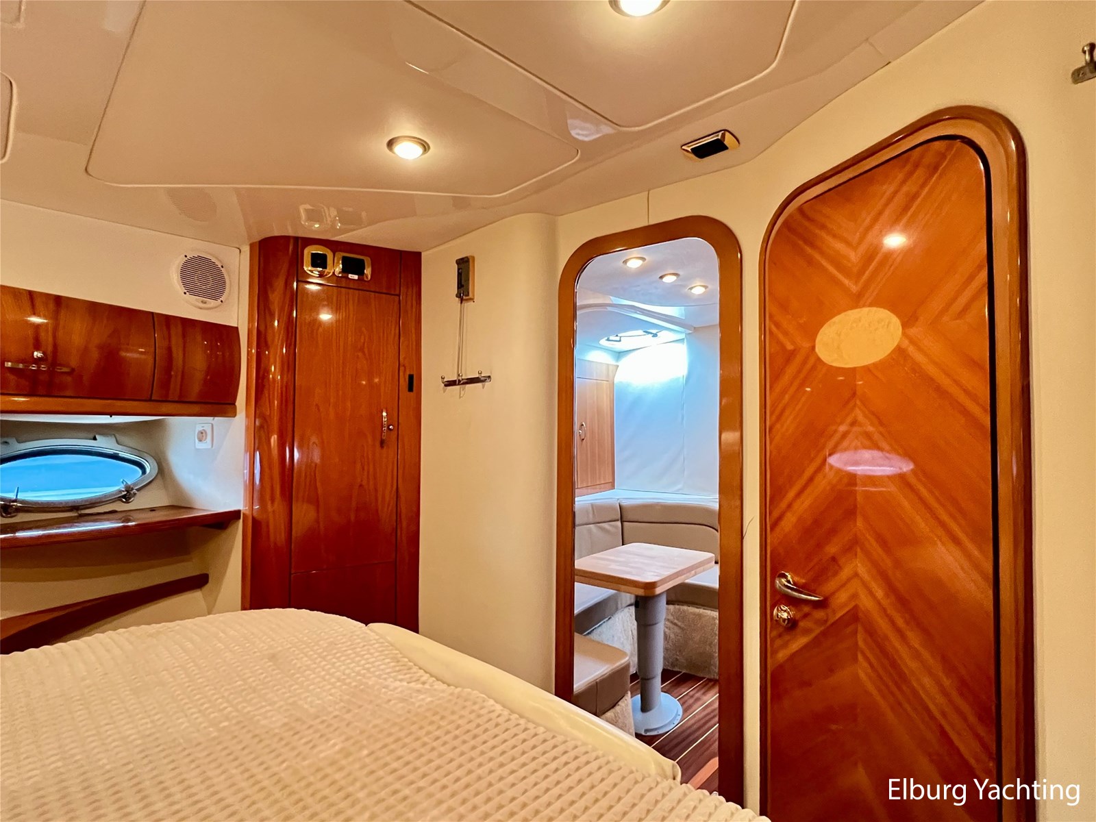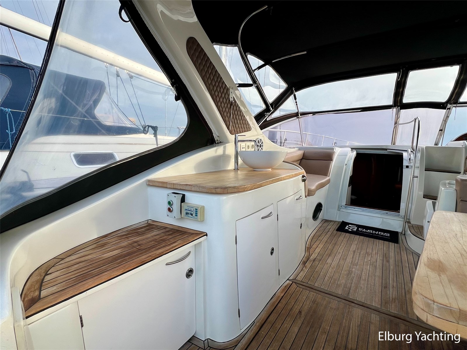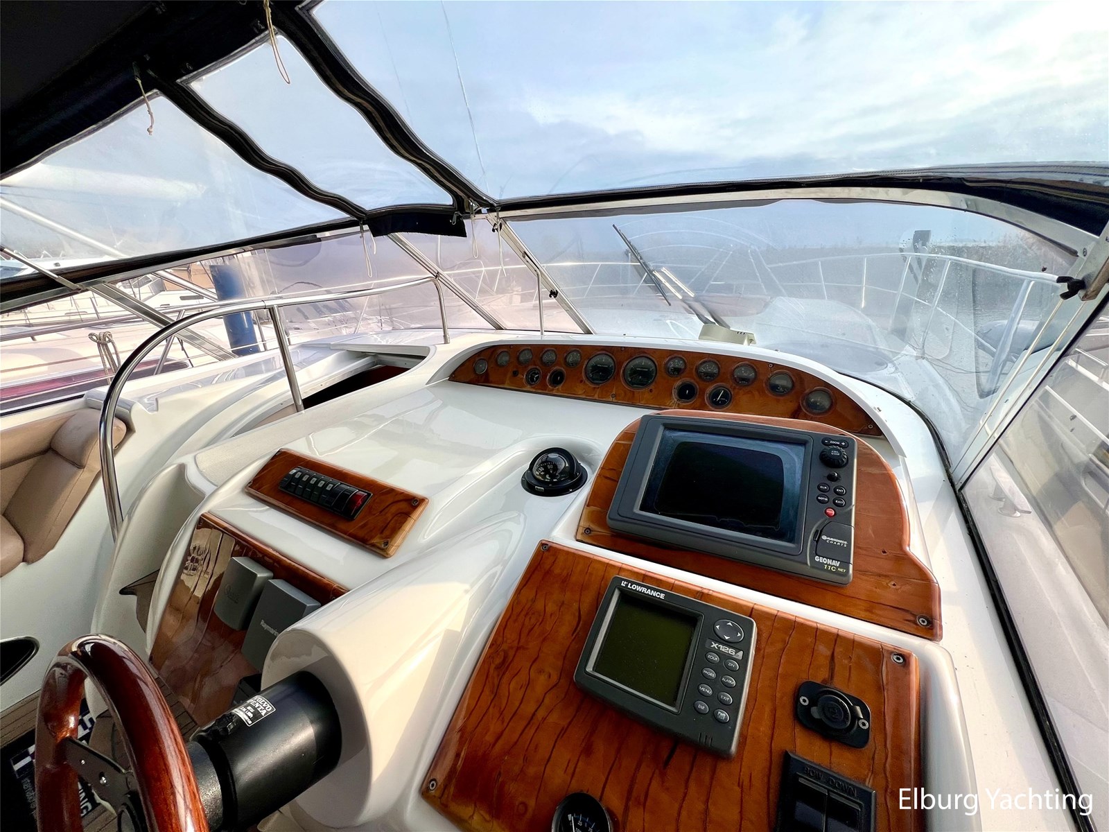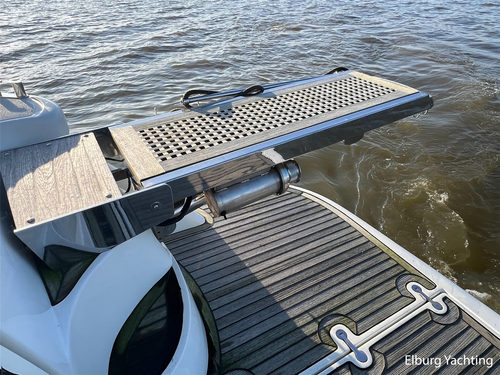 Italiaans design in combinatie met veel praktische ruimte kenmerkt deze Mira 43 van de werf Innovazione e Progetti uit Italie. Dit jacht is van bouwjaar 2004 en is voorzien van twee krachtige Volvo Penta D6 motoren met elk 350 pk. De aandrijving verloopt via twee Volvo Penta DPH hekdrives, welke in 2025 zijn geserviced. Deze Mira 43 is voorzien van: Volledige tent rondom kuip met uitristbare delen, hydraulisch uitschuifbare gangway met afstandsbediening, groot bergluik in zwemplateau, kuip voorzien van koelkast / spoelkom / radio met speakers, loop naar het voordek via gangboorden maar ook binnendoor via opstap bij stuurstand, afneembaar zonnebed op het voordek, elektrisch/hydraulisch bedienbaar luik naar machinekamer, diverse 230V aansluitpunten door de boot, TV in salon (2025), tapijt delen in het interieur uitneembaar, 2 x bergluik in salonvloer. Verfsysteem onderwaterschip vernieuwd in juli 2025. Dit schip is op afspraak in Nederland te bezichtigen. Wij maken graag met u een afspraak voor een vrijblijvend bezoek aan boord.