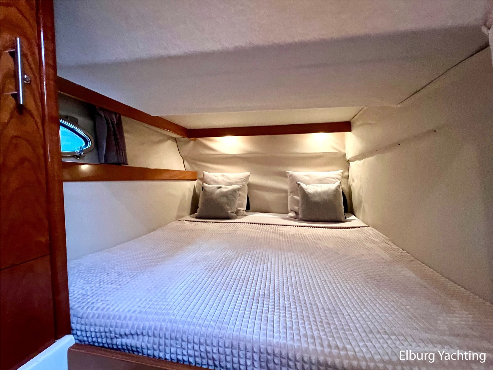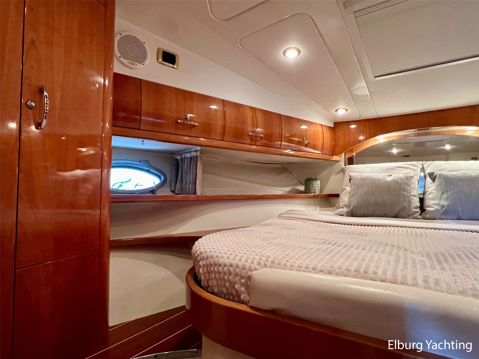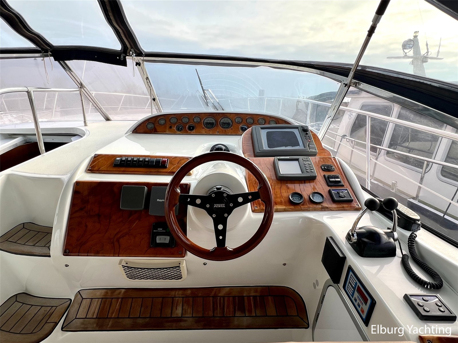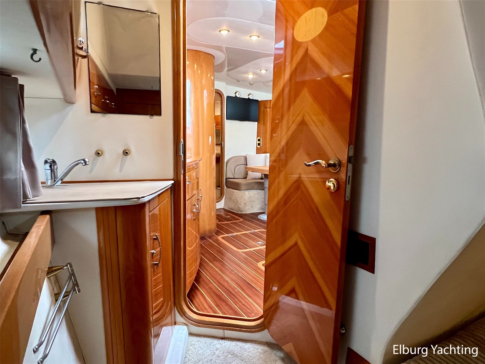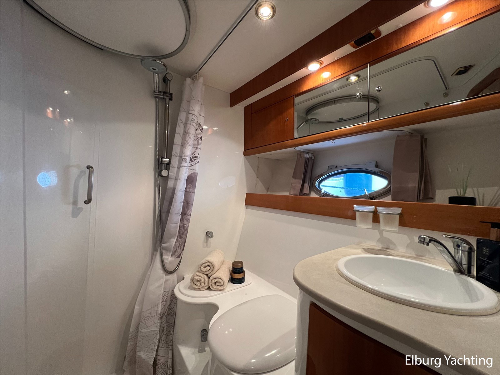 Italiaans design in combinatie met veel praktische ruimte kenmerkt deze Mira 43 van de werf Innovazione e Progetti uit Italie. Dit jacht is van bouwjaar 2004 en is voorzien van twee krachtige Volvo Penta D6 motoren met elk 350 pk. De aandrijving verloopt via twee Volvo Penta DPH hekdrives, welke in 2025 zijn geserviced. Deze Mira 43 is voorzien van: Volledige tent rondom kuip met uitristbare delen, hydraulisch uitschuifbare gangway met afstandsbediening, groot bergluik in zwemplateau, kuip voorzien van koelkast / spoelkom / radio met speakers, loop naar het voordek via gangboorden maar ook binnendoor via opstap bij stuurstand, afneembaar zonnebed op het voordek, elektrisch/hydraulisch bedienbaar luik naar machinekamer, diverse 230V aansluitpunten door de boot, TV in salon (2025), tapijt delen in het interieur uitneembaar, 2 x bergluik in salonvloer. Verfsysteem onderwaterschip vernieuwd in juli 2025. Dit schip is op afspraak in Nederland te bezichtigen. Wij maken graag met u een afspraak voor een vrijblijvend bezoek aan boord.