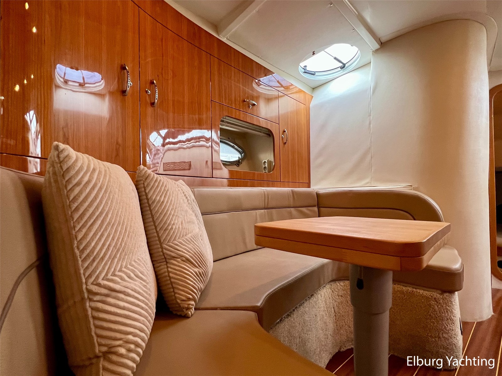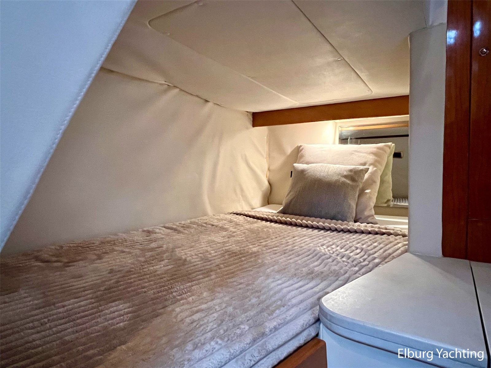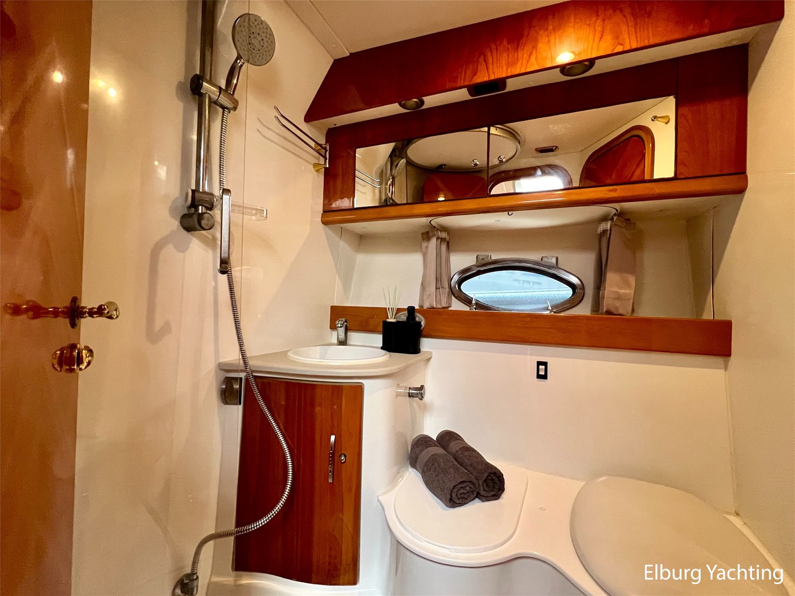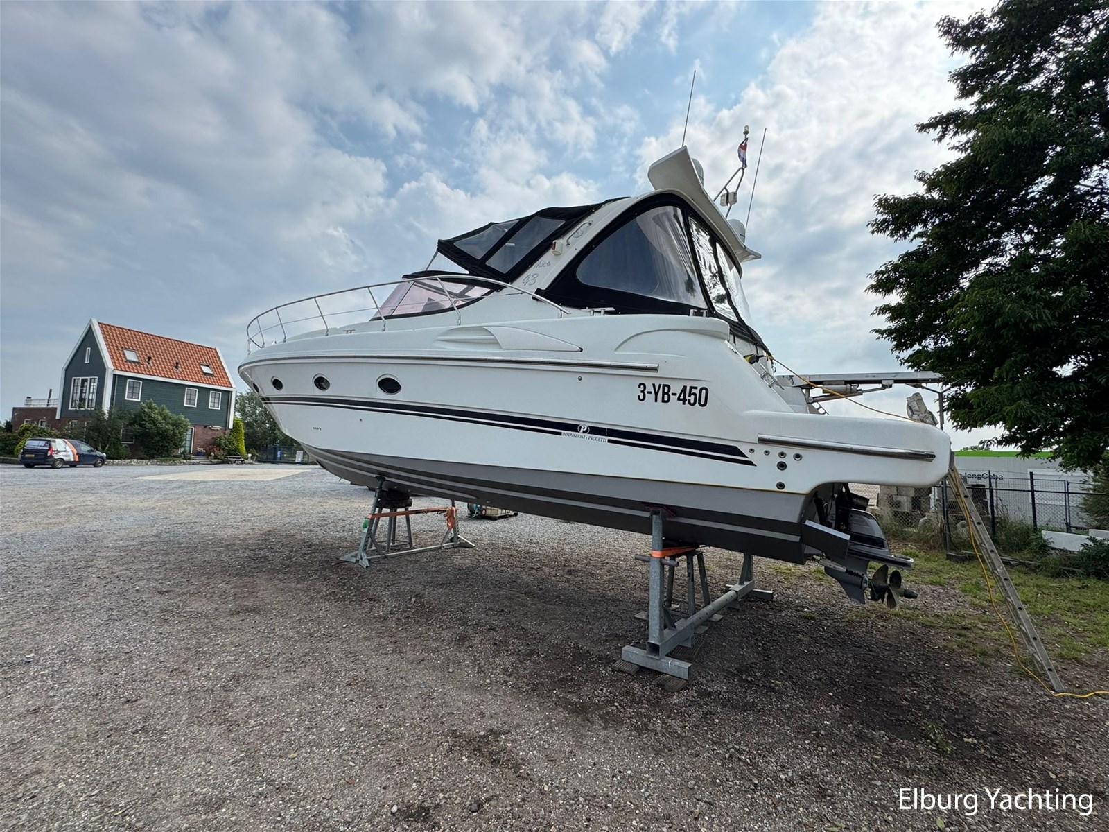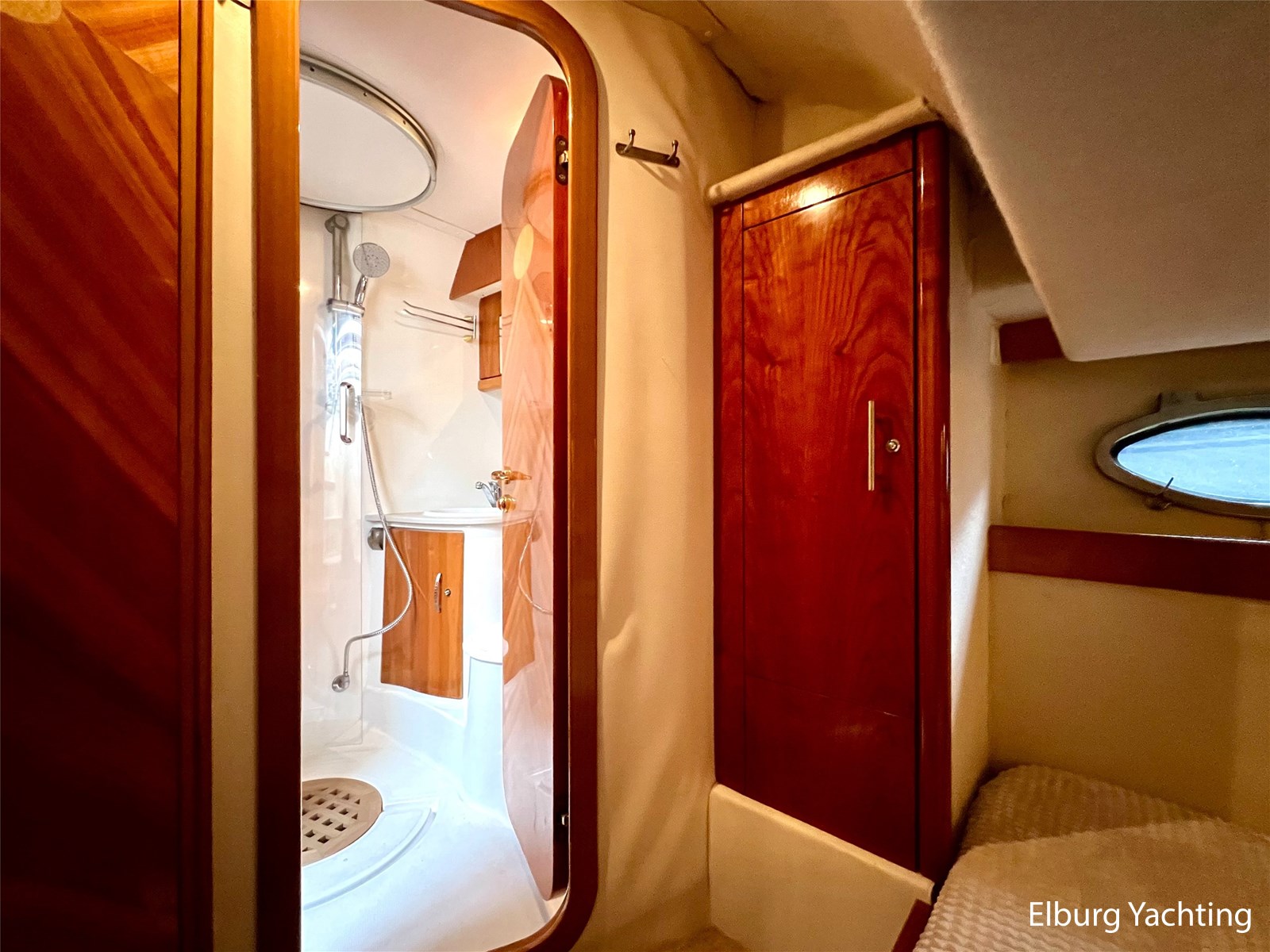 Italiaans design in combinatie met veel praktische ruimte kenmerkt deze Mira 43 van de werf Innovazione e Progetti uit Italie. Dit jacht is van bouwjaar 2004 en is voorzien van twee krachtige Volvo Penta D6 motoren met elk 350 pk. De aandrijving verloopt via twee Volvo Penta DPH hekdrives, welke in 2025 zijn geserviced. Deze Mira 43 is voorzien van: Volledige tent rondom kuip met uitristbare delen, hydraulisch uitschuifbare gangway met afstandsbediening, groot bergluik in zwemplateau, kuip voorzien van koelkast / spoelkom / radio met speakers, loop naar het voordek via gangboorden maar ook binnendoor via opstap bij stuurstand, afneembaar zonnebed op het voordek, elektrisch/hydraulisch bedienbaar luik naar machinekamer, diverse 230V aansluitpunten door de boot, TV in salon (2025), tapijt delen in het interieur uitneembaar, 2 x bergluik in salonvloer. Verfsysteem onderwaterschip vernieuwd in juli 2025. Dit schip is op afspraak in Nederland te bezichtigen. Wij maken graag met u een afspraak voor een vrijblijvend bezoek aan boord.