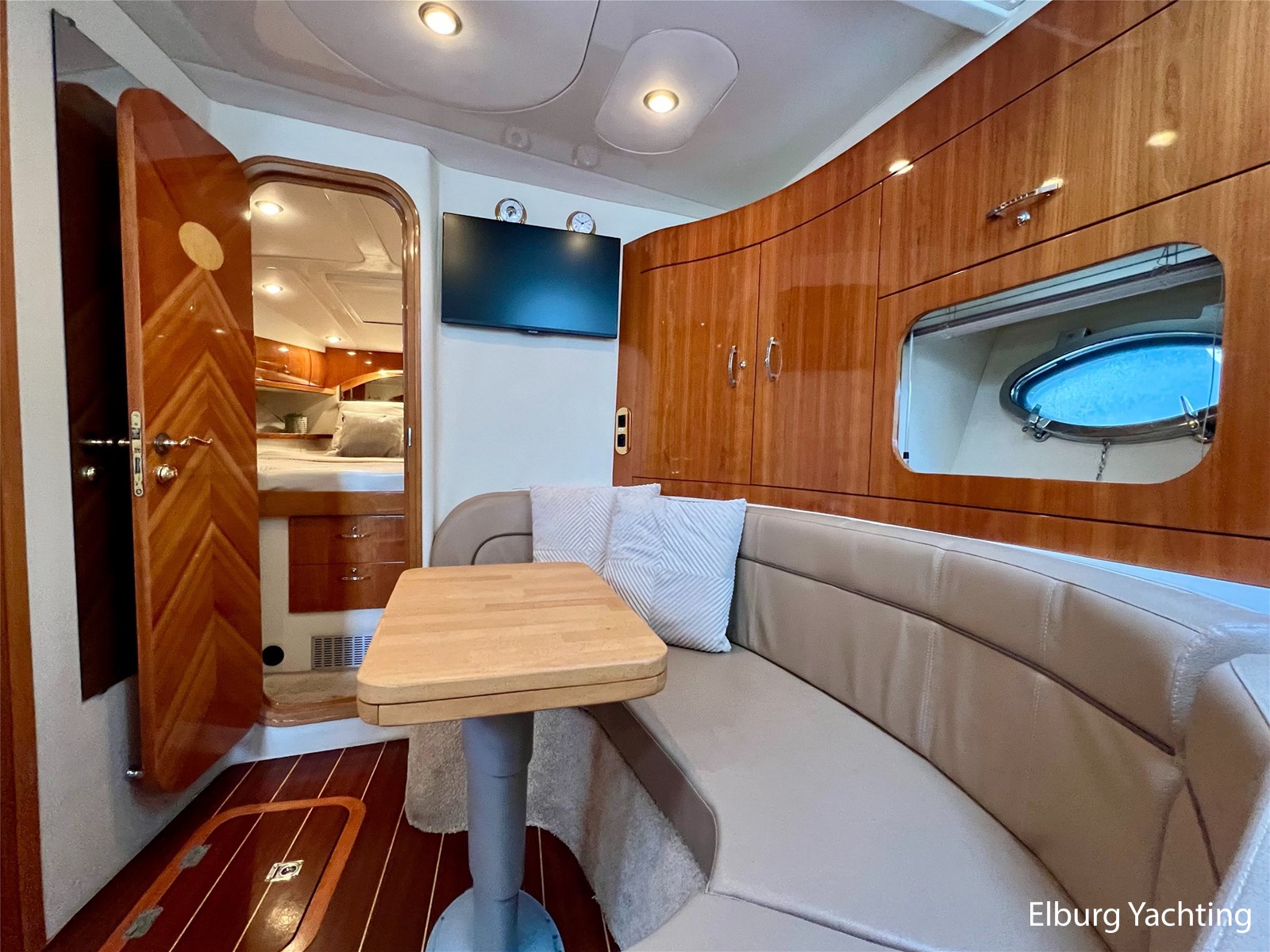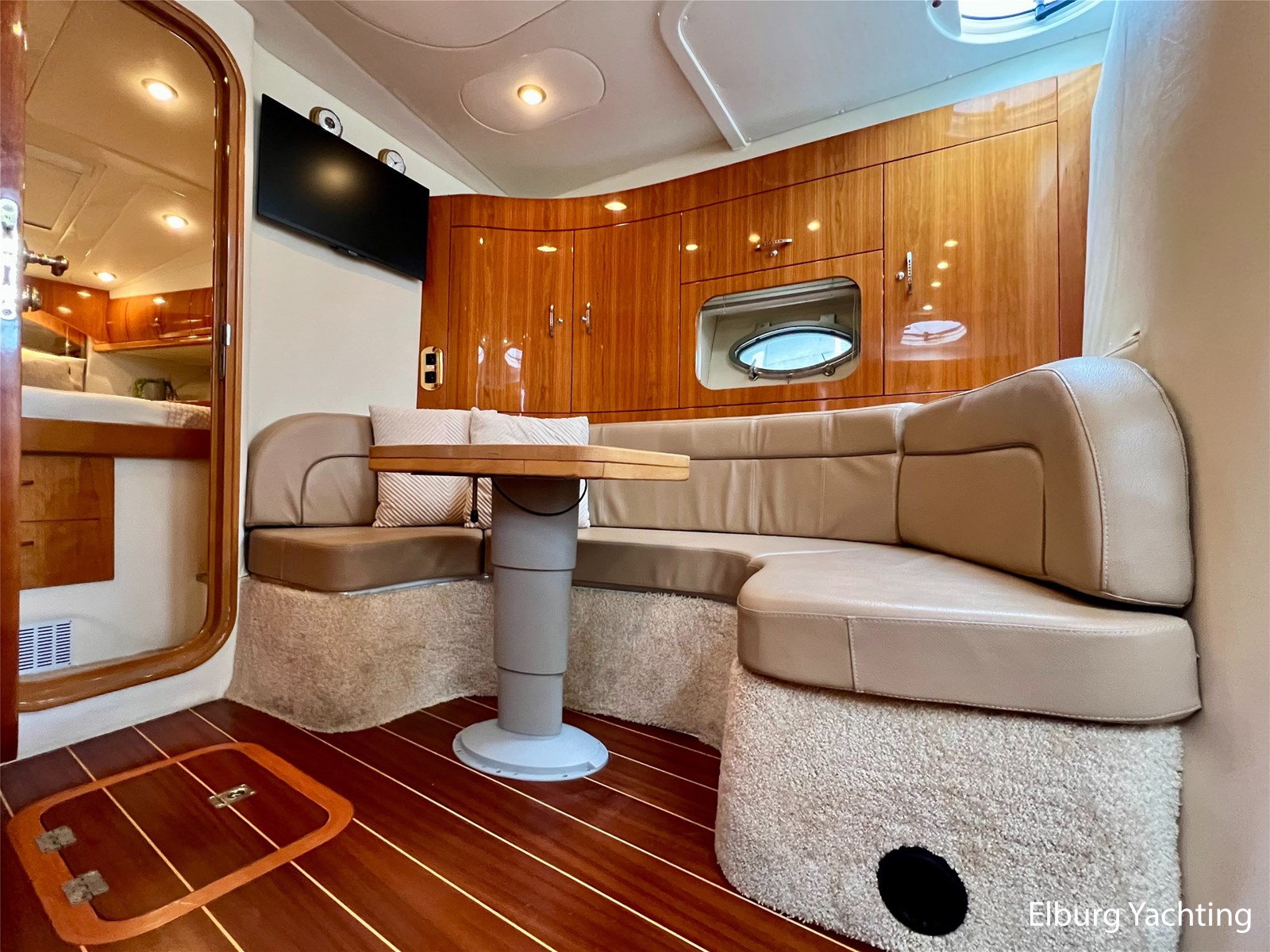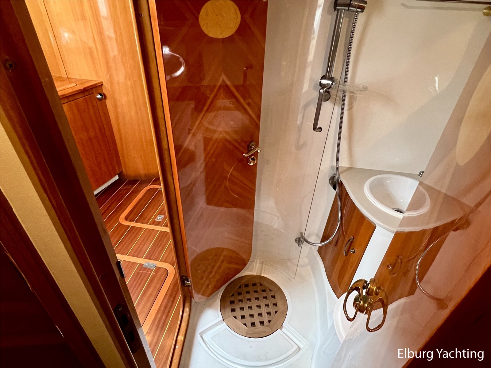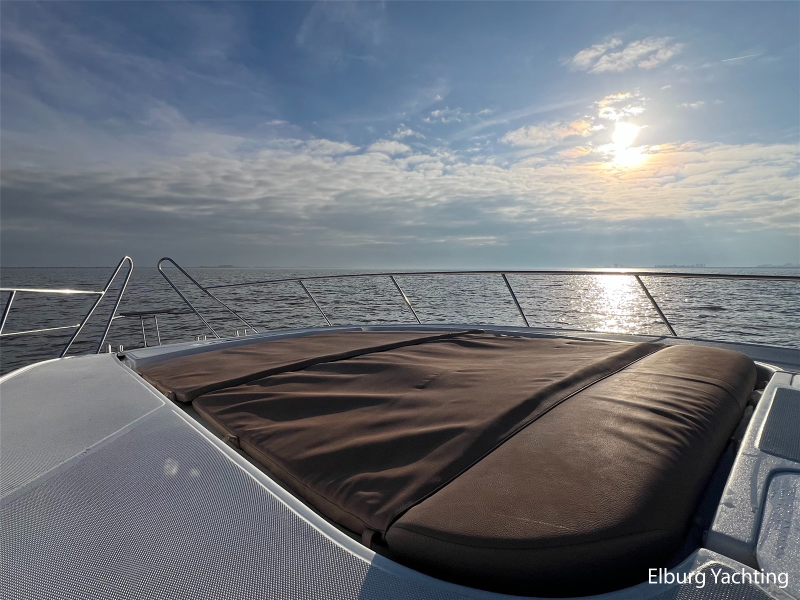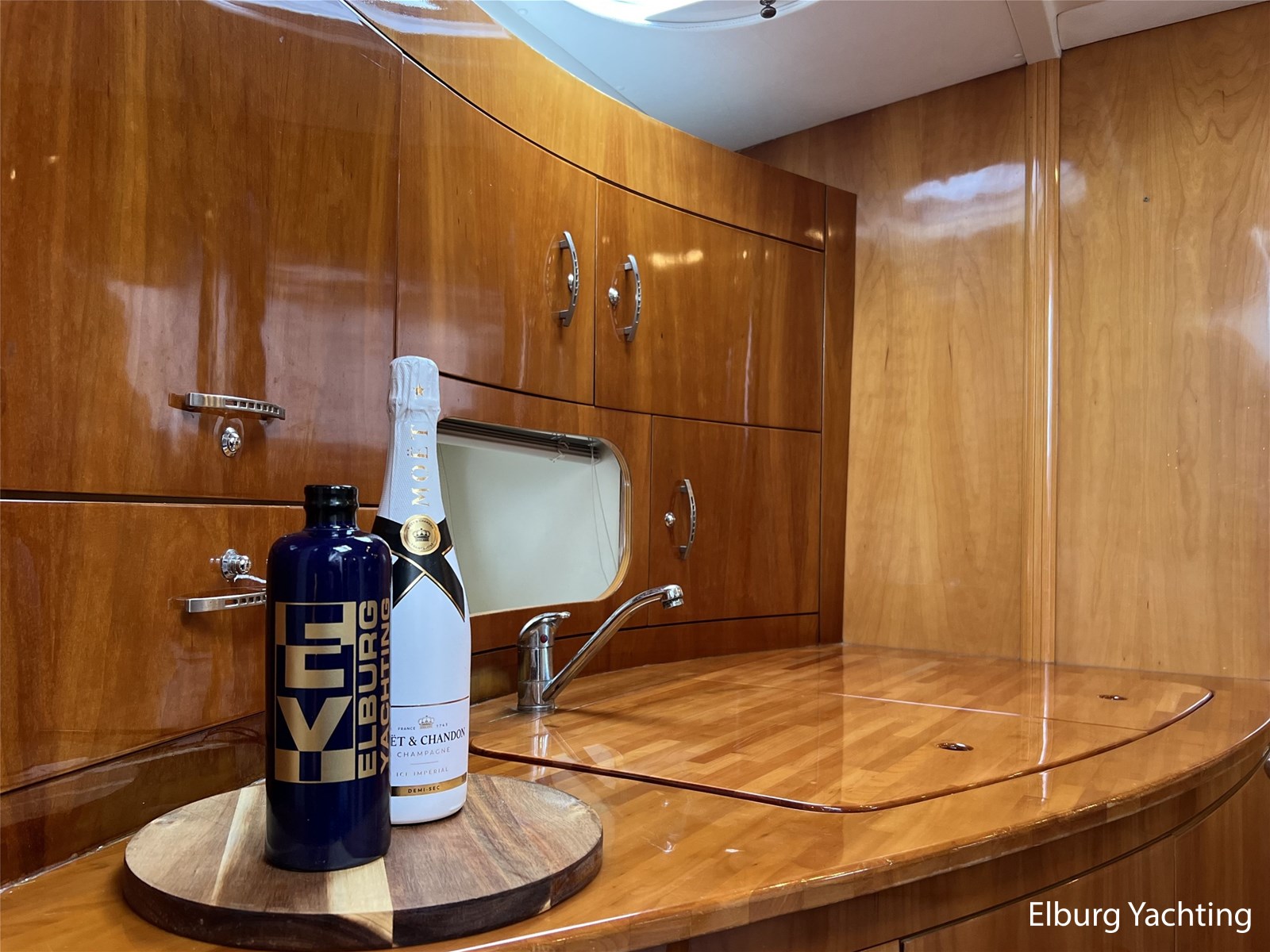Italiaans design in combinatie met veel praktische ruimte kenmerkt deze Mira 43 van de werf Innovazione e Progetti uit Italie. Dit jacht is van bouwjaar 2004 en is voorzien van twee krachtige Volvo Penta D6 motoren met elk 350 pk. De aandrijving verloopt via twee Volvo Penta DPH hekdrives, welke in 2025 zijn geserviced. Deze Mira 43 is voorzien van: Volledige tent rondom kuip met uitristbare delen, hydraulisch uitschuifbare gangway met afstandsbediening, groot bergluik in zwemplateau, kuip voorzien van koelkast / spoelkom / radio met speakers, loop naar het voordek via gangboorden maar ook binnendoor via opstap bij stuurstand, afneembaar zonnebed op het voordek, elektrisch/hydraulisch bedienbaar luik naar machinekamer, diverse 230V aansluitpunten door de boot, TV in salon (2025), tapijt delen in het interieur uitneembaar, 2 x bergluik in salonvloer. Verfsysteem onderwaterschip vernieuwd in juli 2025. Dit schip is op afspraak in Nederland te bezichtigen. Wij maken graag met u een afspraak voor een vrijblijvend bezoek aan boord.