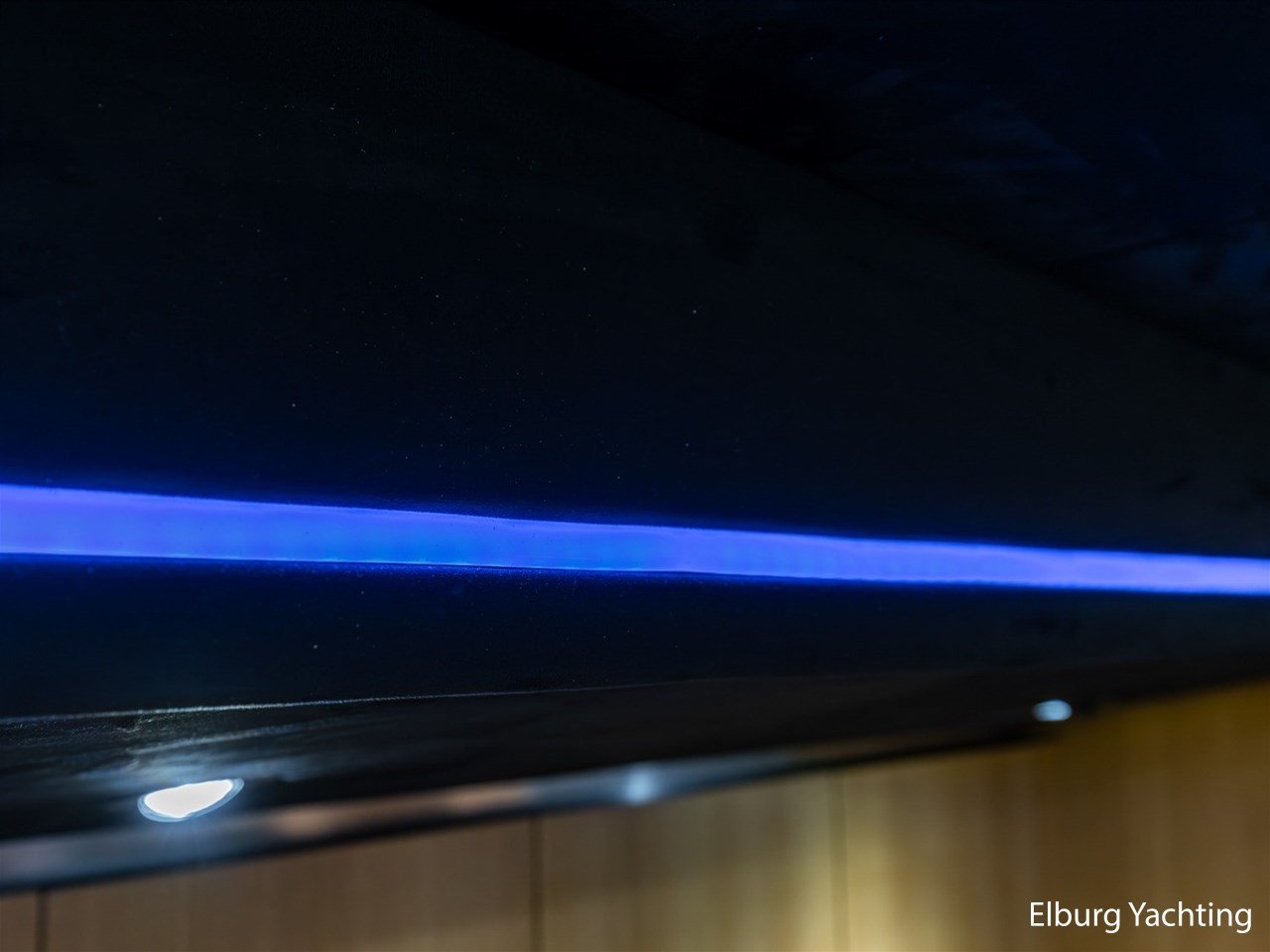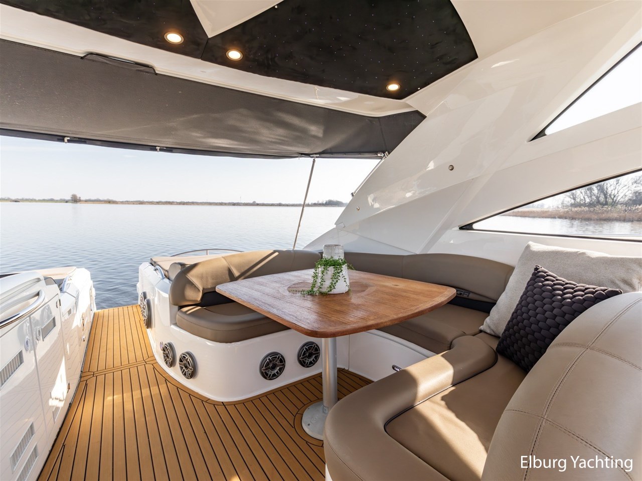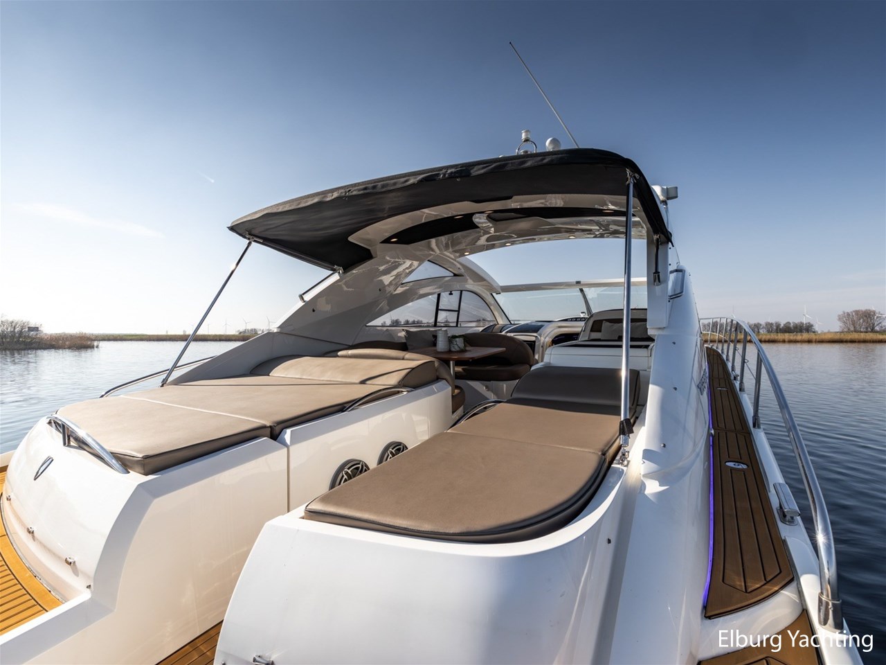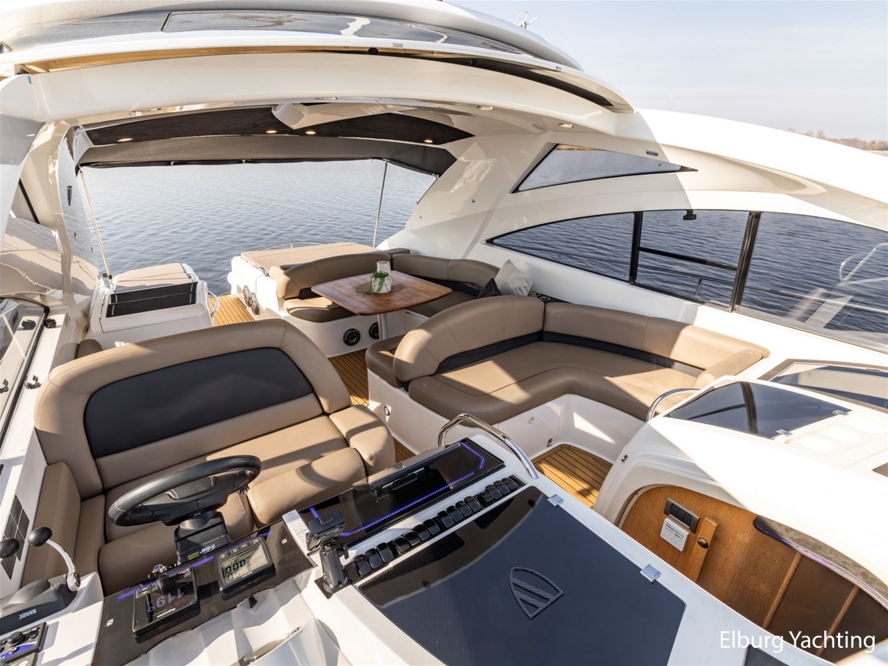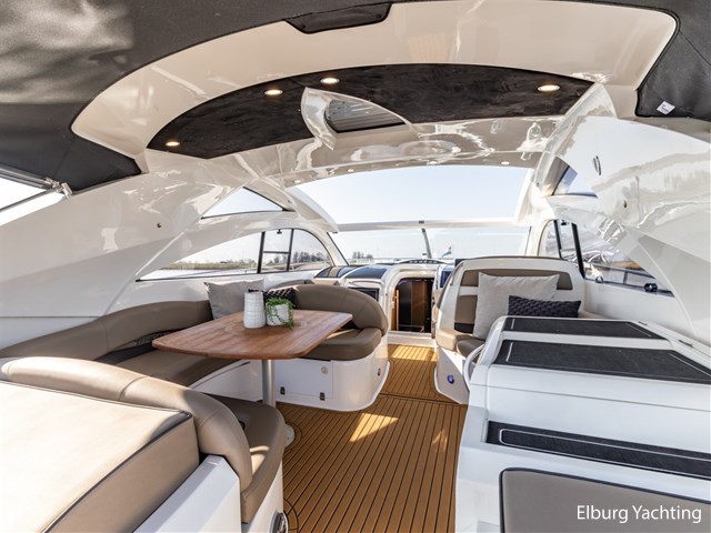 De kuip is uitgevoerd met een Alcantara plafondafwerking inclusief sterrenhemelverlichting. De kuip, het zwemplateau en de gangboorden zijn afgewerkt met SeaDek, wat zorgt voor extra comfort en een moderne uitstraling. Het exterieur is rondom voorzien van kleur instelbare sfeerverlichting en op het voorschip bevindt zich een ruim zonnedek.