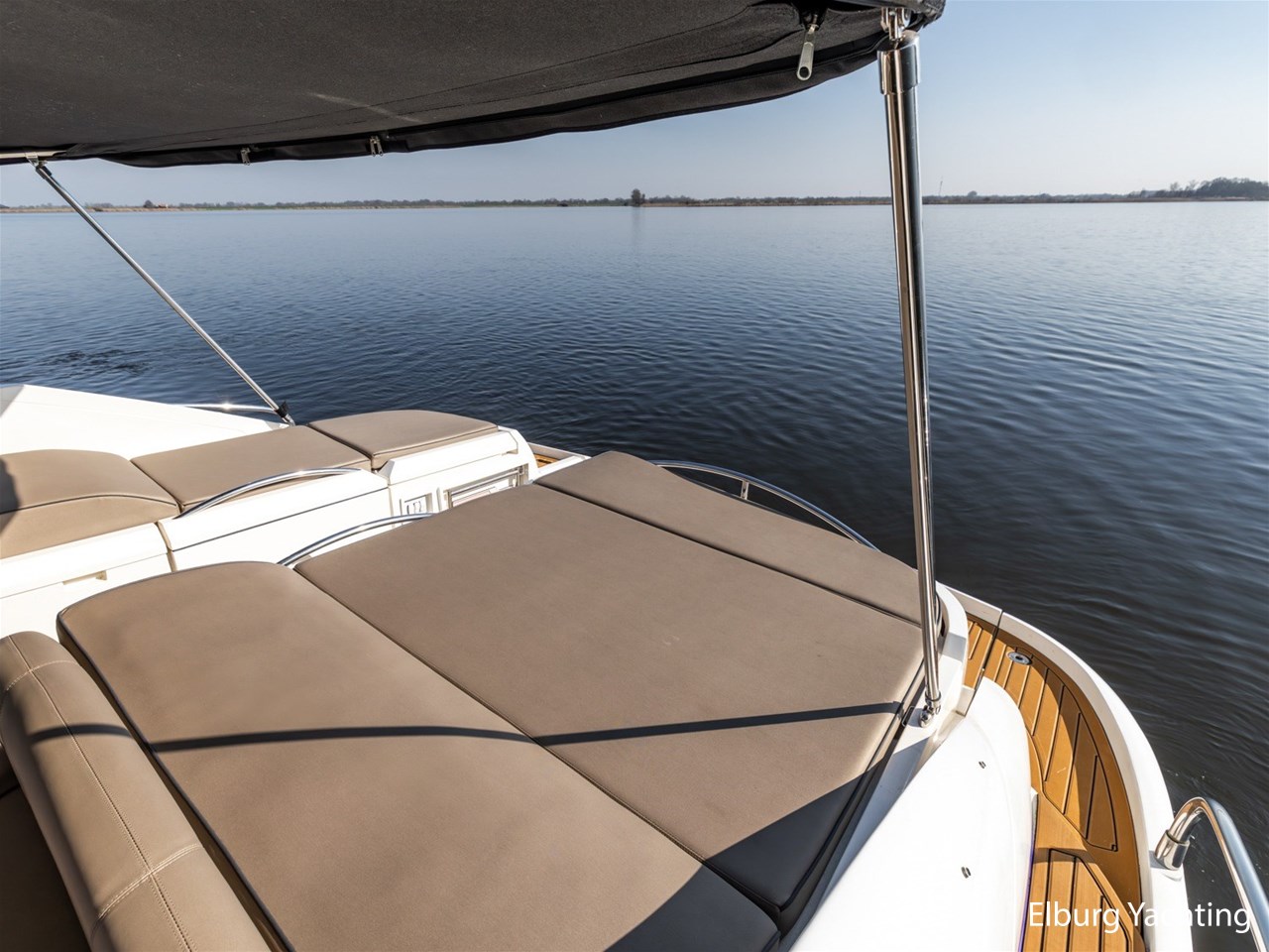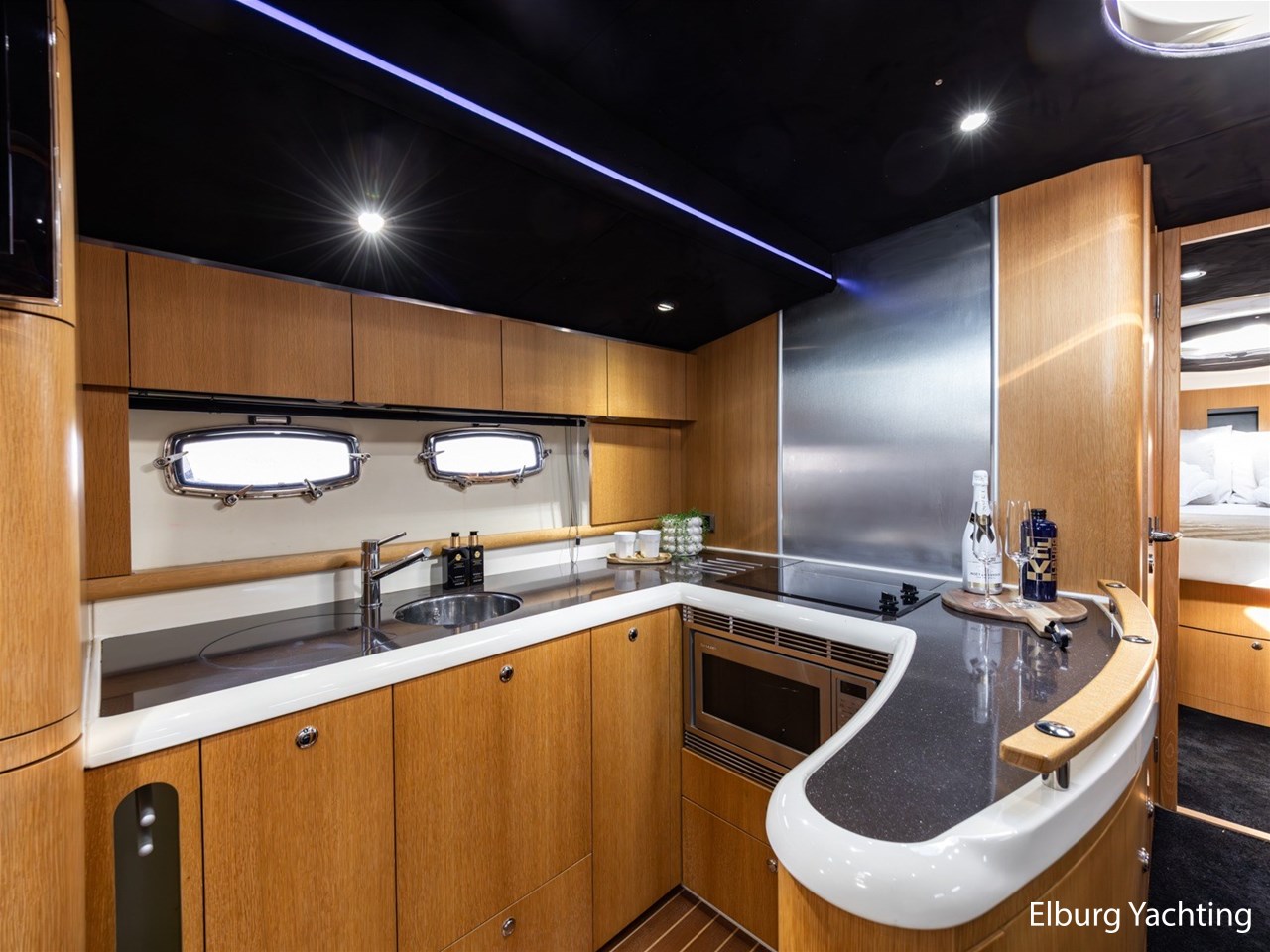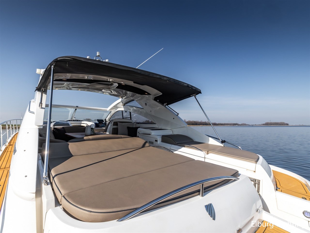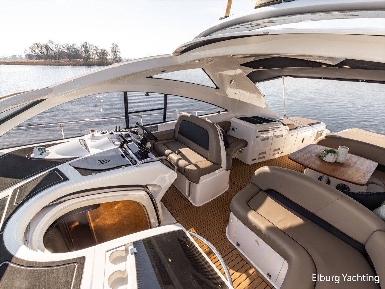 De kuip is uitgevoerd met een Alcantara plafondafwerking inclusief sterrenhemelverlichting. De kuip, het zwemplateau en de gangboorden zijn afgewerkt met SeaDek, wat zorgt voor extra comfort en een moderne uitstraling. Het exterieur is rondom voorzien van kleur instelbare sfeerverlichting en op het voorschip bevindt zich een ruim zonnedek.