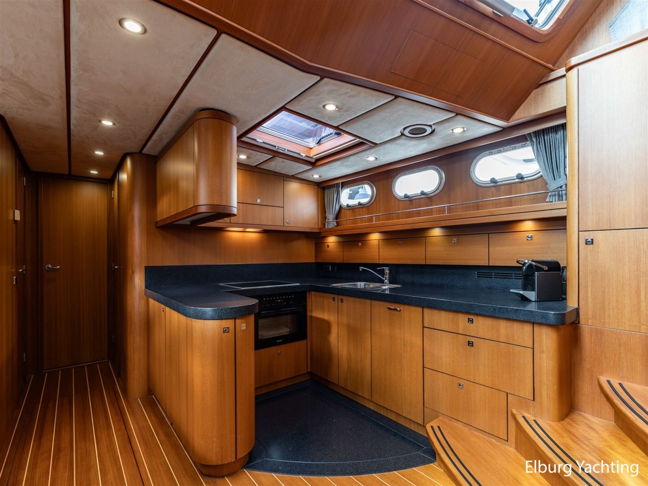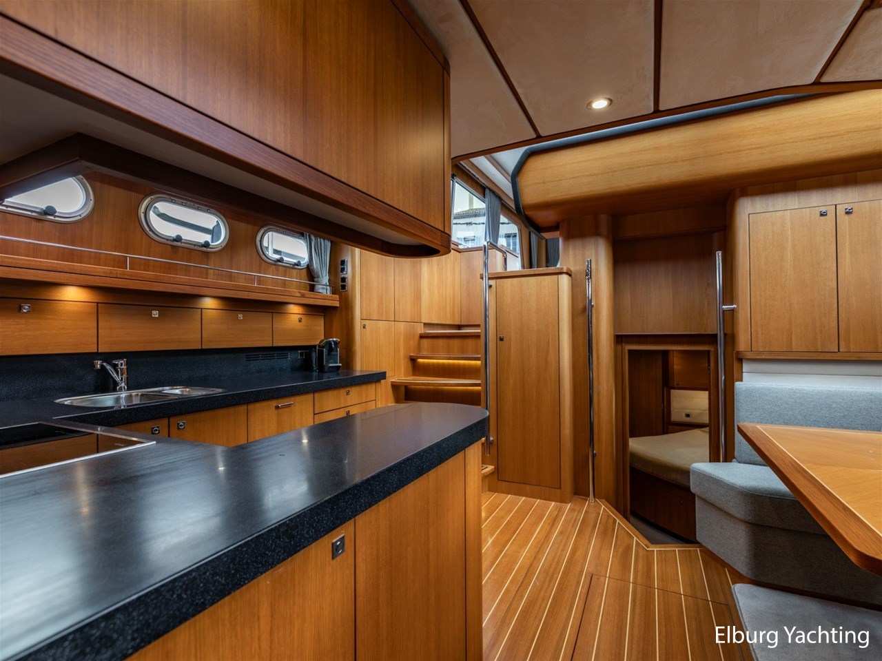 - Hoogwaardig teak scheepsinterieur en teakhouten vloer