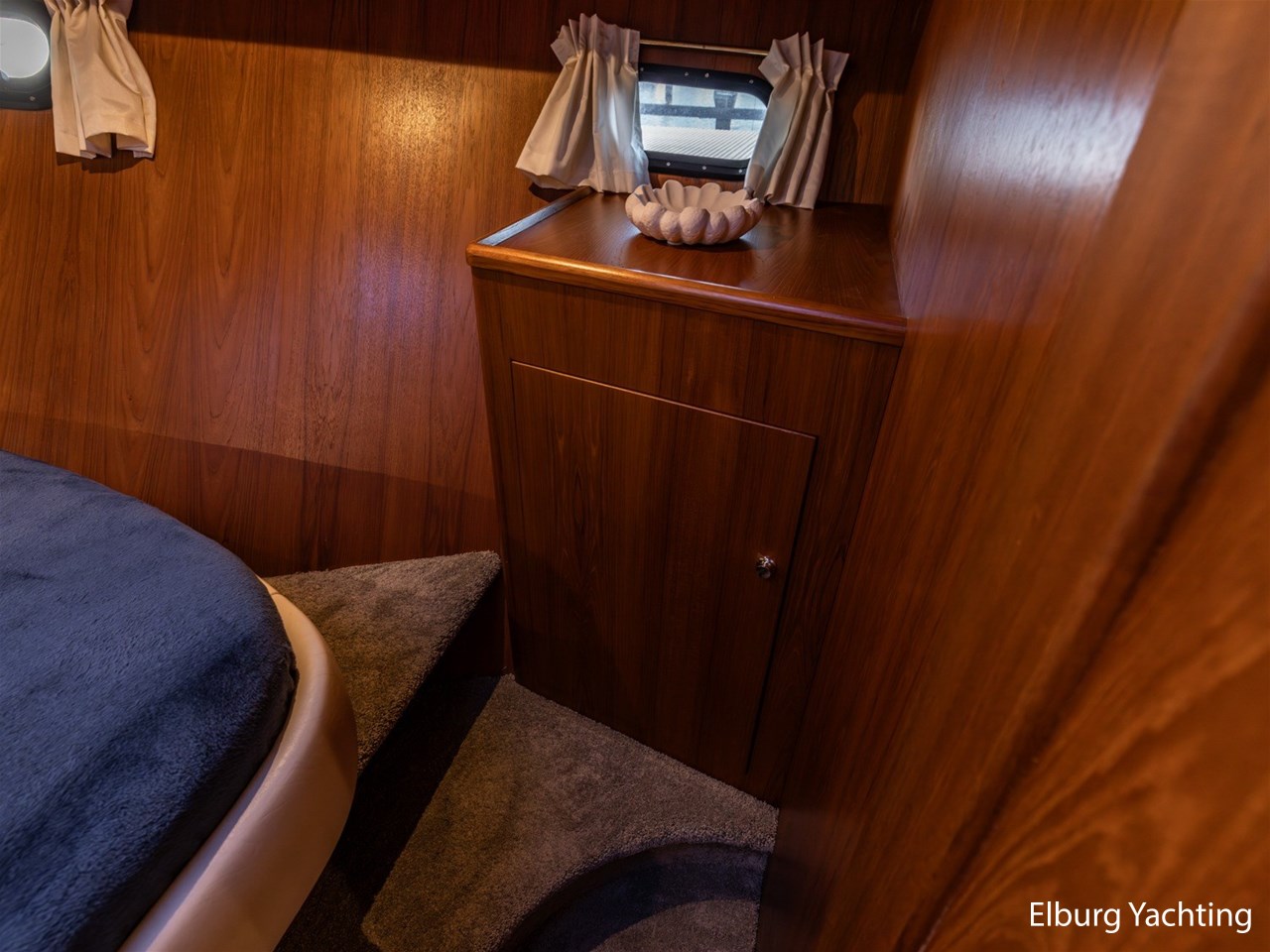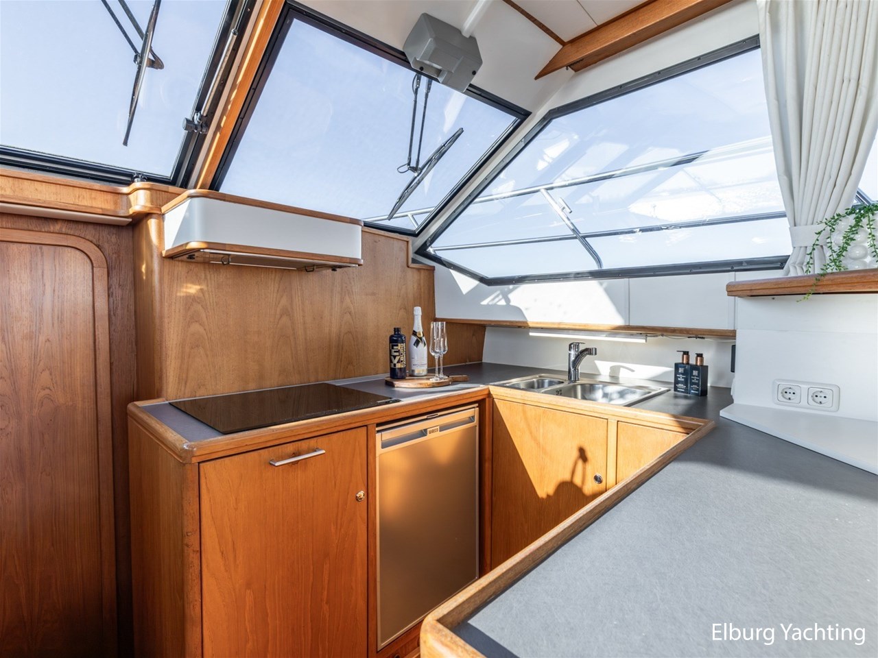 Het jacht is daarnaast uitgevoerd met: Vetus airconditioning in salon, extra stevige r.v.s. reling,4 x houten (openslaande) deuren naar open kuip, deur in verschansing naar zwemplateau, geïntegreerde bakskisten met teakhouten deksel, grote verwarmde (d.m.v. radiator) opbergruimte onder de kuip, dekwaspomp, lederen bekleding, dubbele r.v.s. stootlijst, vlucht/ventilatie luik, luxe vaarstoel (met leer bekleedt), Mastervolt Mass inverter/charger Control, r.v.s. bolders en kikkers gemonteerd op r.v.s. platen, Bosch was/droger combinatie, zelflozende kuip, kuiptent, klapbare radarbeugel, laminaat vloer in salon, traanplaten in machinekamer, dubbele wierfilters, dubbele brandstoffilters, het jacht heeft een zeer ruime beschutte kuip + zeer ruime salon. Door de 4 klapdeuren ontstaat er een zeer gezellige ruimte als geheel.