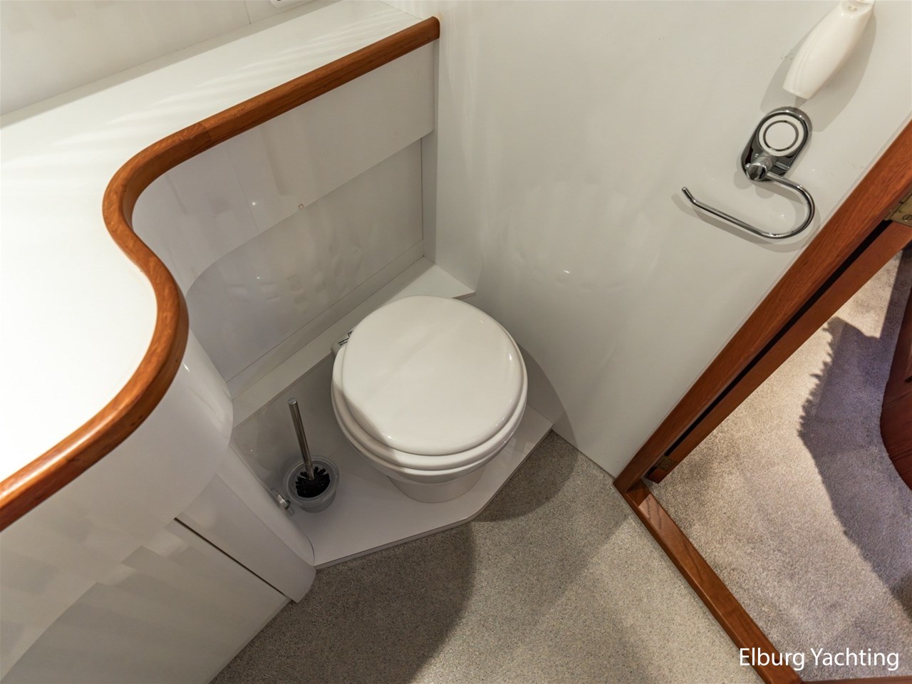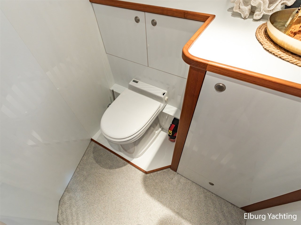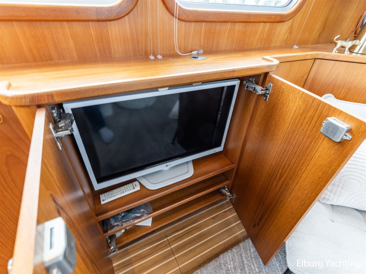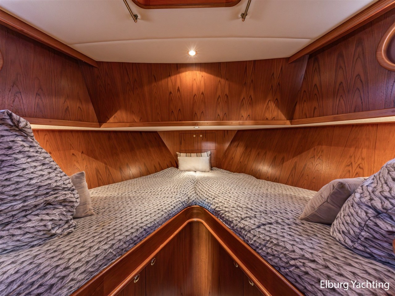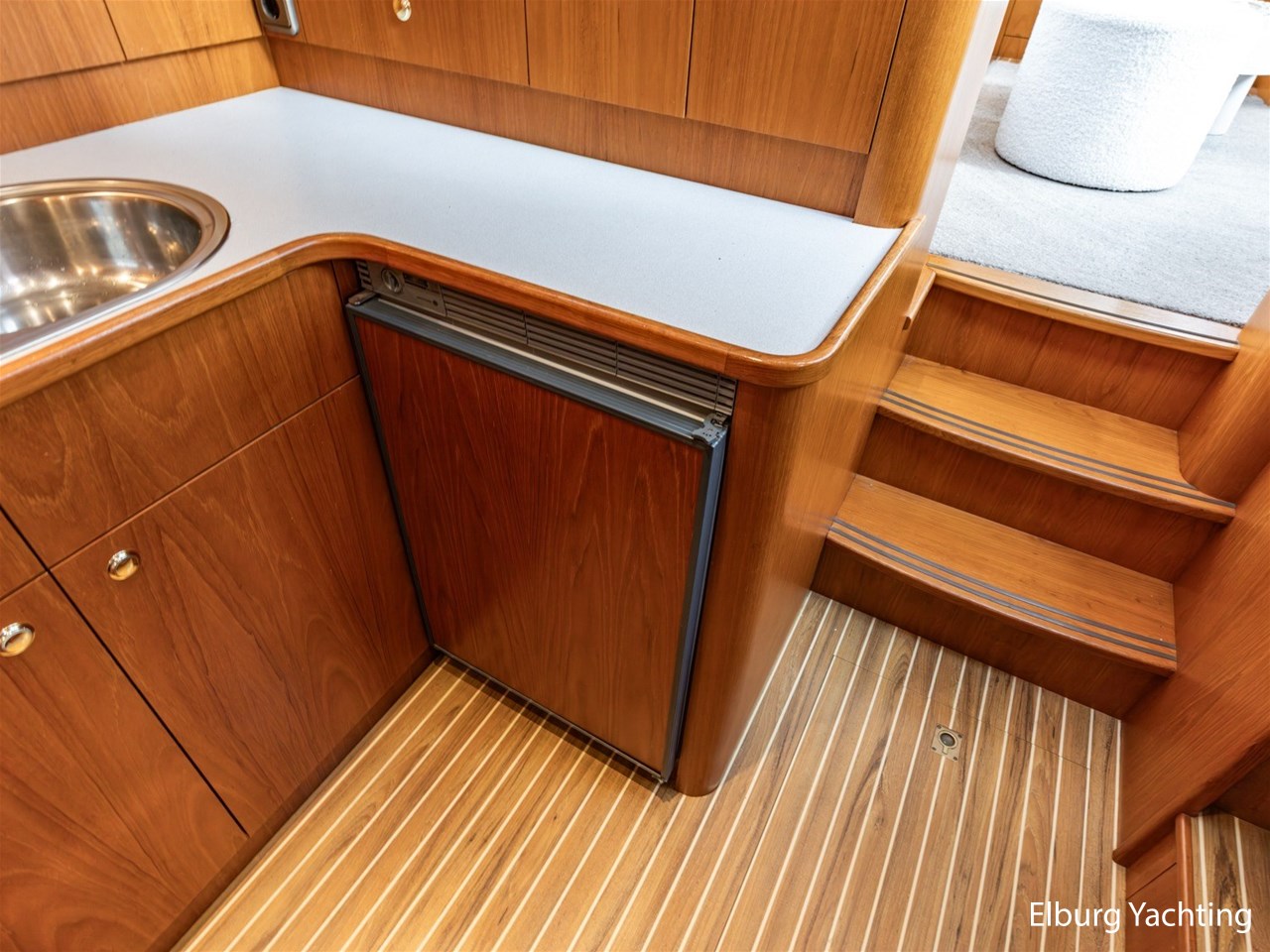 - Hoogwaardig Teakhouten interieur met ronde afwerking en nieuwe grijze stoffering (2024)