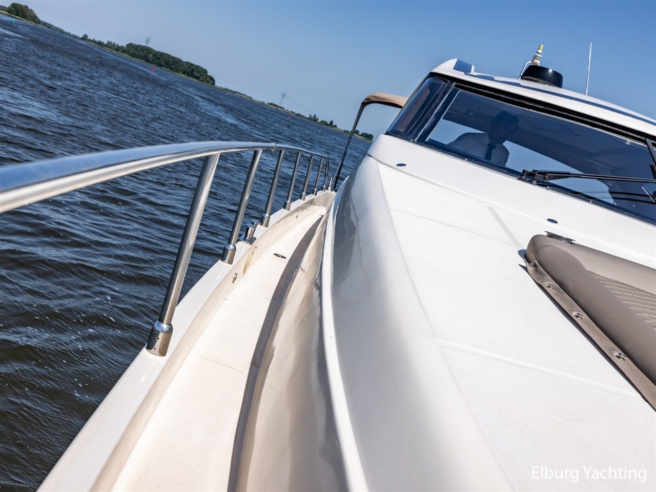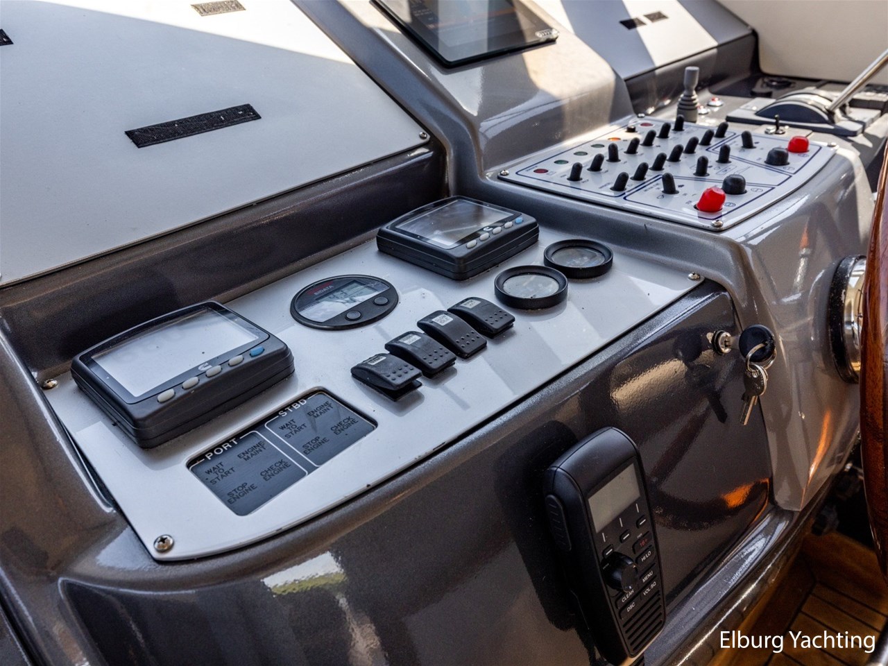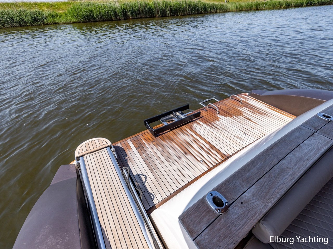 - Antislip op zijdek + teak in open kuip en stuurhuis
