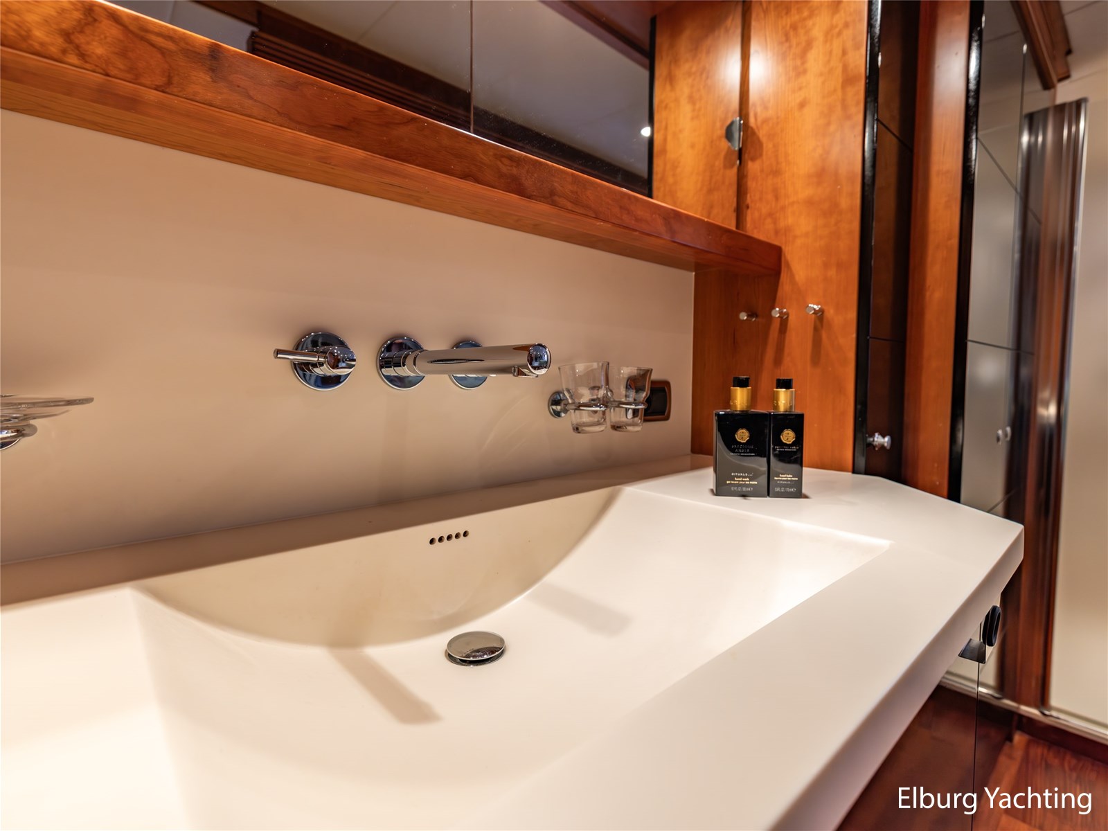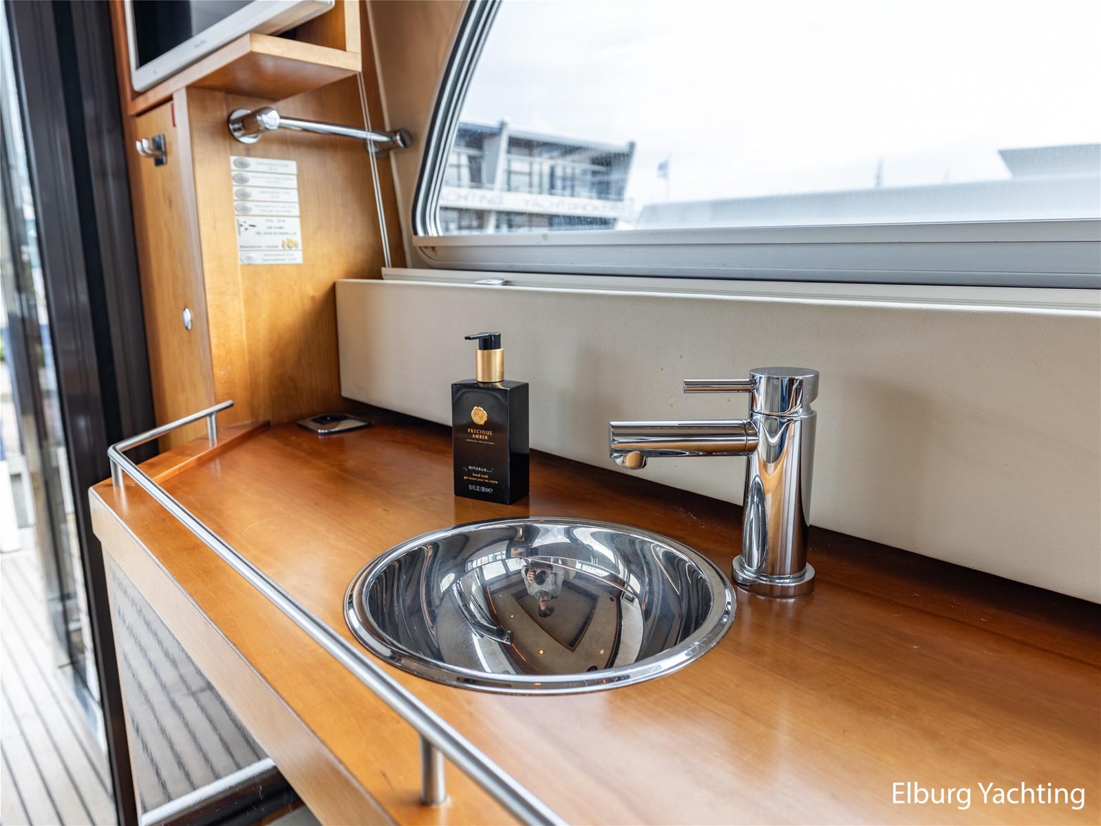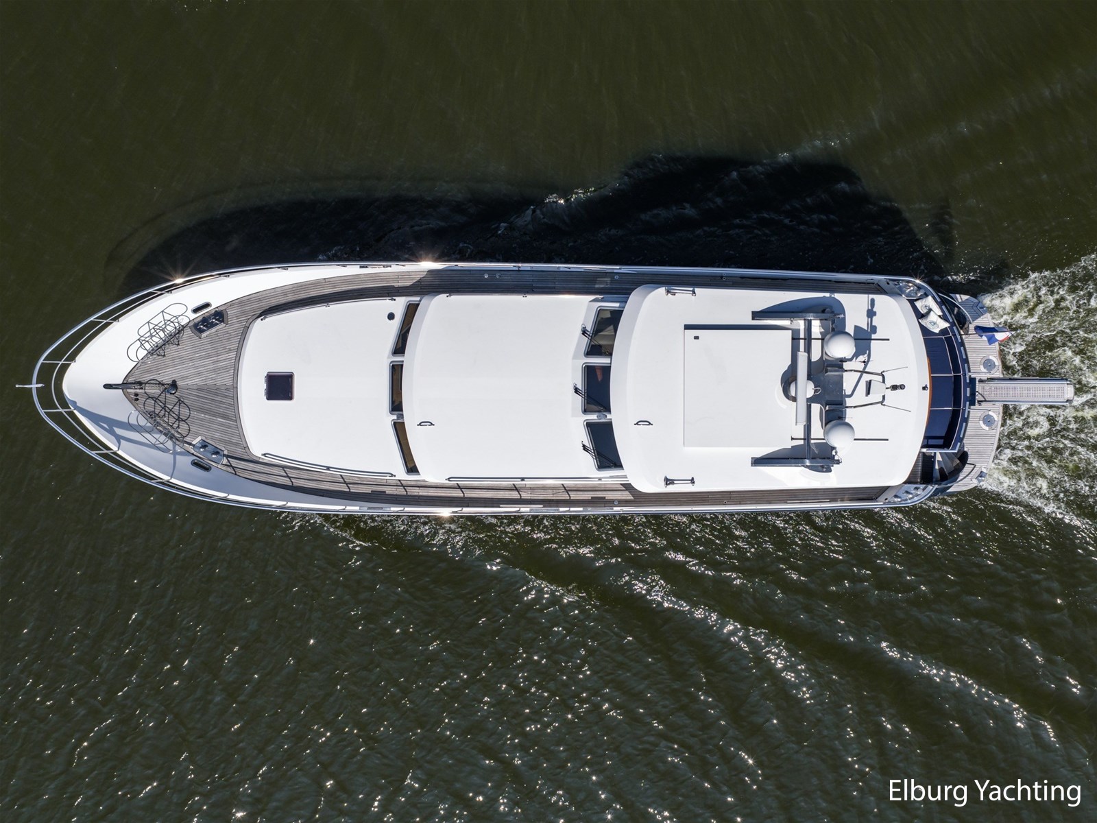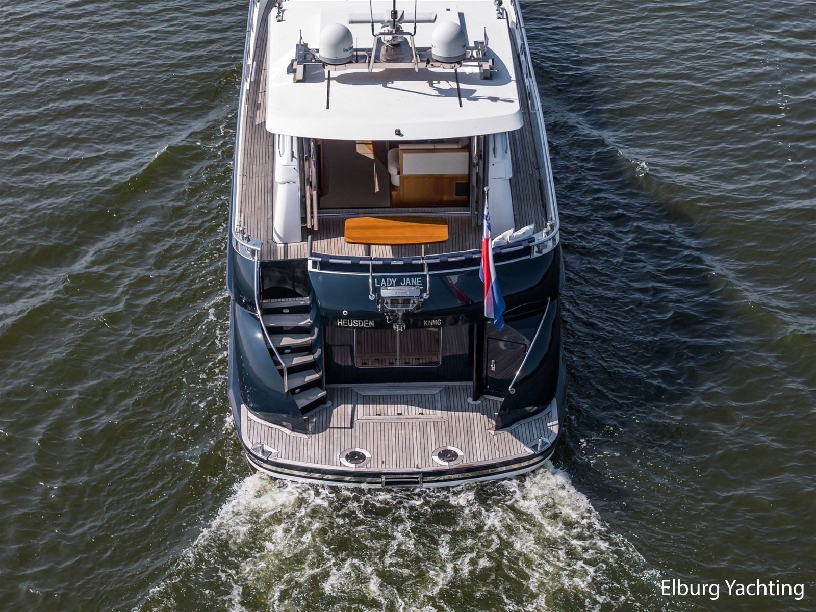 Ook buitenom is het comfort volledig doorgevoerd. Het schip beschikt over een teakdek rondom en een groot zwemplateau met geïntegreerde gangway en verlichting. Een luie trap vanaf het achterdek maakt de toegang tot het zwemplateau extra comfortabel.
