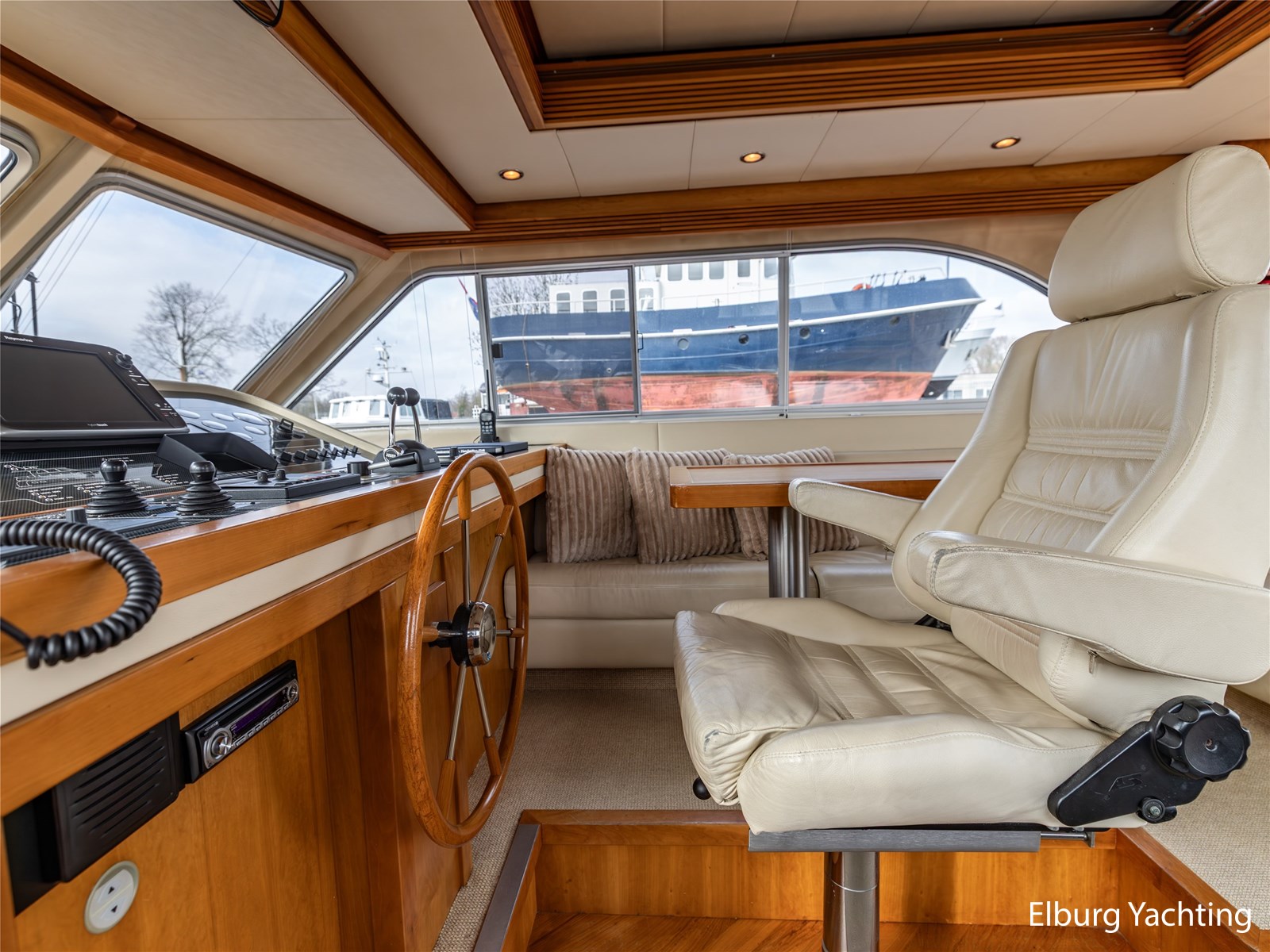 De stuurhut is bovendien zeer compleet uitgerust: onder andere met Autopilot, radar, kaartplotter, camerasysteem, elektrisch zoeklicht, Hydronautica-afstandsbediening voor motor, boeg- en hekschroef, ruitenwissers met intervalstand, marifoon en andere accessoires. Alles is aanwezig voor ontspannen én veilig varen, ongeacht het vaargebied.