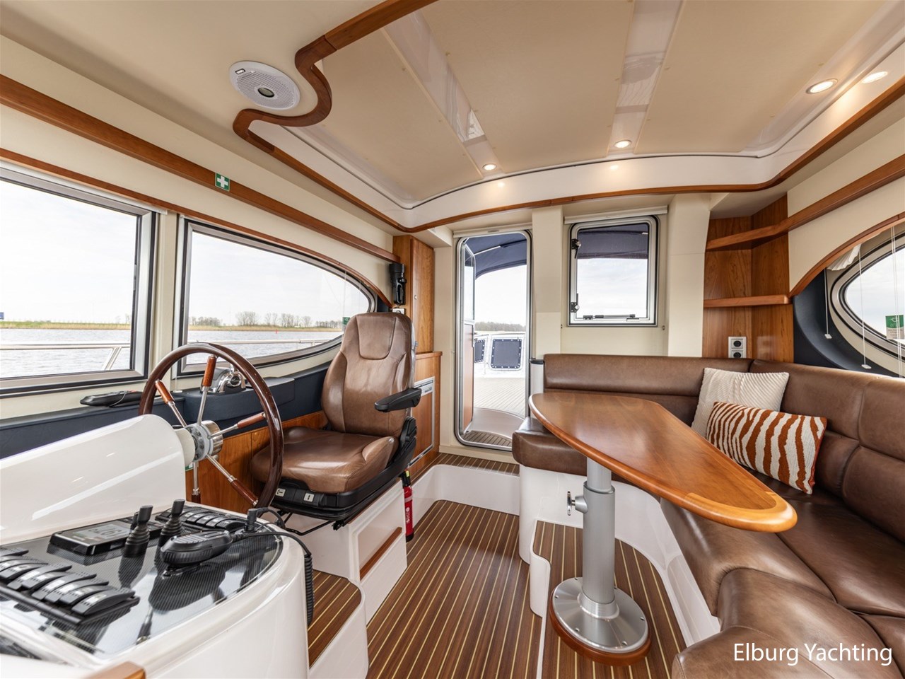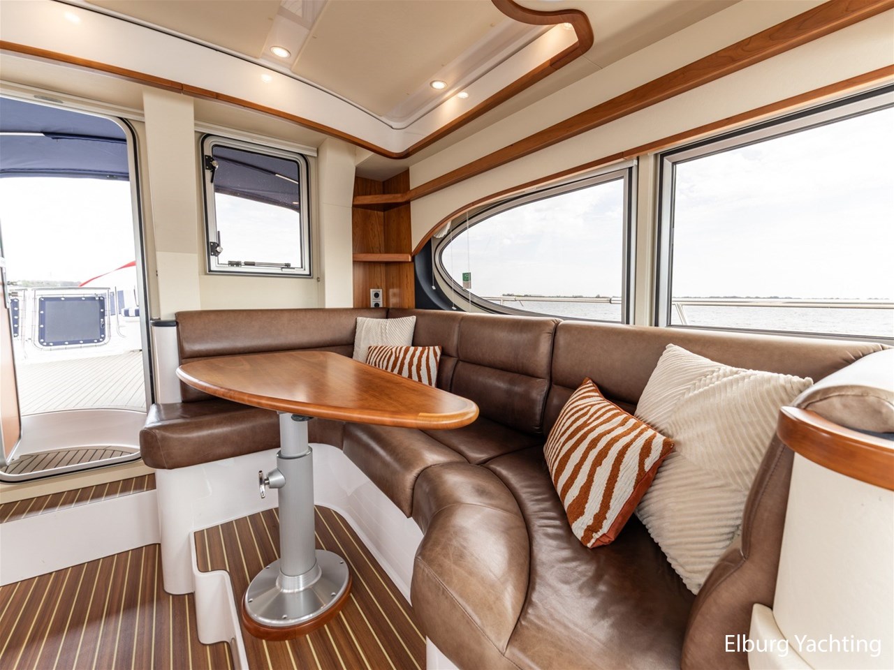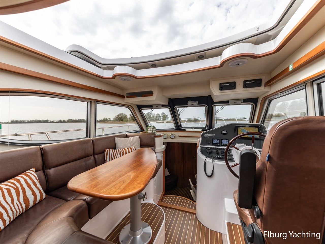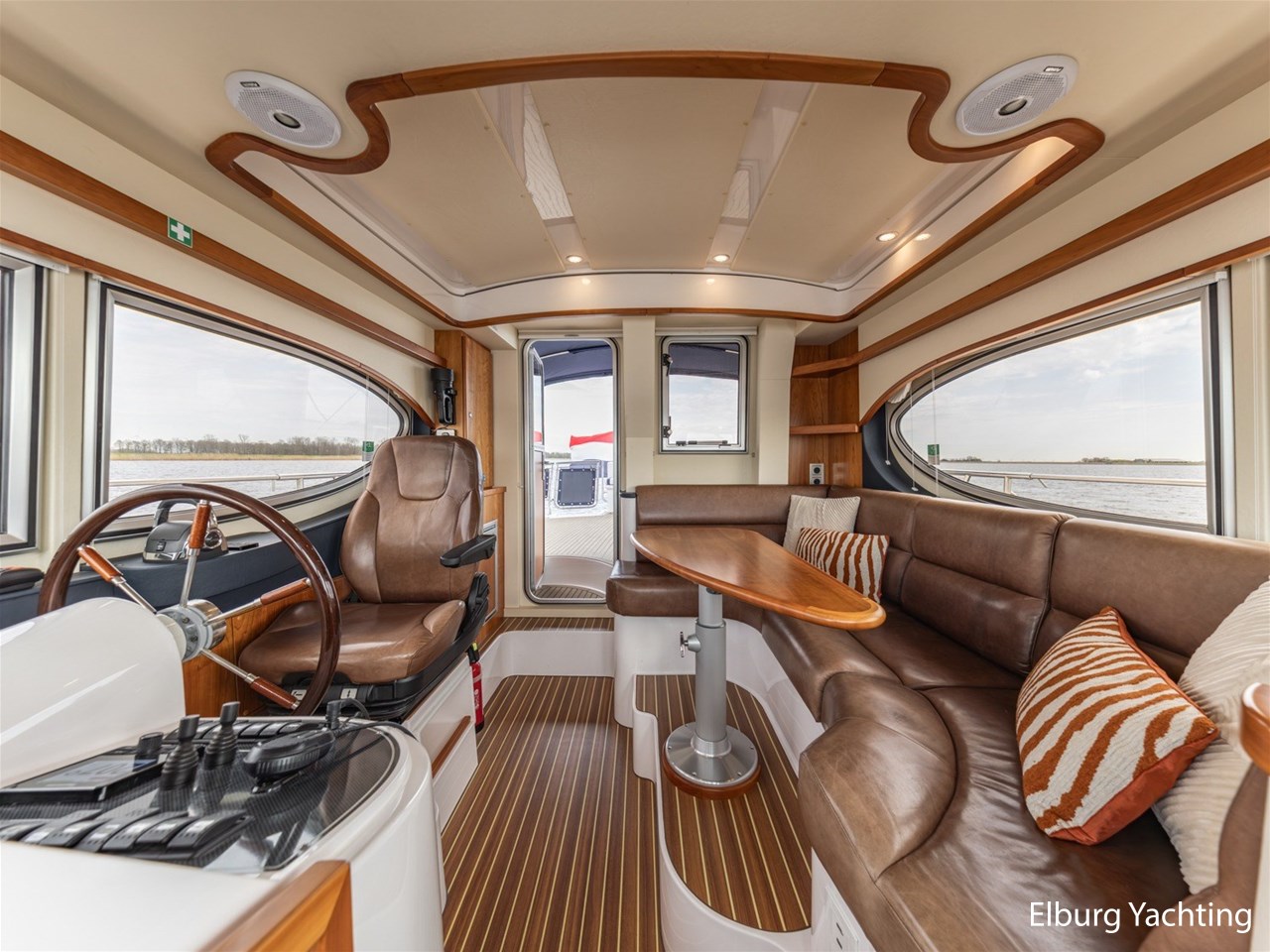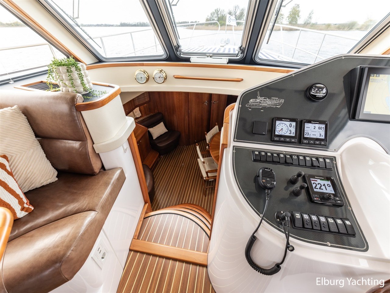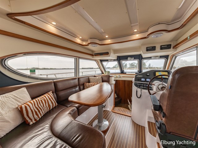 Het jacht heeft een verzorgde uitstraling, een warme afwerking en een praktische indeling met veel leefruimte. Deze uitvoering uit 2018 is bovendien voorzien van de vernieuwde hoekbank bij de stuurstand, vloerverwarming in de stuurhut en Fusion audio.