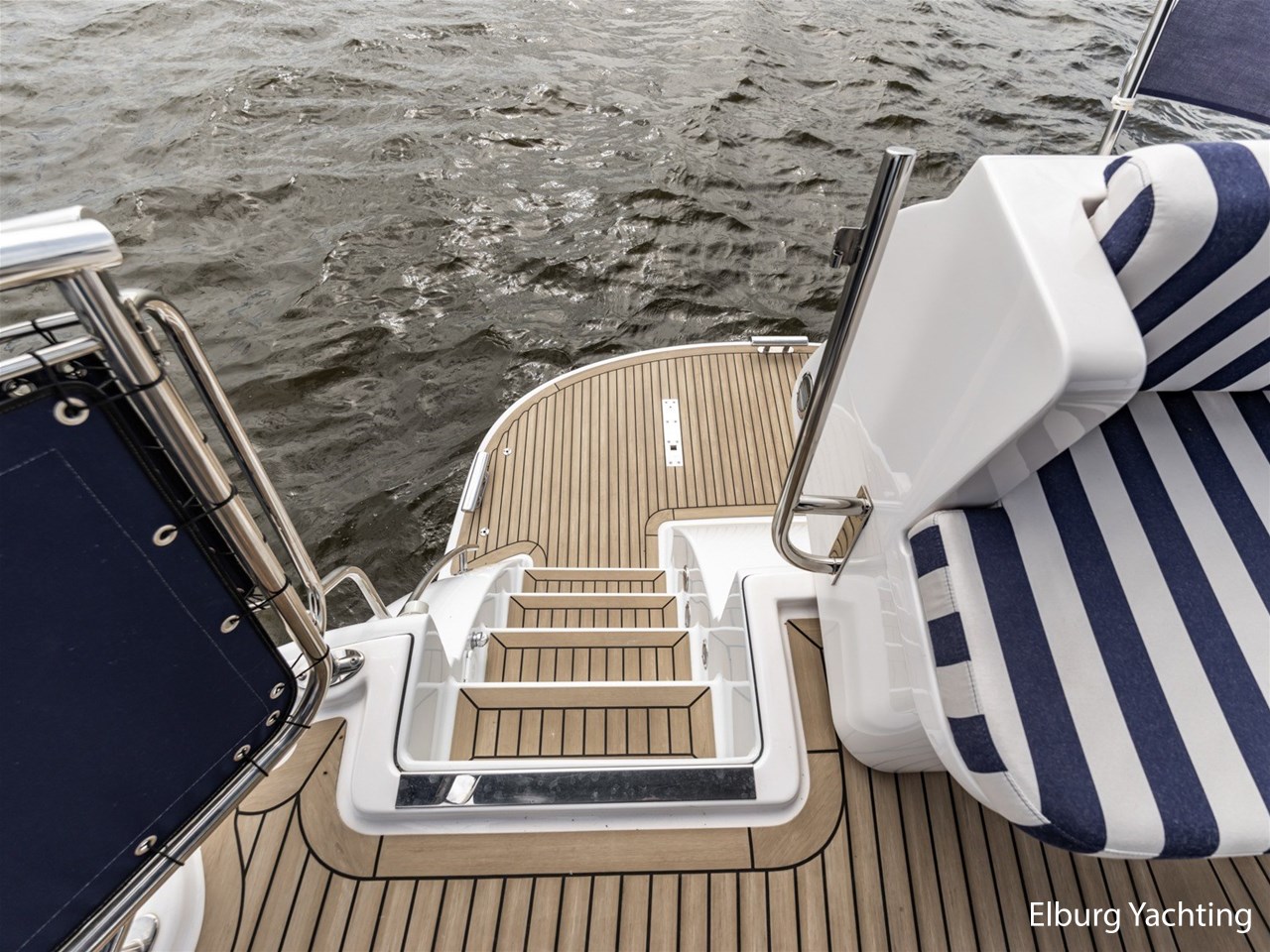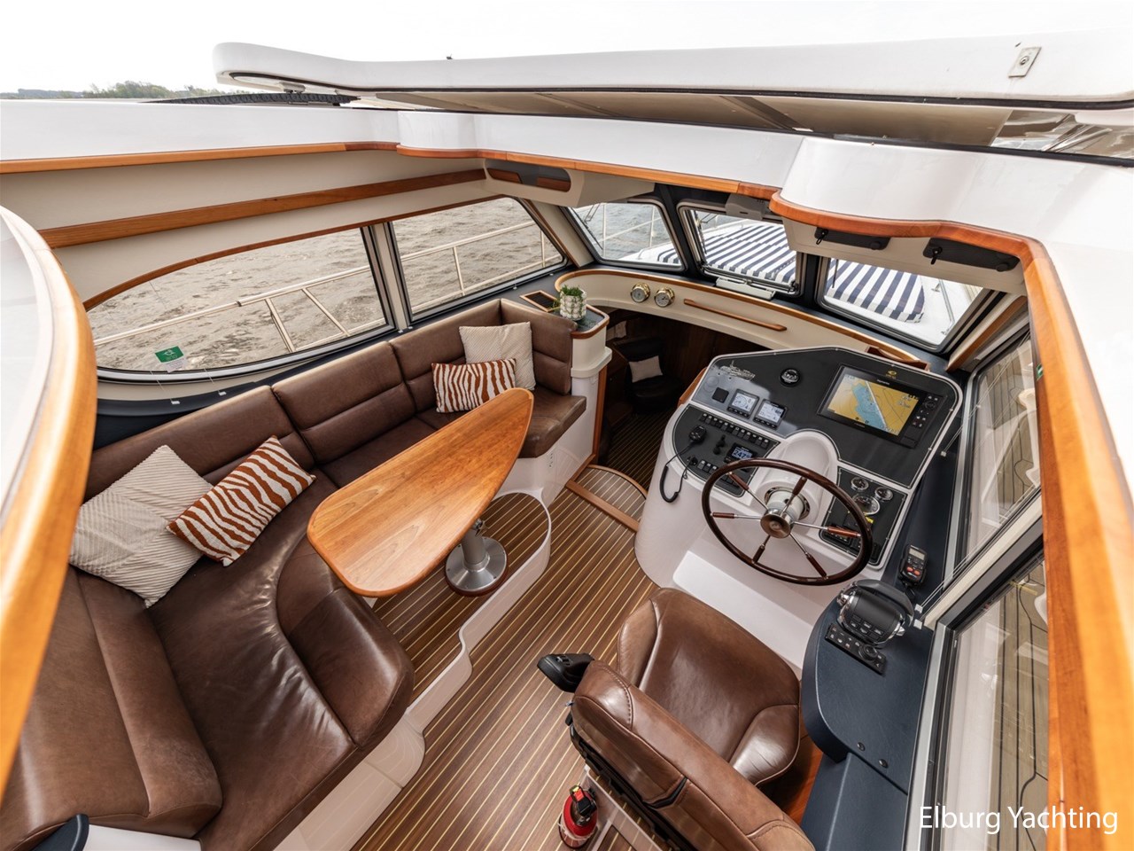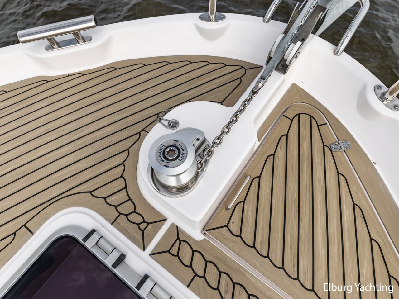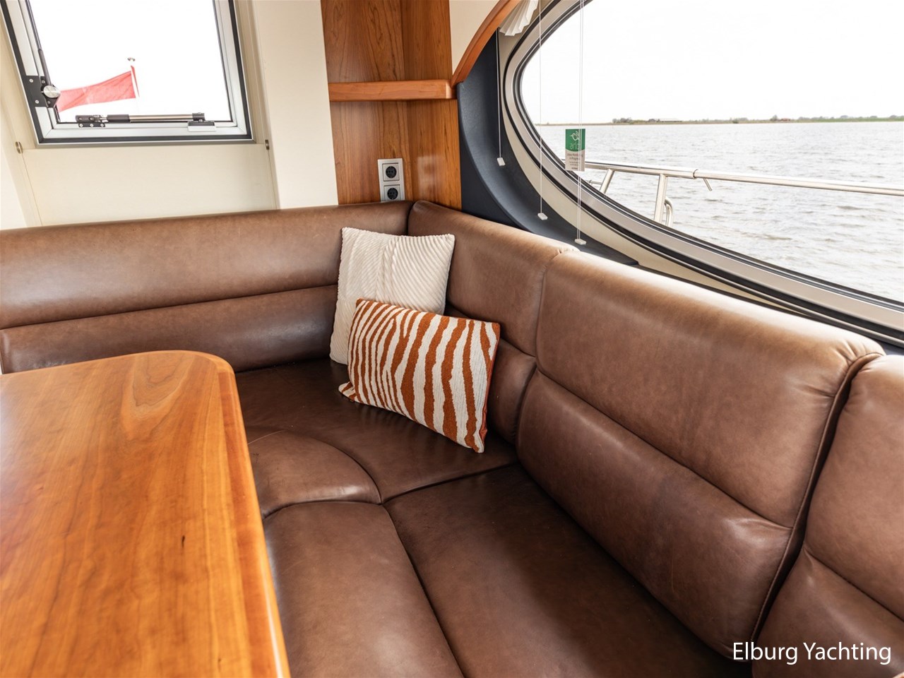 Het jacht heeft een verzorgde uitstraling, een warme afwerking en een praktische indeling met veel leefruimte. Deze uitvoering uit 2018 is bovendien voorzien van de vernieuwde hoekbank bij de stuurstand, vloerverwarming in de stuurhut en Fusion audio.