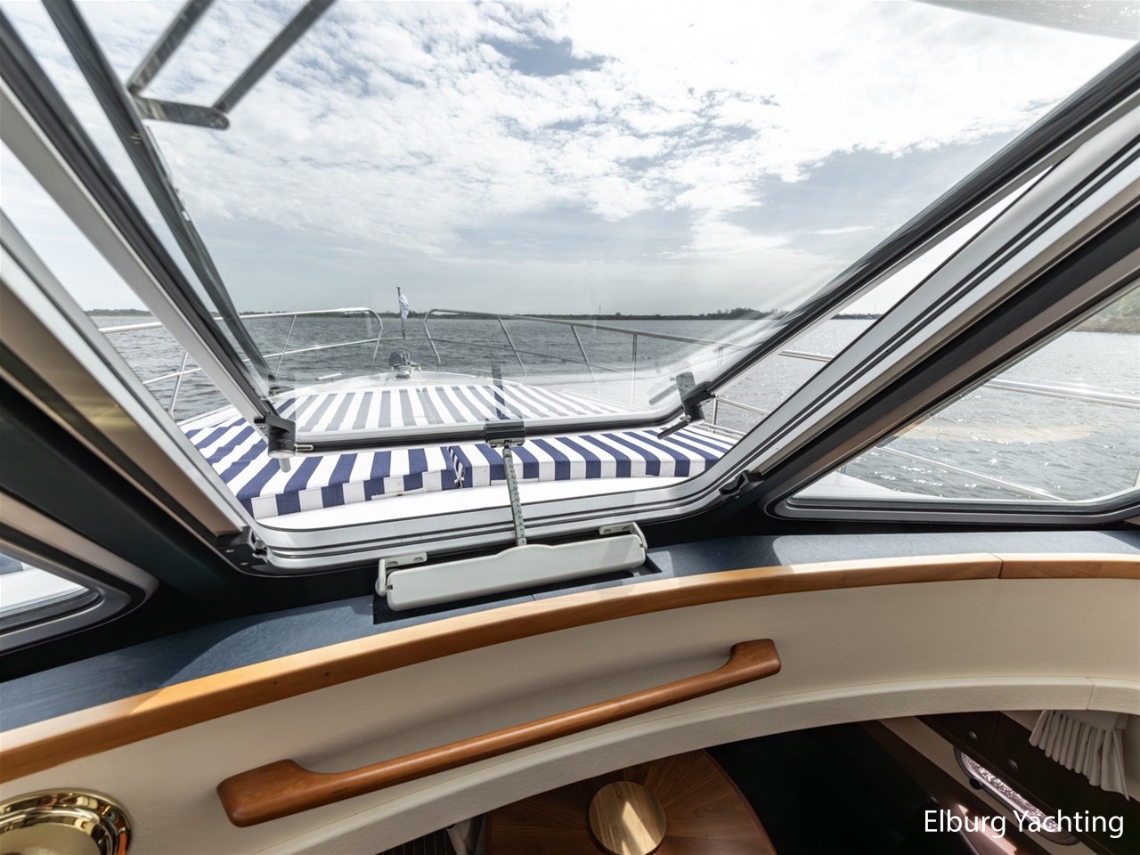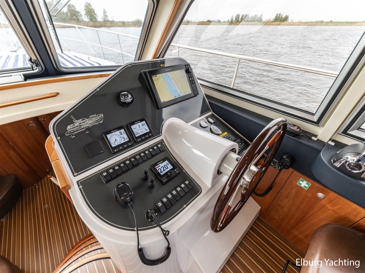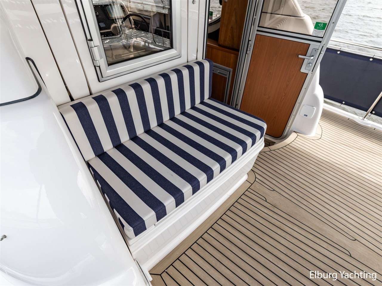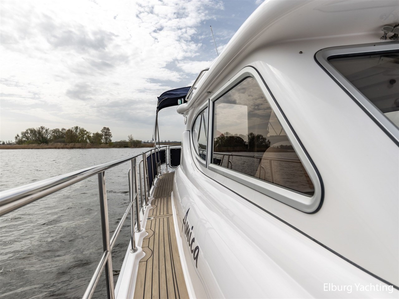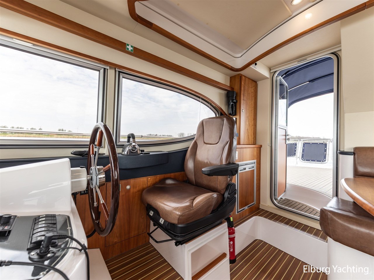 Het jacht heeft een verzorgde uitstraling, een warme afwerking en een praktische indeling met veel leefruimte. Deze uitvoering uit 2018 is bovendien voorzien van de vernieuwde hoekbank bij de stuurstand, vloerverwarming in de stuurhut en Fusion audio.