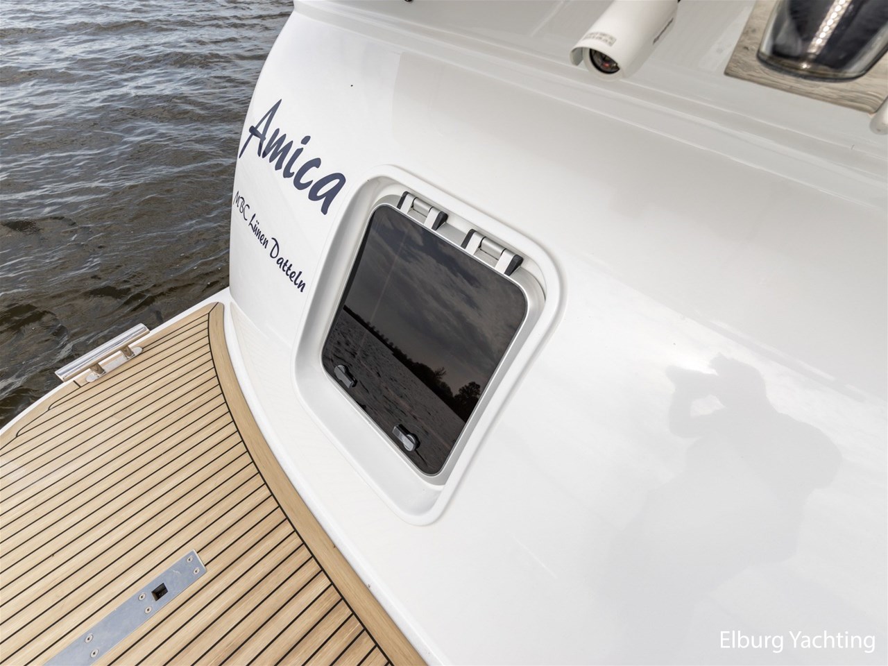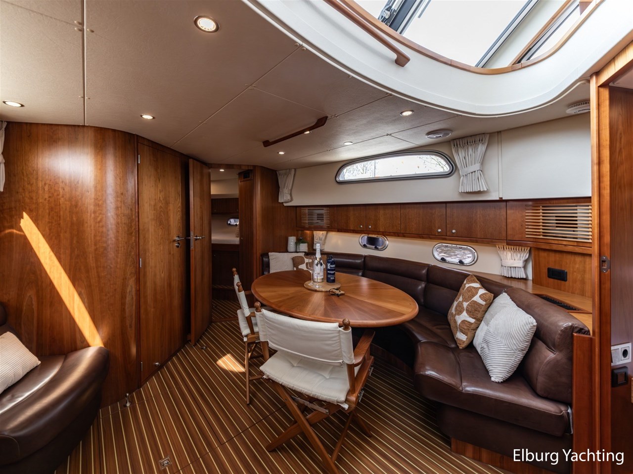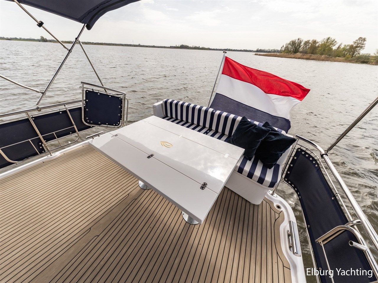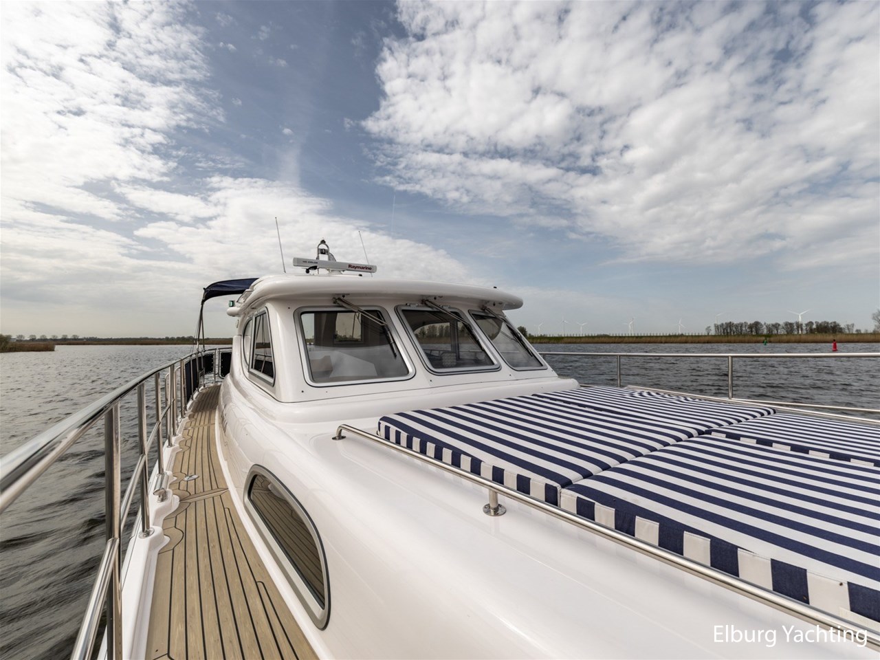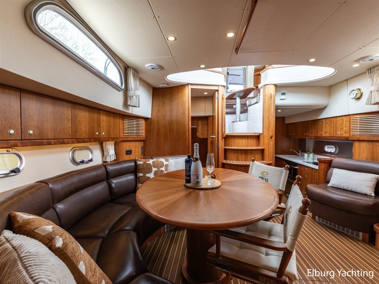 Het jacht heeft een verzorgde uitstraling, een warme afwerking en een praktische indeling met veel leefruimte. Deze uitvoering uit 2018 is bovendien voorzien van de vernieuwde hoekbank bij de stuurstand, vloerverwarming in de stuurhut en Fusion audio.