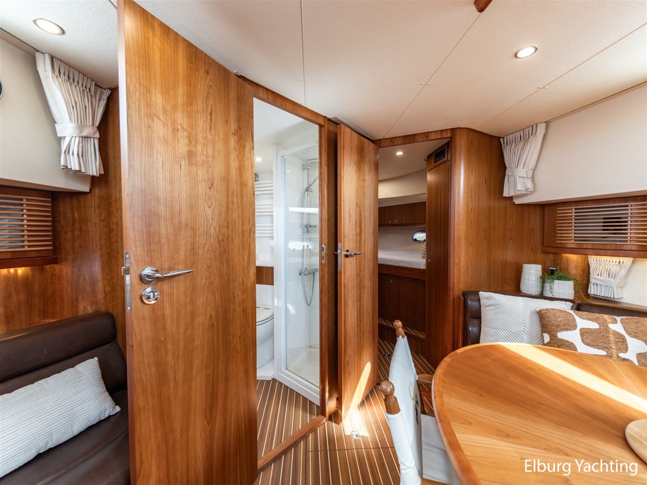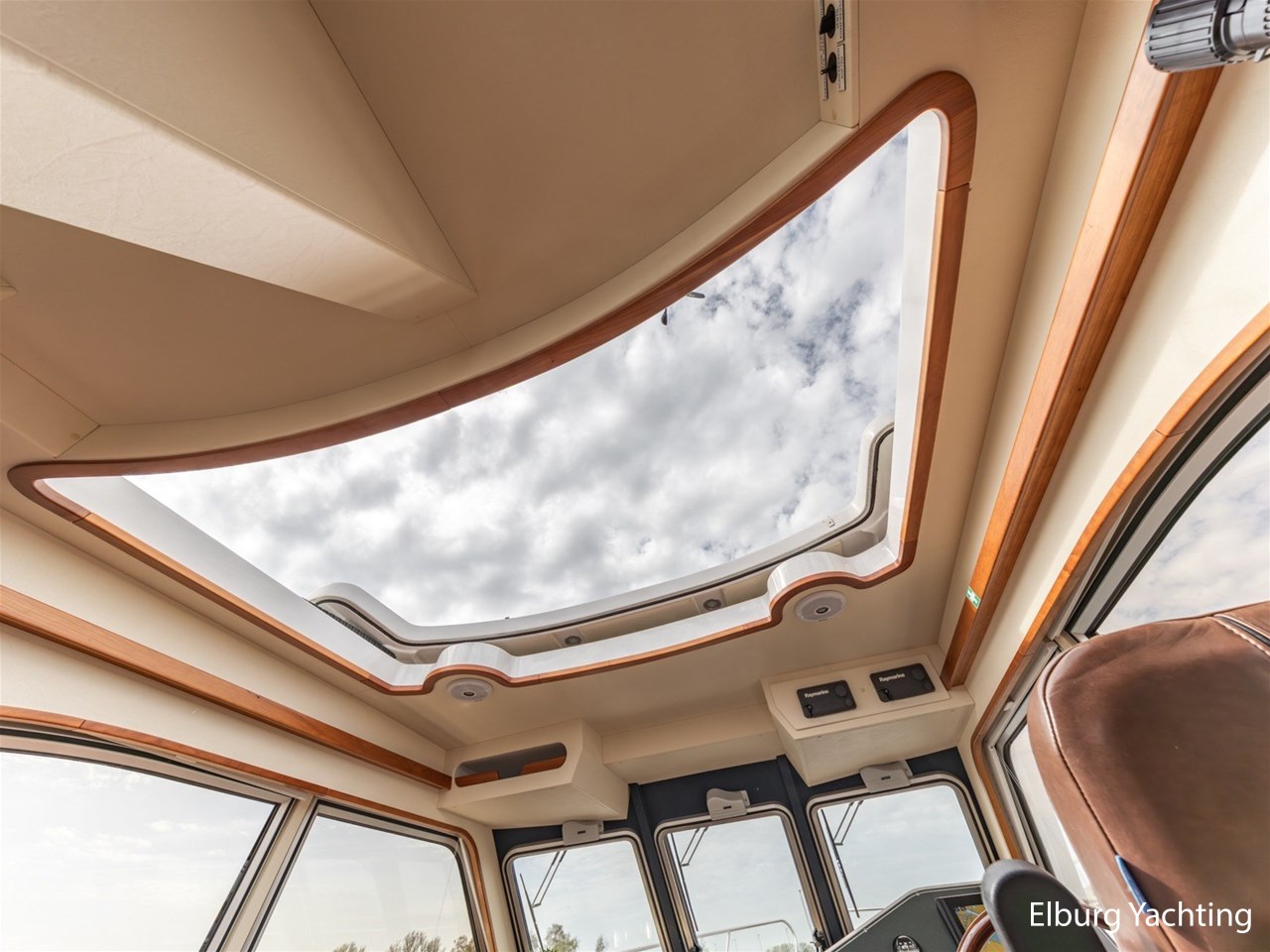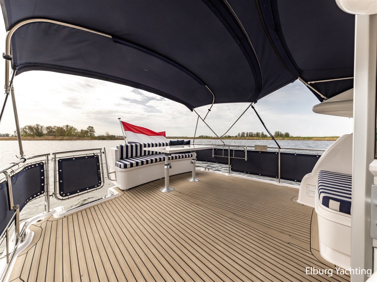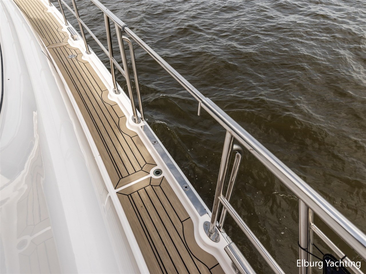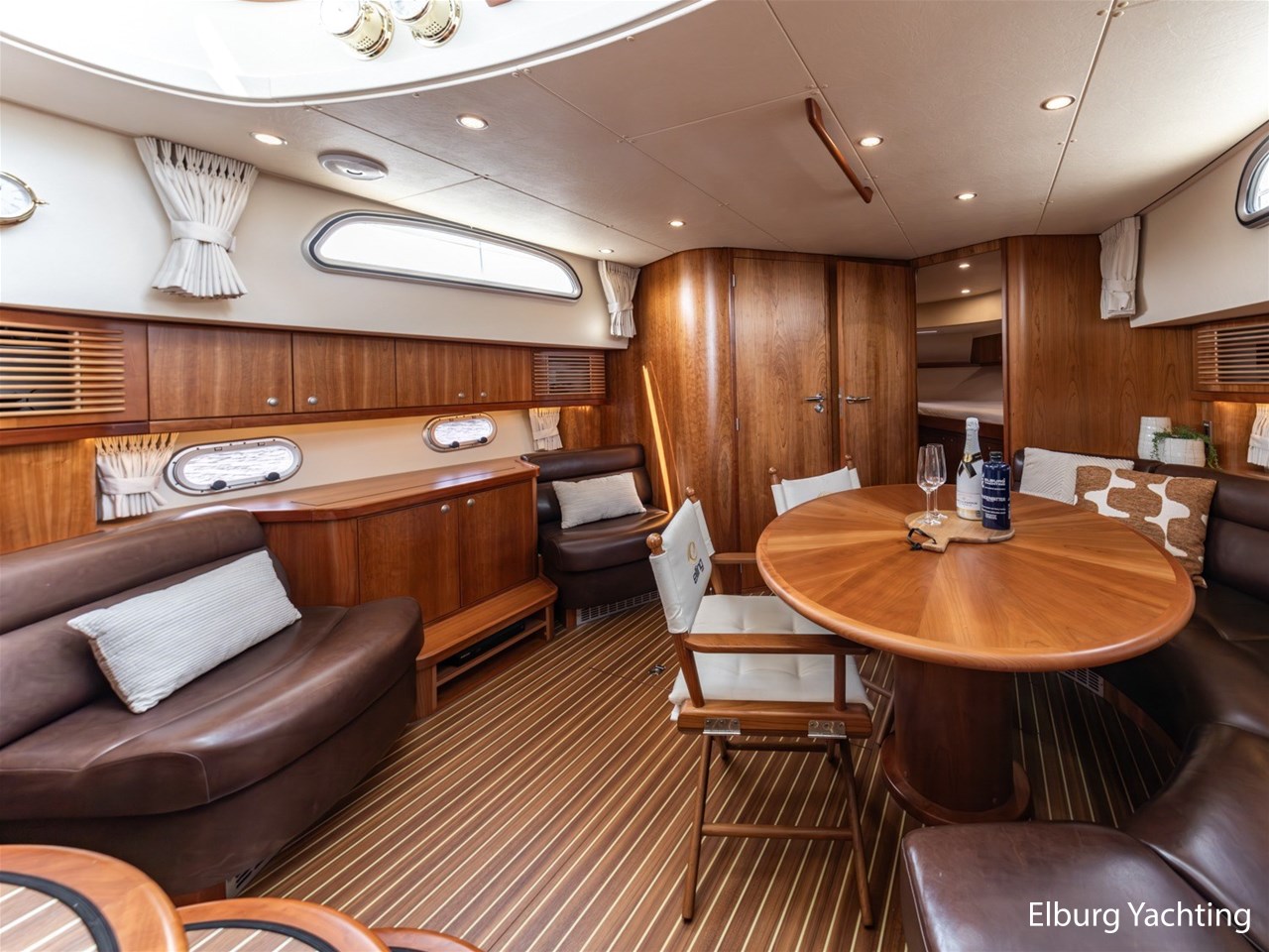 Het jacht heeft een verzorgde uitstraling, een warme afwerking en een praktische indeling met veel leefruimte. Deze uitvoering uit 2018 is bovendien voorzien van de vernieuwde hoekbank bij de stuurstand, vloerverwarming in de stuurhut en Fusion audio.