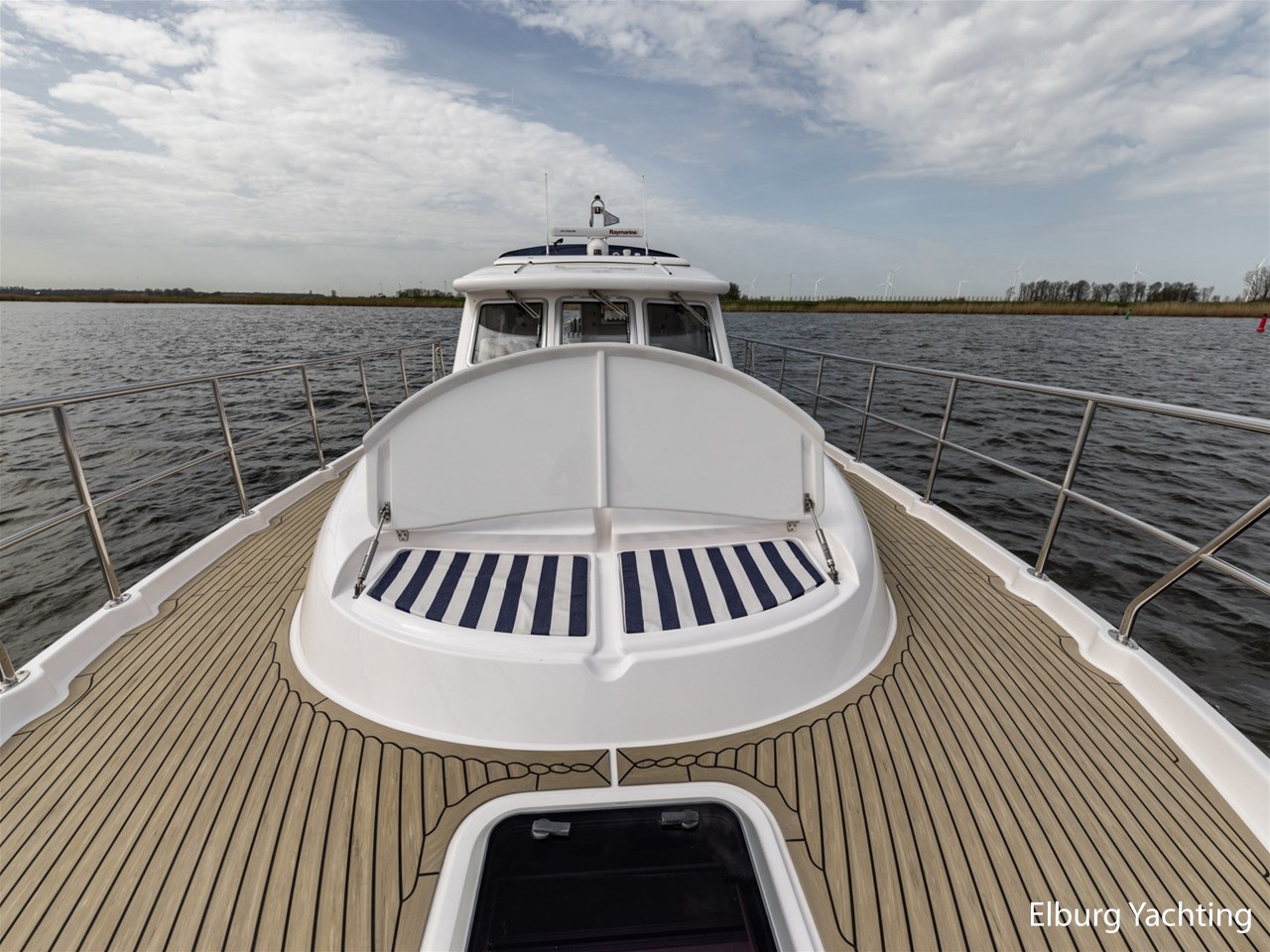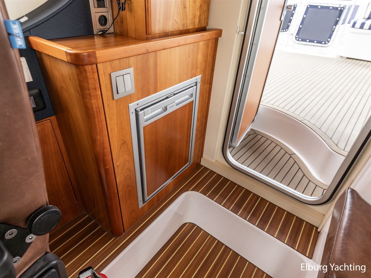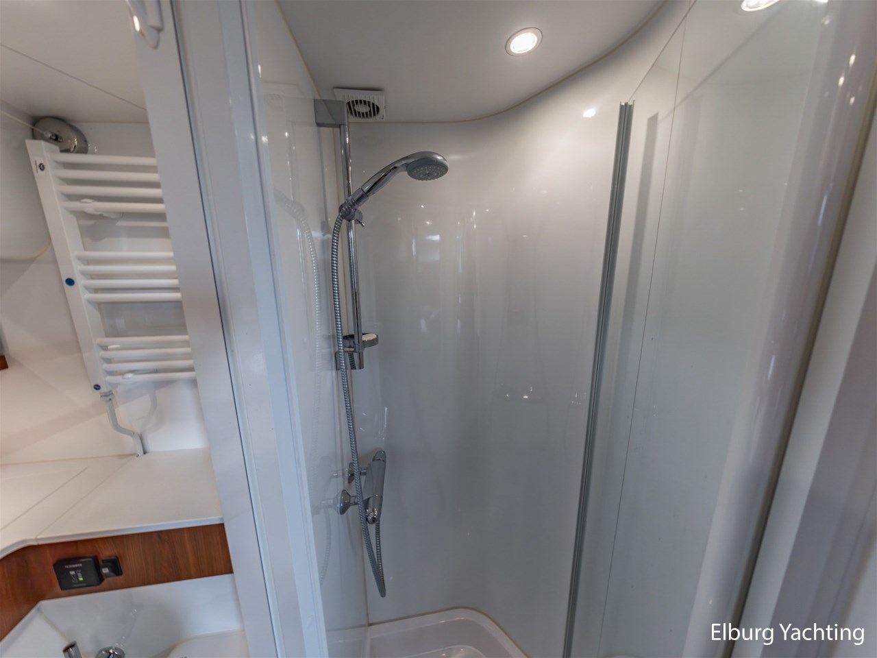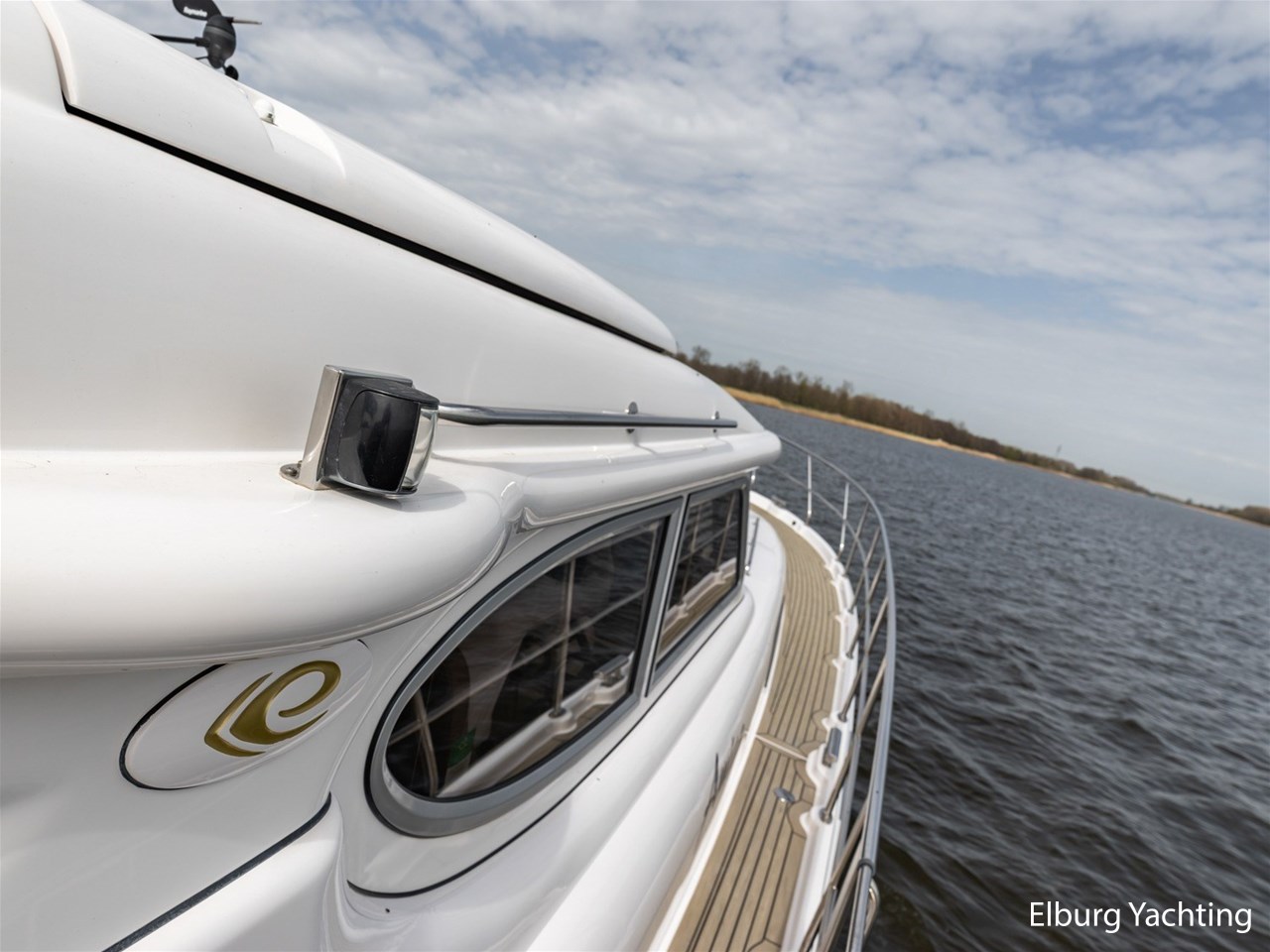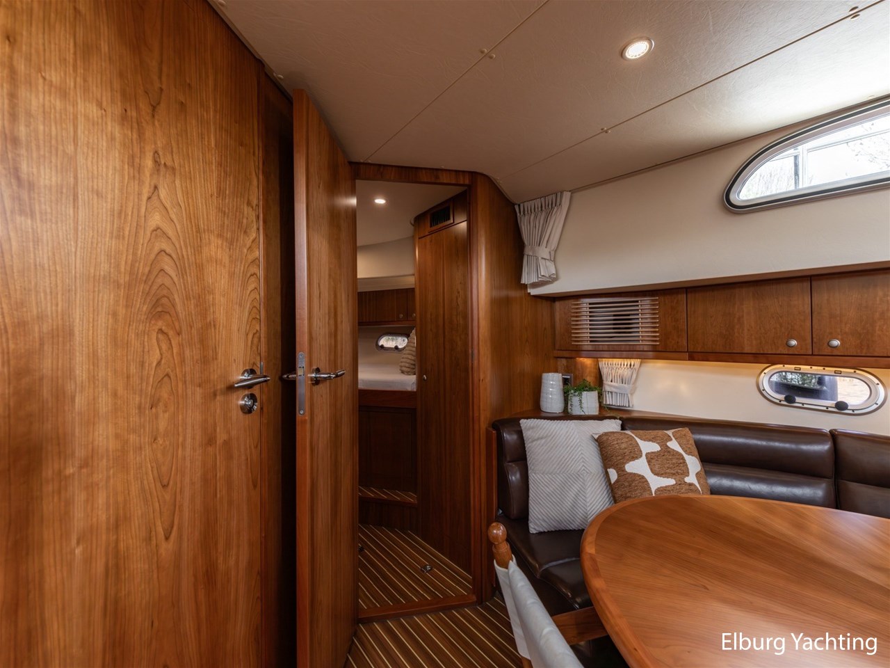 Het jacht heeft een verzorgde uitstraling, een warme afwerking en een praktische indeling met veel leefruimte. Deze uitvoering uit 2018 is bovendien voorzien van de vernieuwde hoekbank bij de stuurstand, vloerverwarming in de stuurhut en Fusion audio.