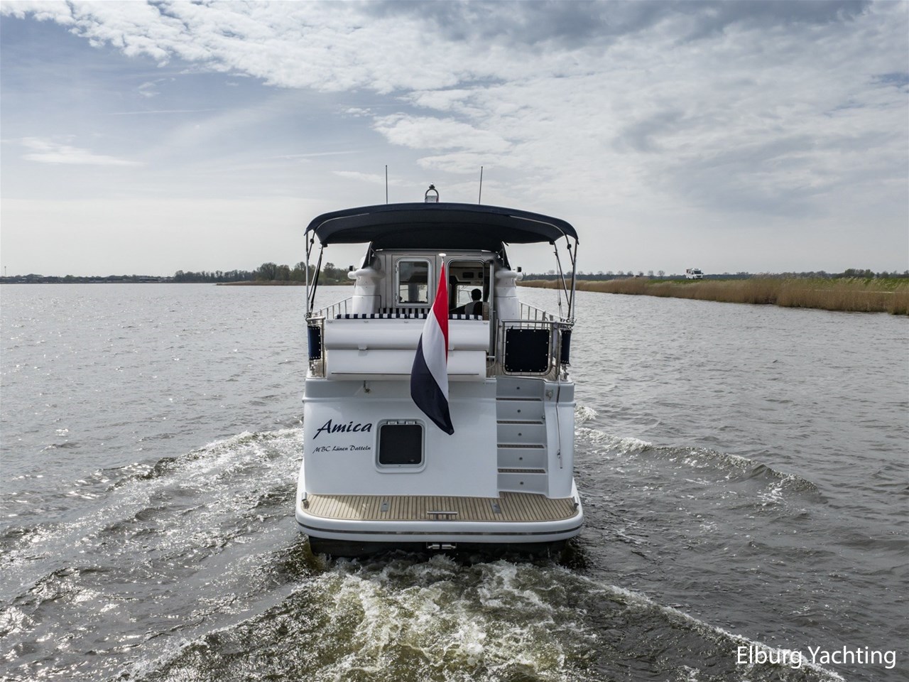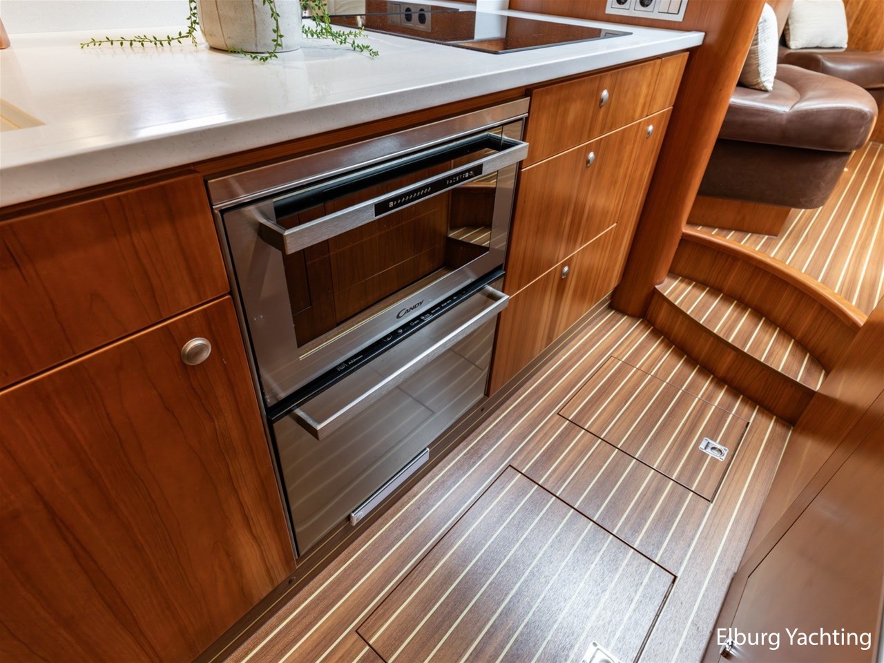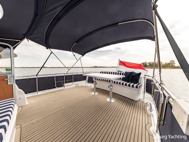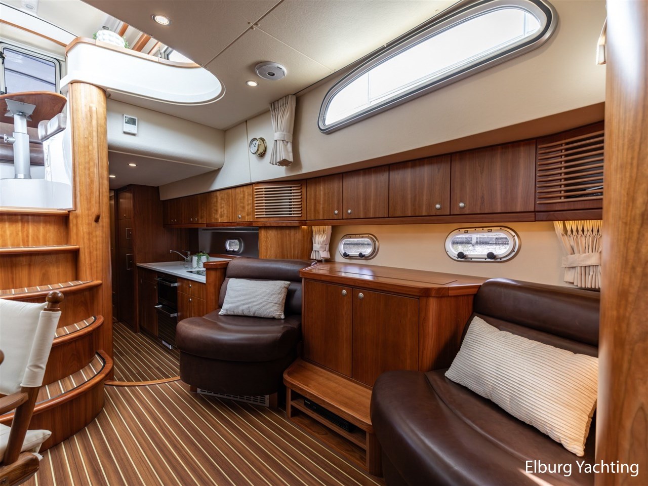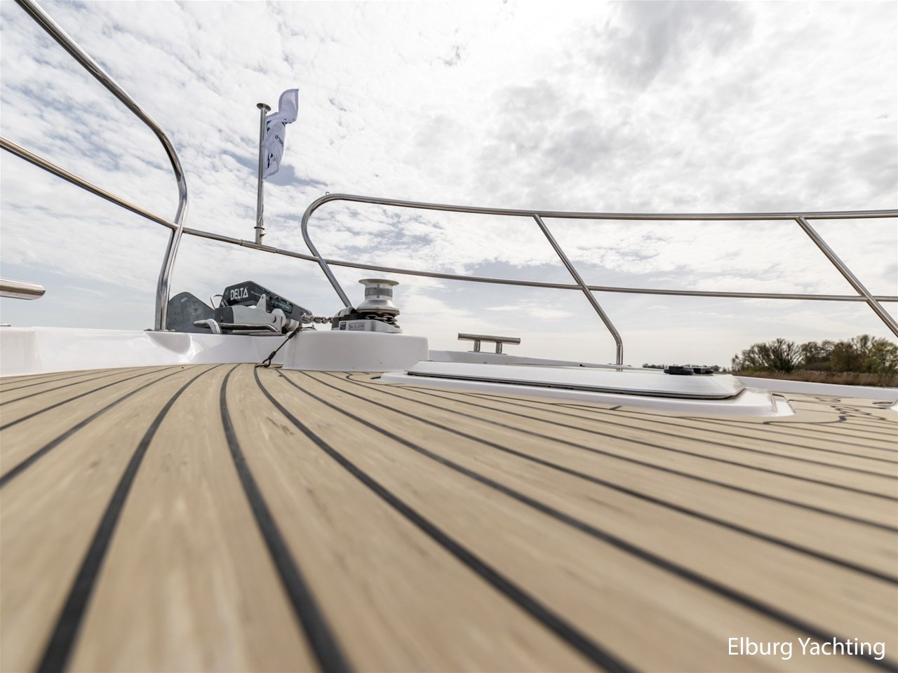 Het jacht heeft een verzorgde uitstraling, een warme afwerking en een praktische indeling met veel leefruimte. Deze uitvoering uit 2018 is bovendien voorzien van de vernieuwde hoekbank bij de stuurstand, vloerverwarming in de stuurhut en Fusion audio.