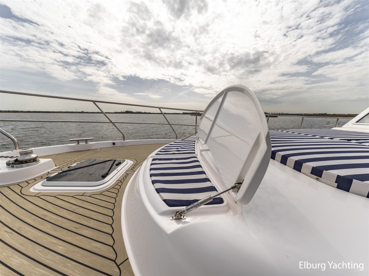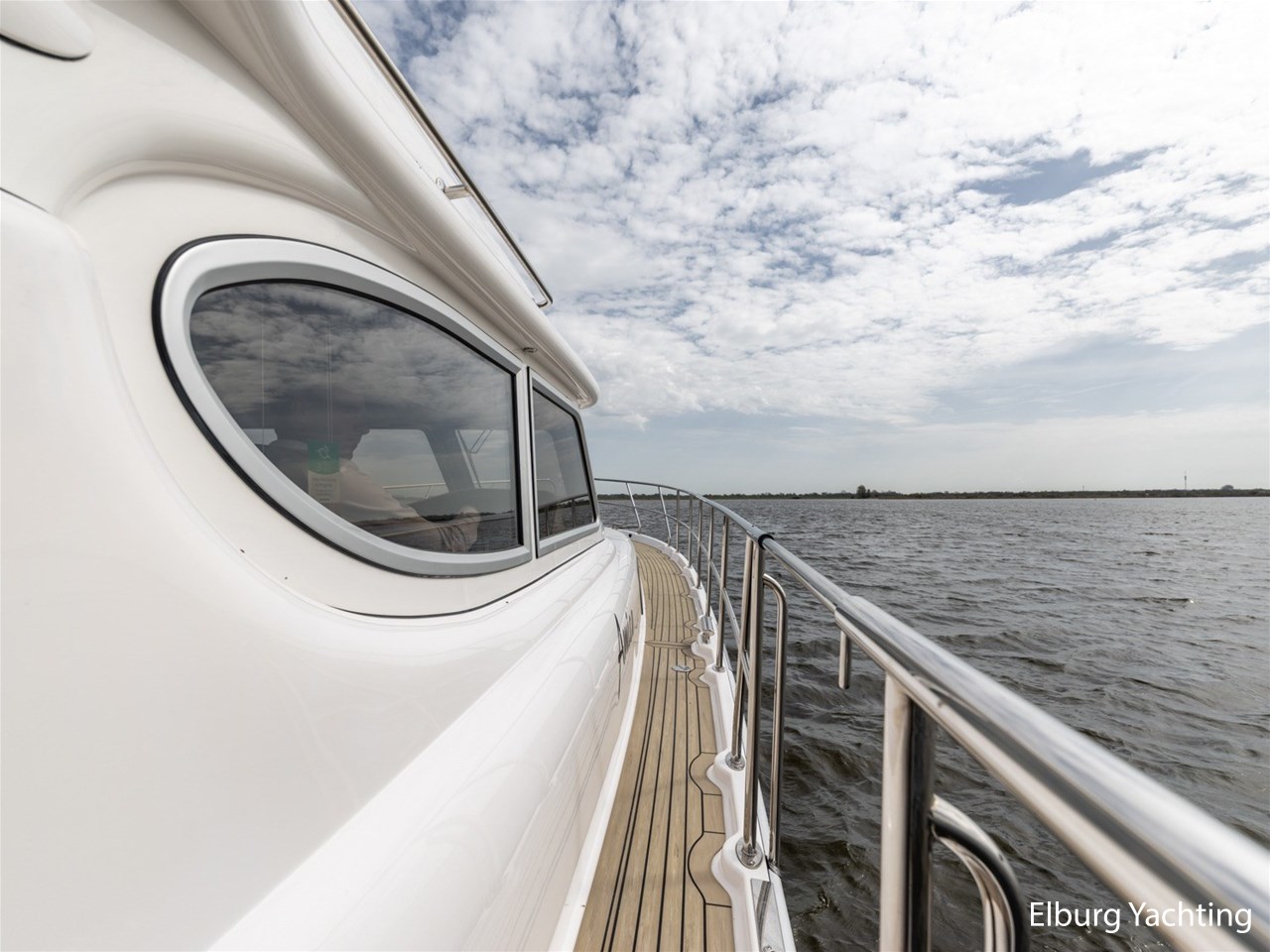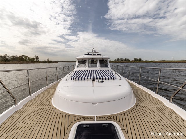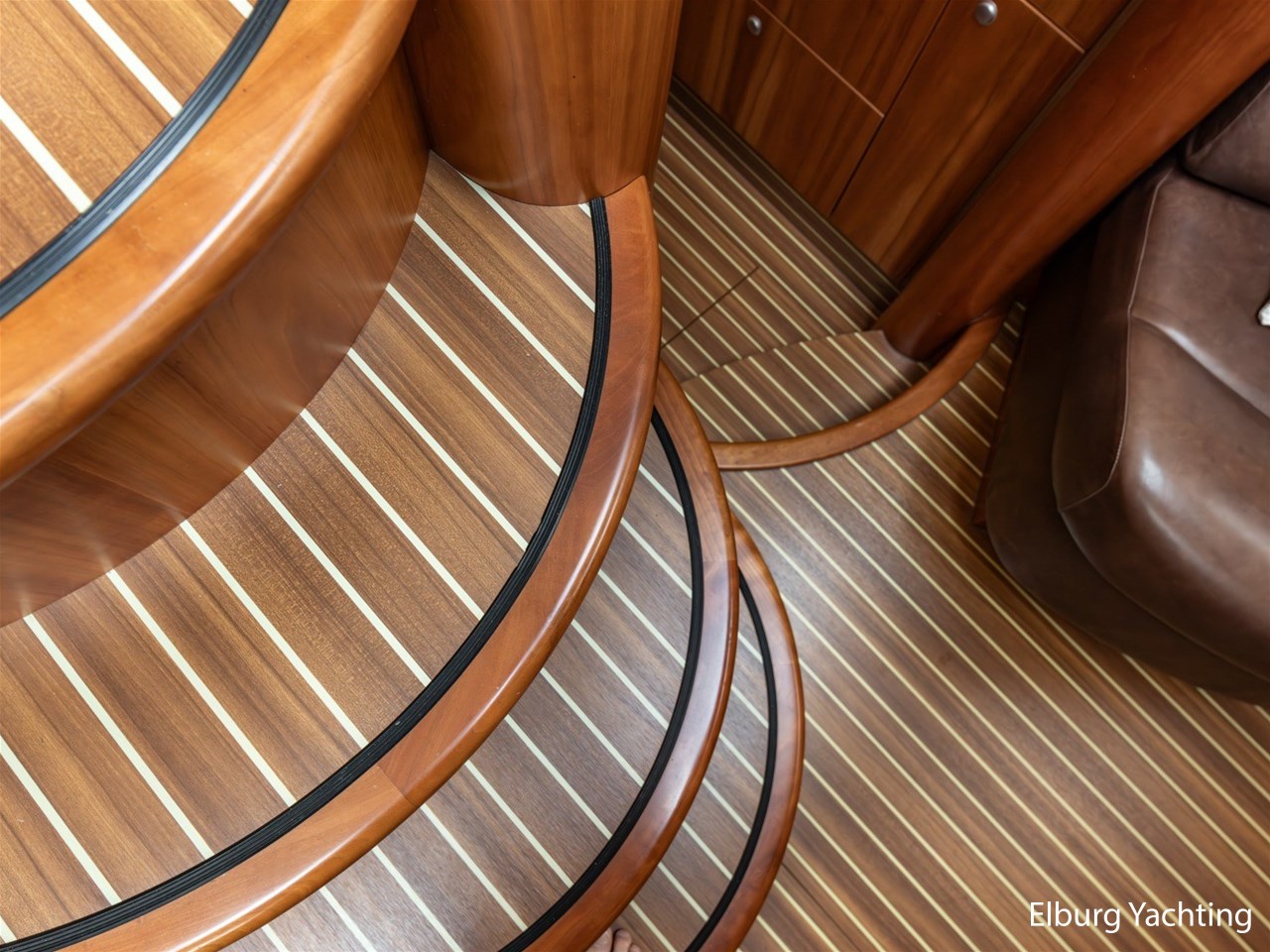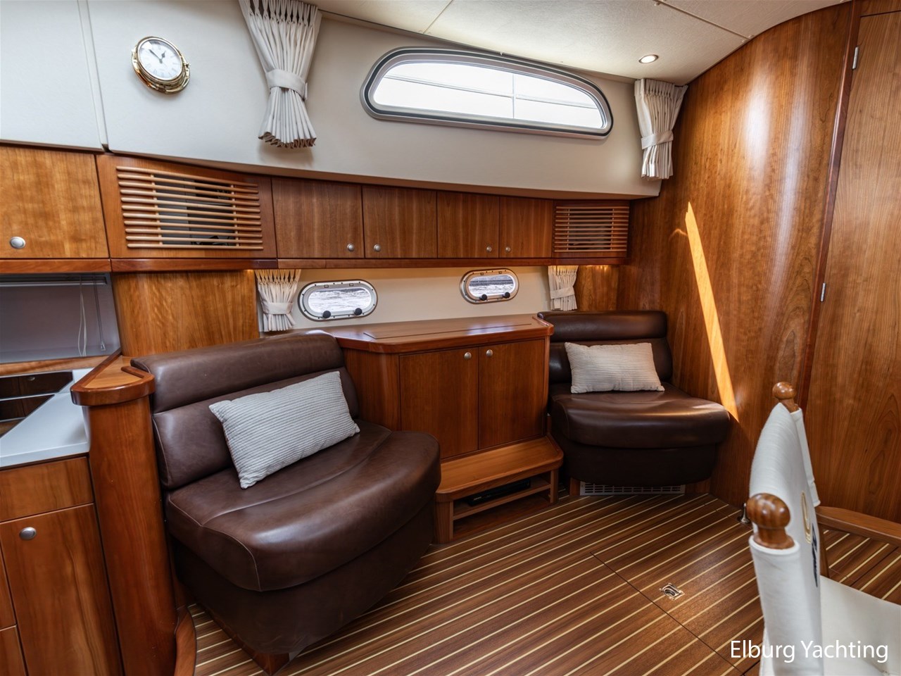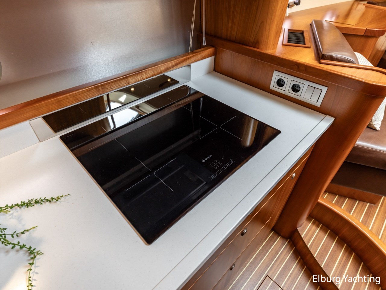 Het jacht heeft een verzorgde uitstraling, een warme afwerking en een praktische indeling met veel leefruimte. Deze uitvoering uit 2018 is bovendien voorzien van de vernieuwde hoekbank bij de stuurstand, vloerverwarming in de stuurhut en Fusion audio.