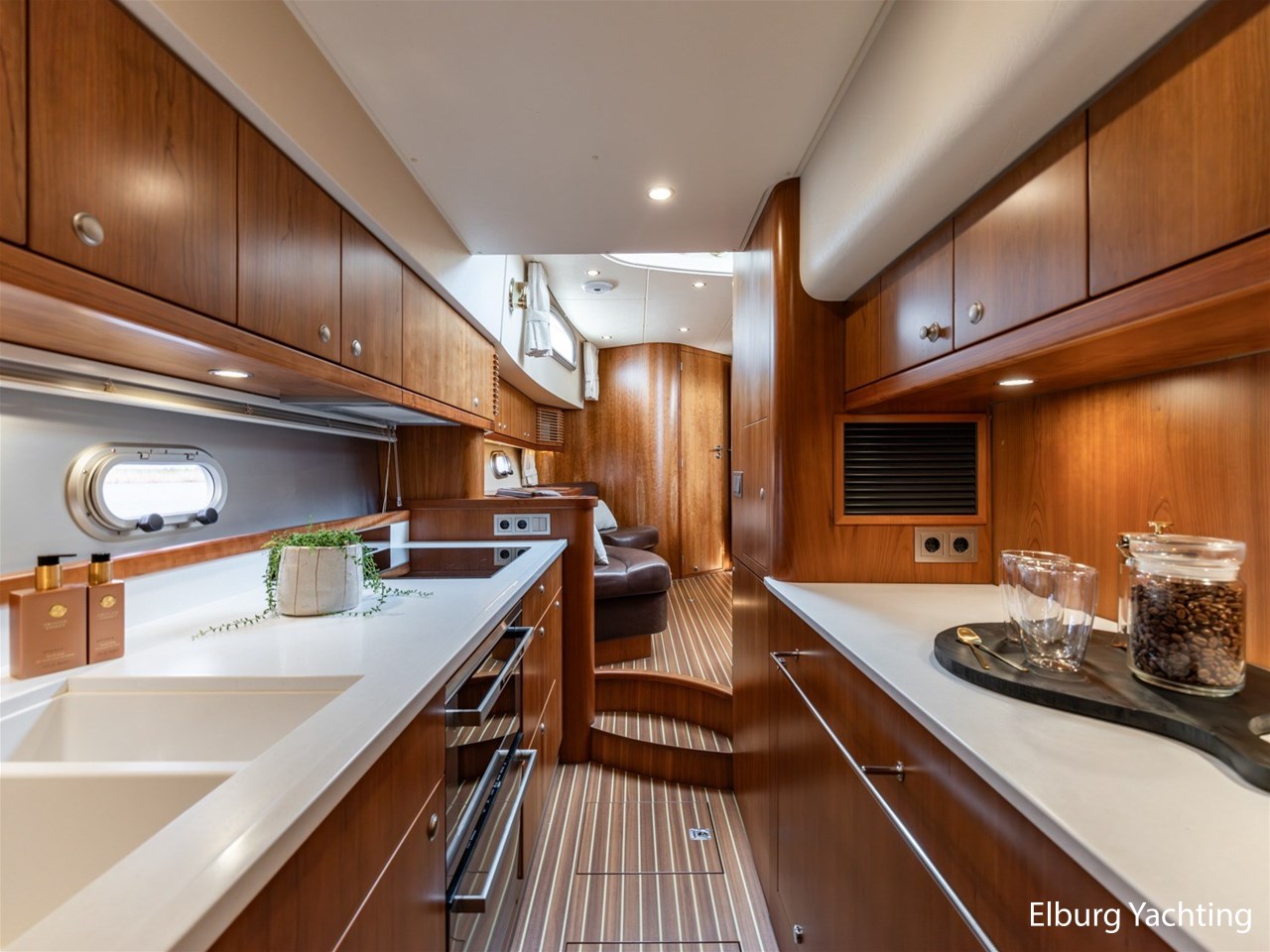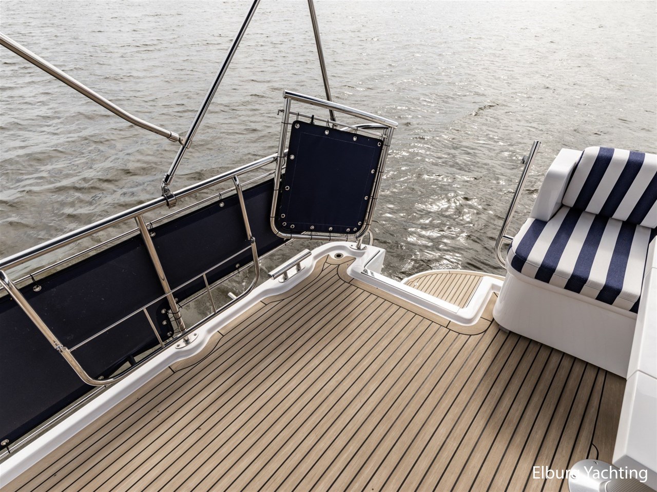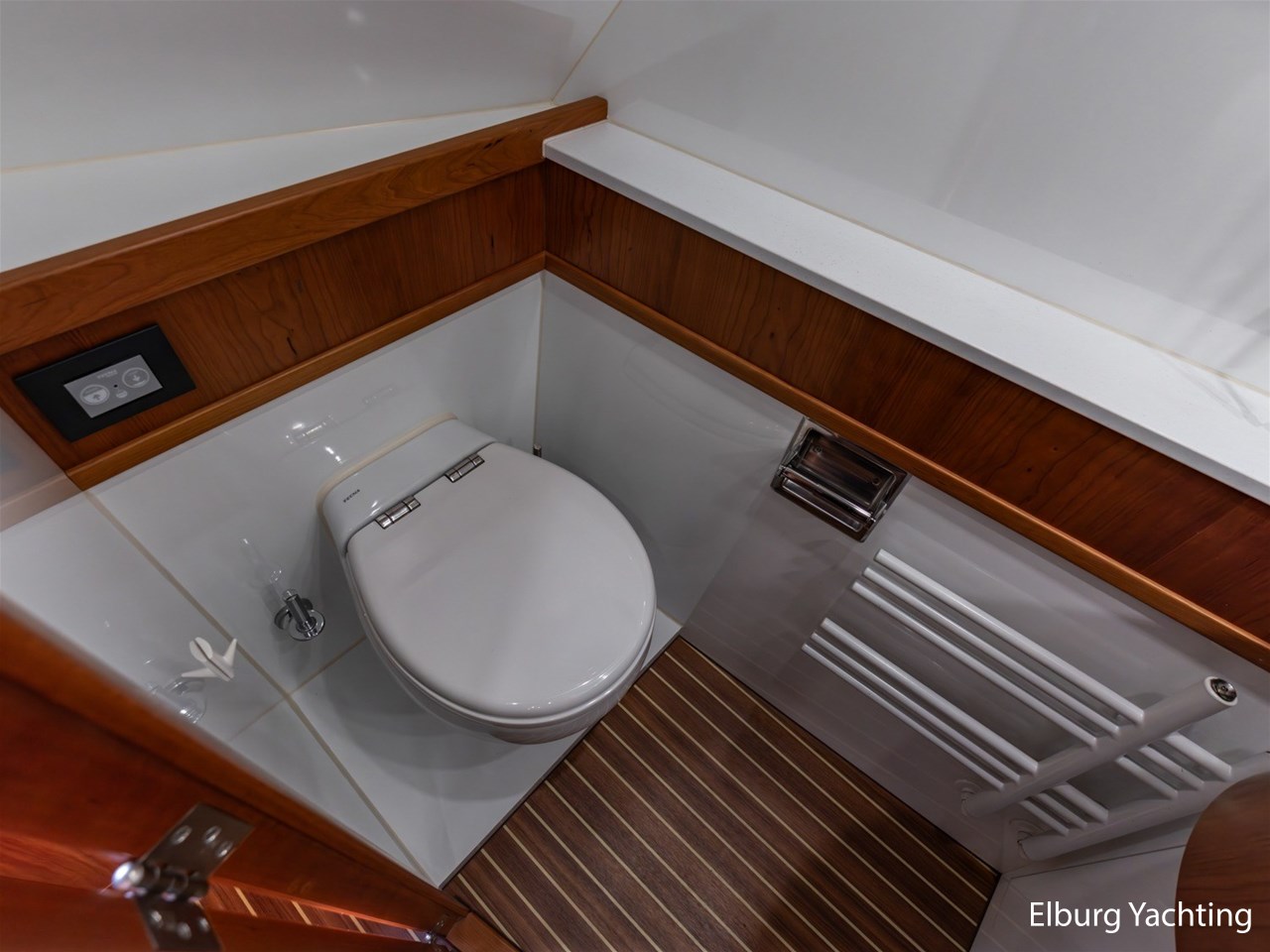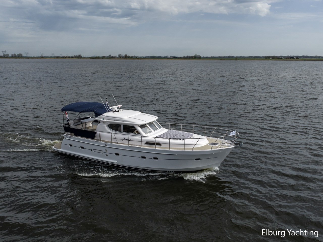 Het jacht heeft een verzorgde uitstraling, een warme afwerking en een praktische indeling met veel leefruimte. Deze uitvoering uit 2018 is bovendien voorzien van de vernieuwde hoekbank bij de stuurstand, vloerverwarming in de stuurhut en Fusion audio.