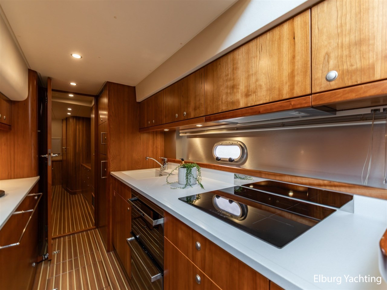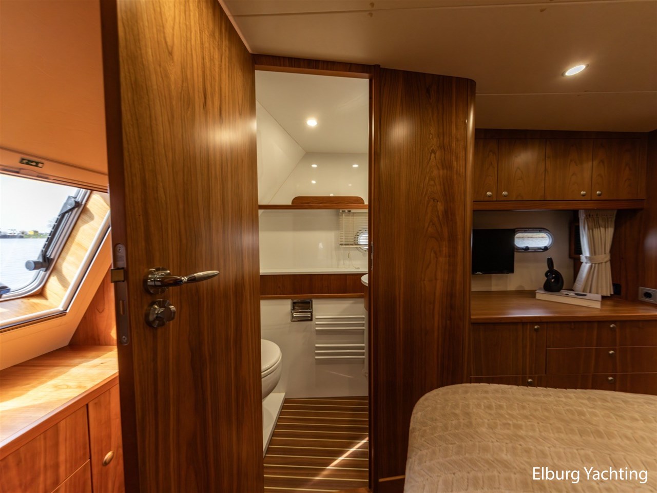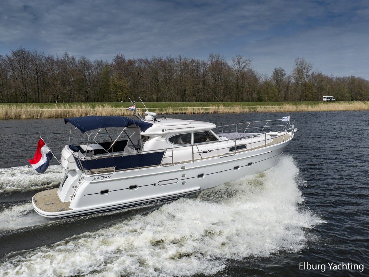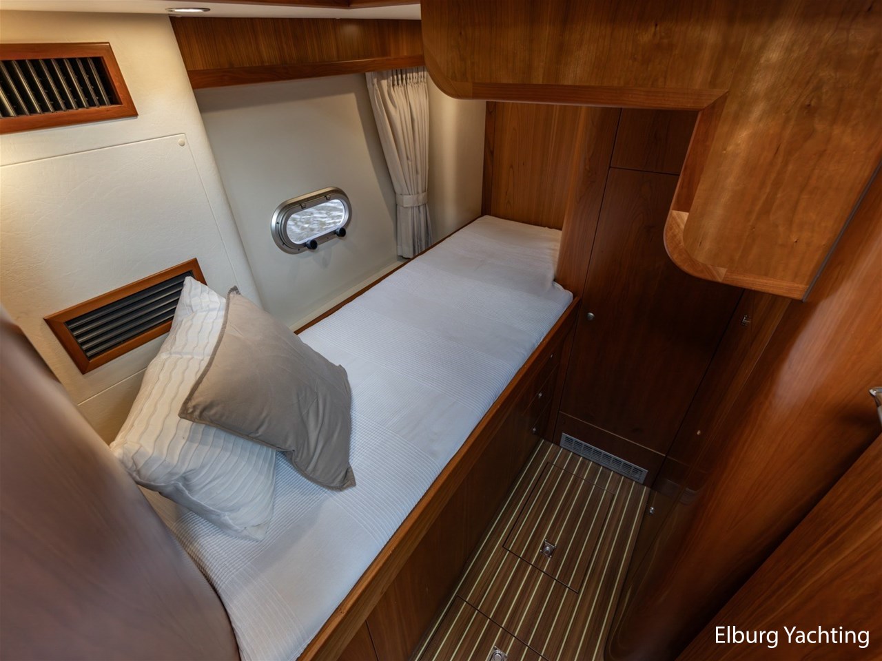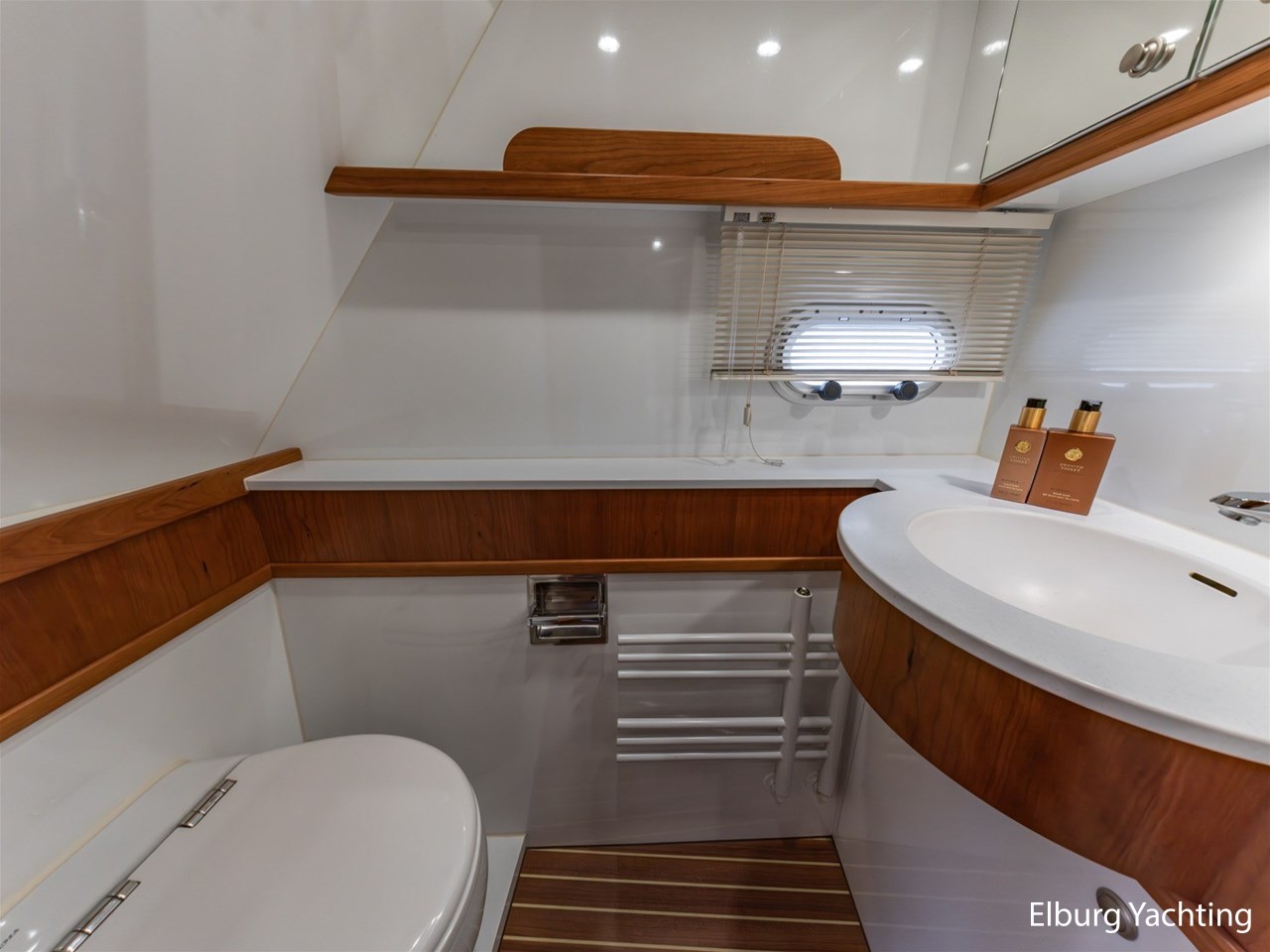 Het jacht heeft een verzorgde uitstraling, een warme afwerking en een praktische indeling met veel leefruimte. Deze uitvoering uit 2018 is bovendien voorzien van de vernieuwde hoekbank bij de stuurstand, vloerverwarming in de stuurhut en Fusion audio.