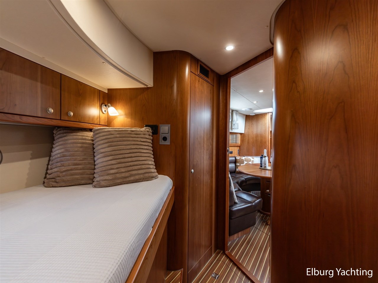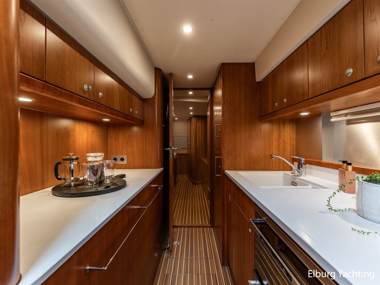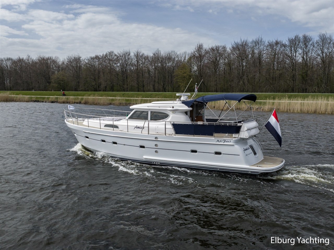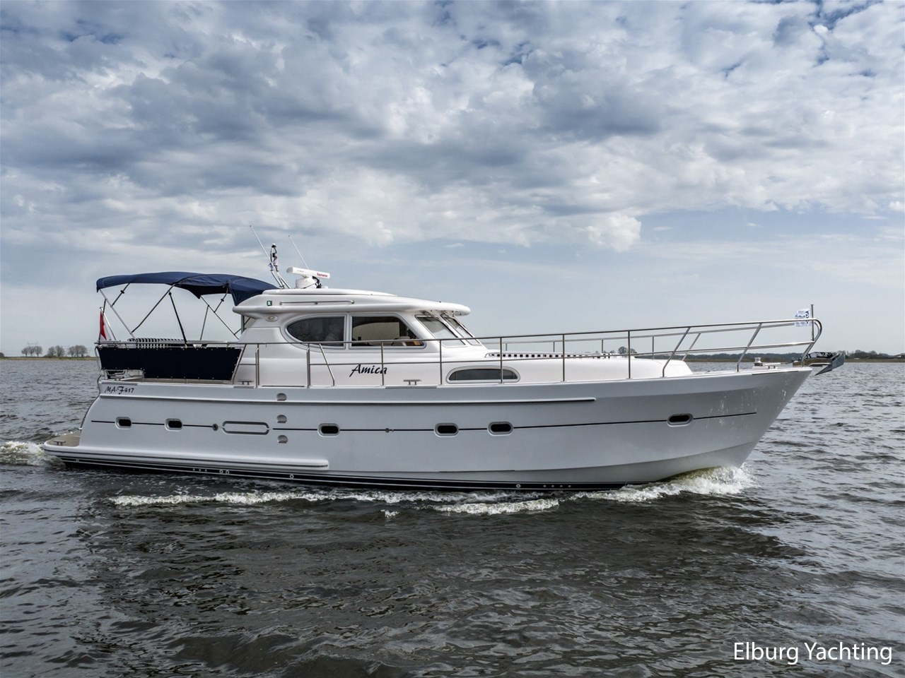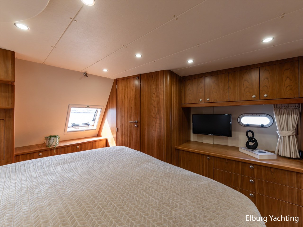 Het jacht heeft een verzorgde uitstraling, een warme afwerking en een praktische indeling met veel leefruimte. Deze uitvoering uit 2018 is bovendien voorzien van de vernieuwde hoekbank bij de stuurstand, vloerverwarming in de stuurhut en Fusion audio.