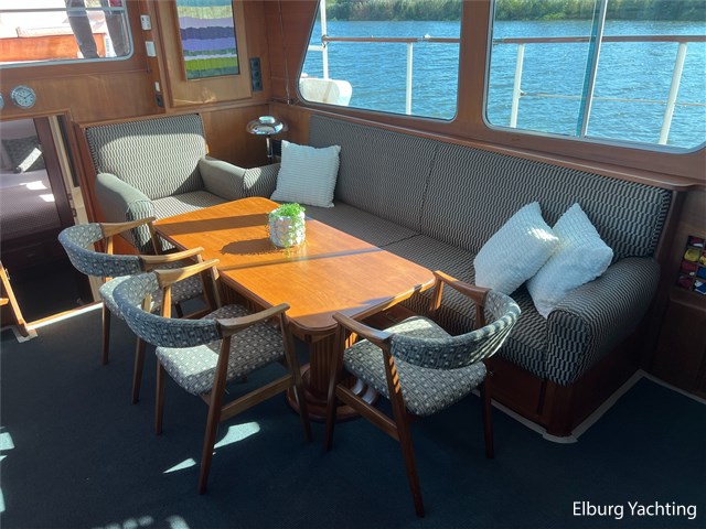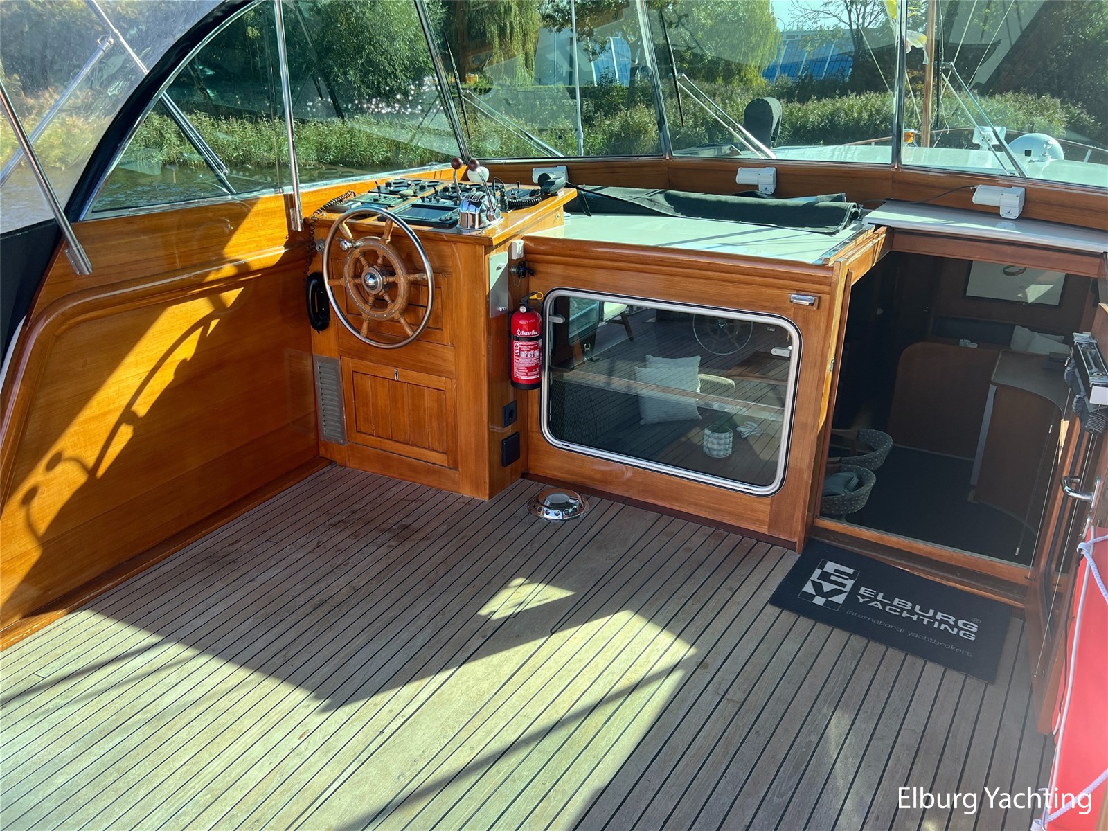 Deze bijzondere Super van Craft is met haar unieke kleurstelling een prachtige klassieke verschijning op het water. Het schip heeft een ruim achterdek met een grote (zomer) bimini en de mogelijkheid om beschut te varen achter de cabrio kap van de stuurstand. De salon is groot genoeg om naast de captain chair met ca. 6 personen plaats te nemen aan de tafel. De laatste jaren is er veel geïnvesteerd om deze Super van Craft weer in een mooie conditie te krijgen, maar er zijn nog klussen aan boord om af te ronden. Het schip is uitgevoerd met: Eigenaarshut met groot vrijstaand bed, grote bimini over achterdek, Sunbrella afdekhoezen voor o.a (bank op achterdek, loopplank, ankerlier), machinekamer geschilderd in 2022 + motoren geschilderd, dynamo's gereviseerd en nieuwe uitlaatdempers geplaatst in 2022, granieten aanrechtblad in keuken met Franke r.v.s. spoelbak, nieuw plafond in keuken met dimbare LED spots, Siemens vaatwasser, zwarte lamellen voor alle ramen in salon, vernieuwde badkamer in eigenaarshut met o.a nieuwe wasbak, nieuwe kraan, nieuwe marmeren topblad, houten opbouw en potdeksels in 2022 volledig kaal gehaald en opnieuw opgebouwd, Jabsco schijnwerper, in 2022 salon dak opnieuw geschilderd, alle chrome details zijn opnieuw verchroomd in 2022, generator vervangen voor een gebruikte Onan 4kW model in 2024, AIS met zichtbaarheid op het plotterscherm. Het teak dek op het schip is nog een punt van aandacht waar de volgende eigenaar mee aan de slag kan. Het is een zeer ruim opgezette Super van Craft met 3 hutten en 2 badkamers.
