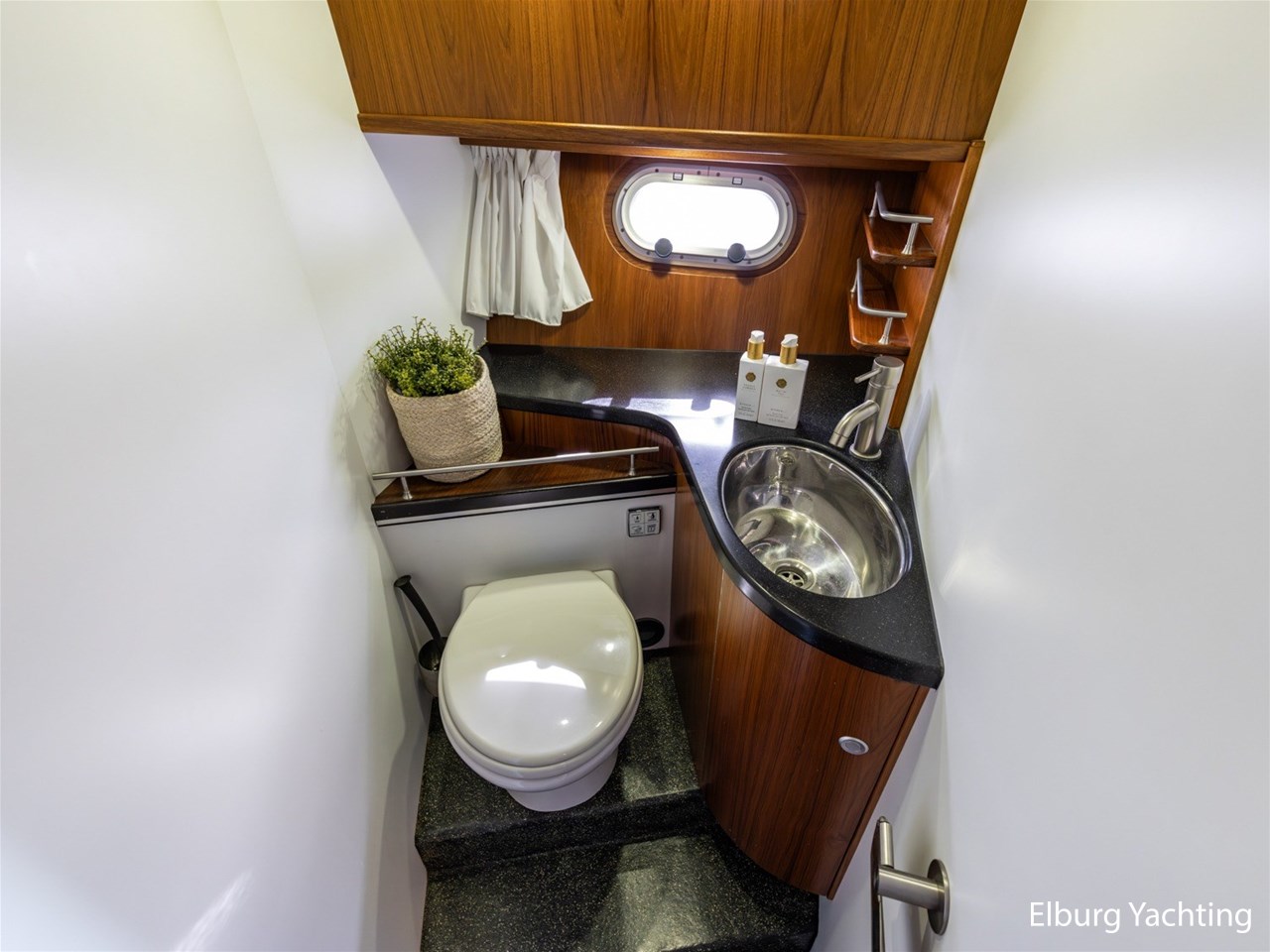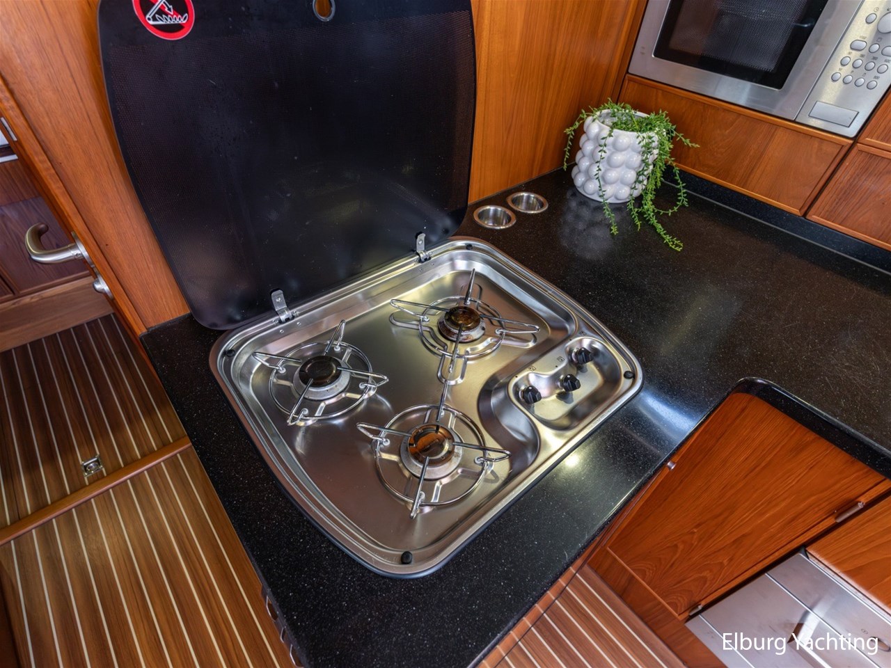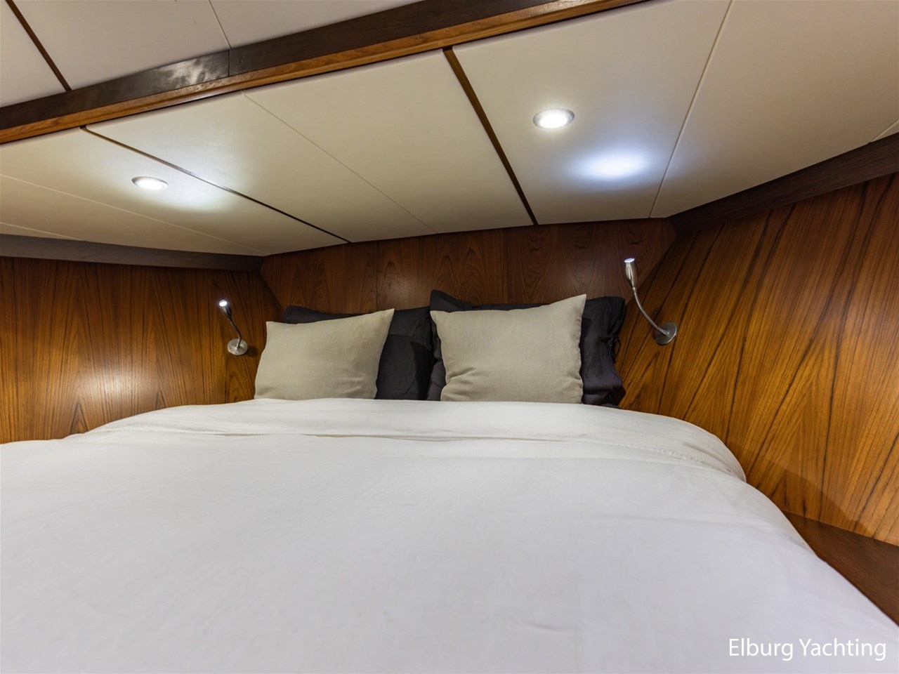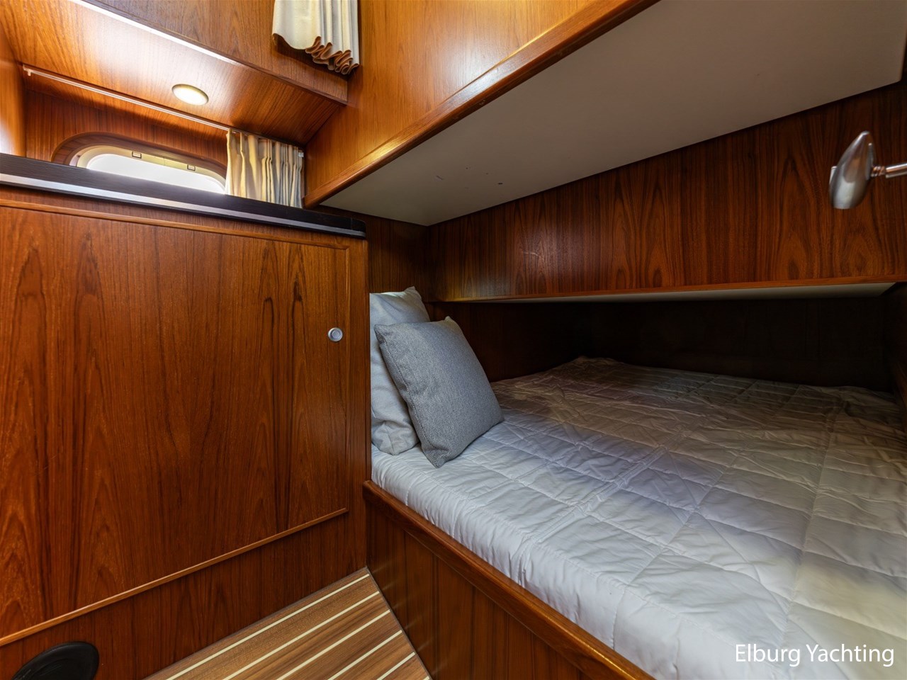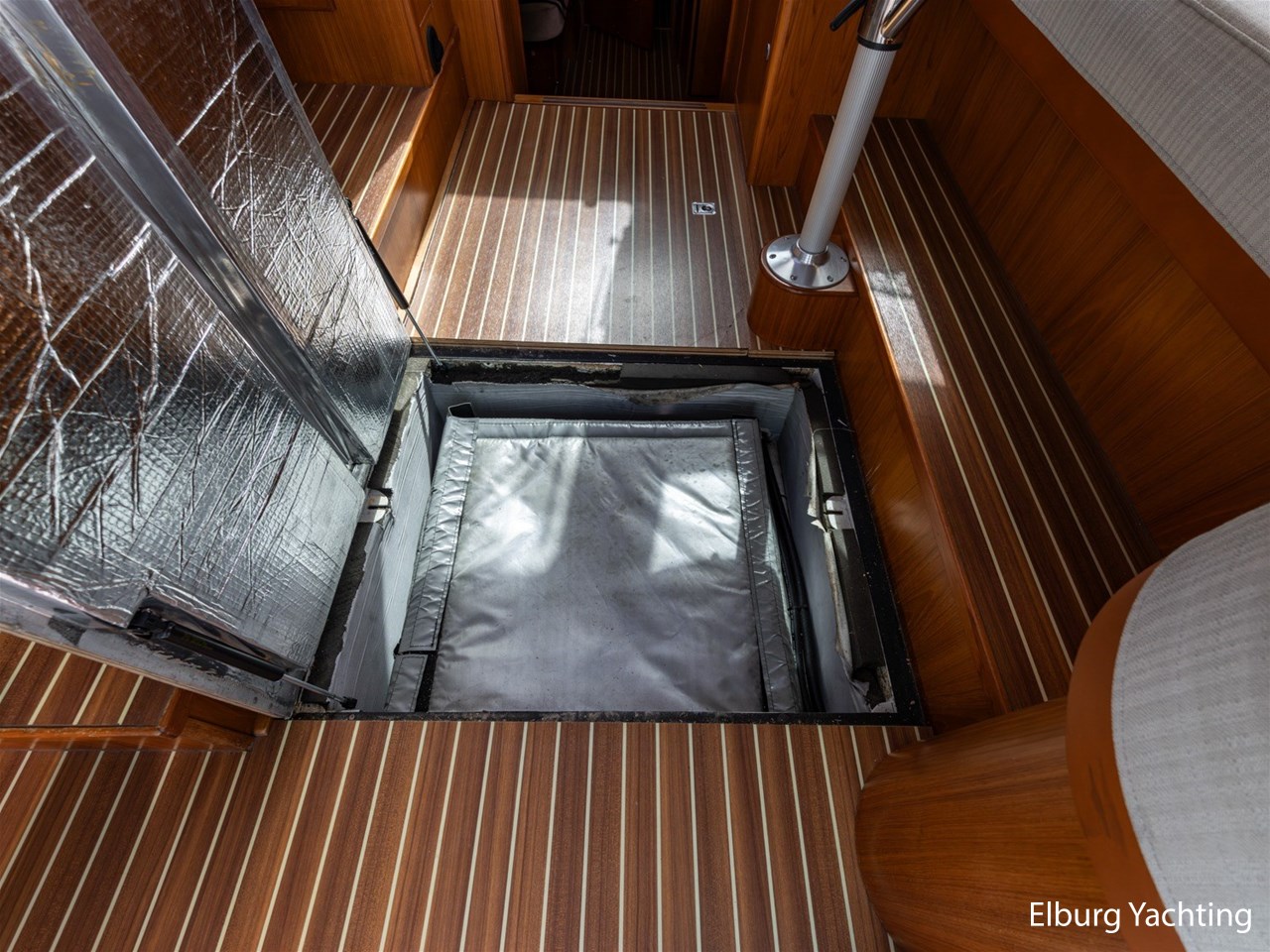 - Teak scheepsinterieur met wengé afwerking en r.v.s. accenten