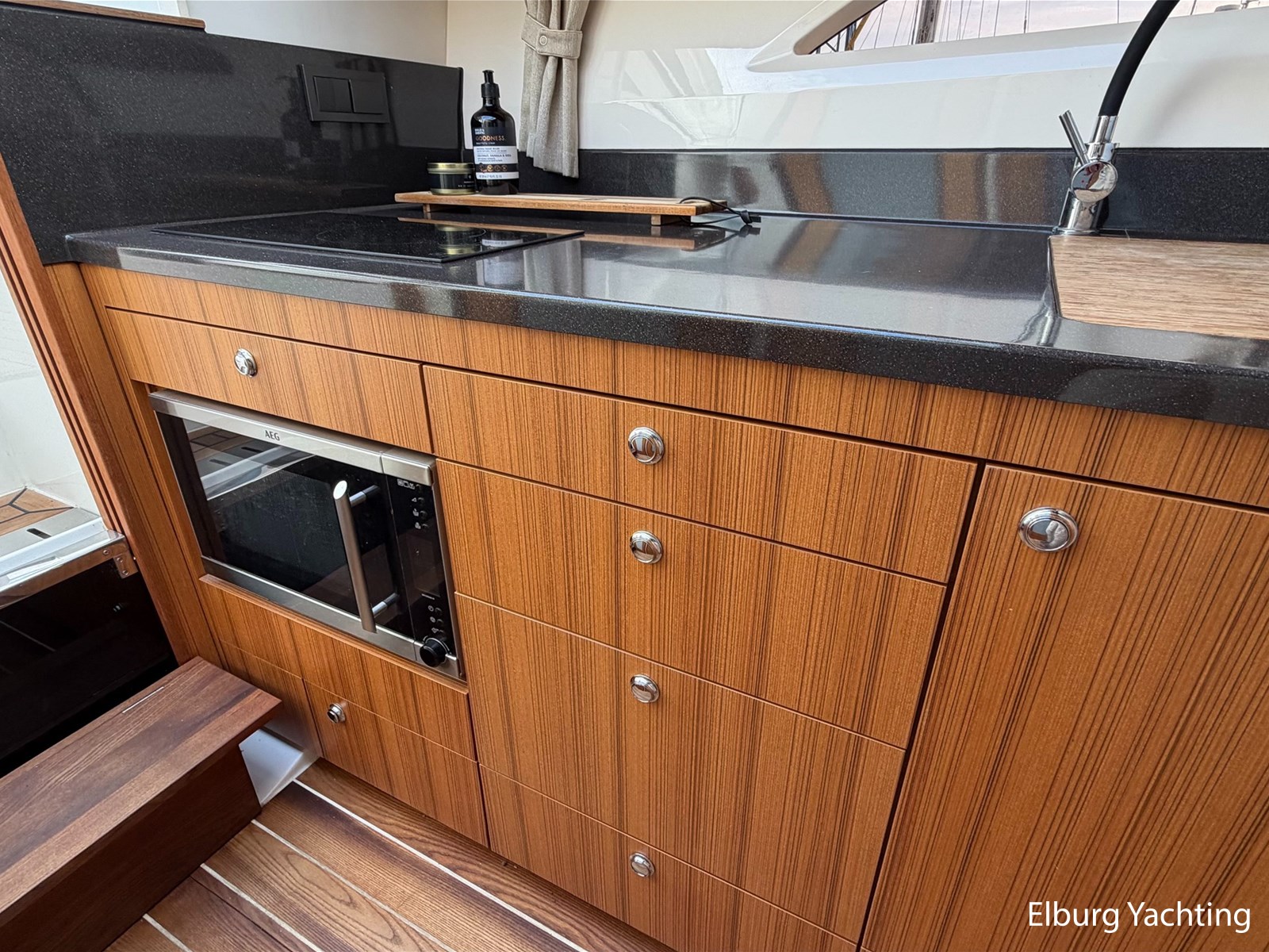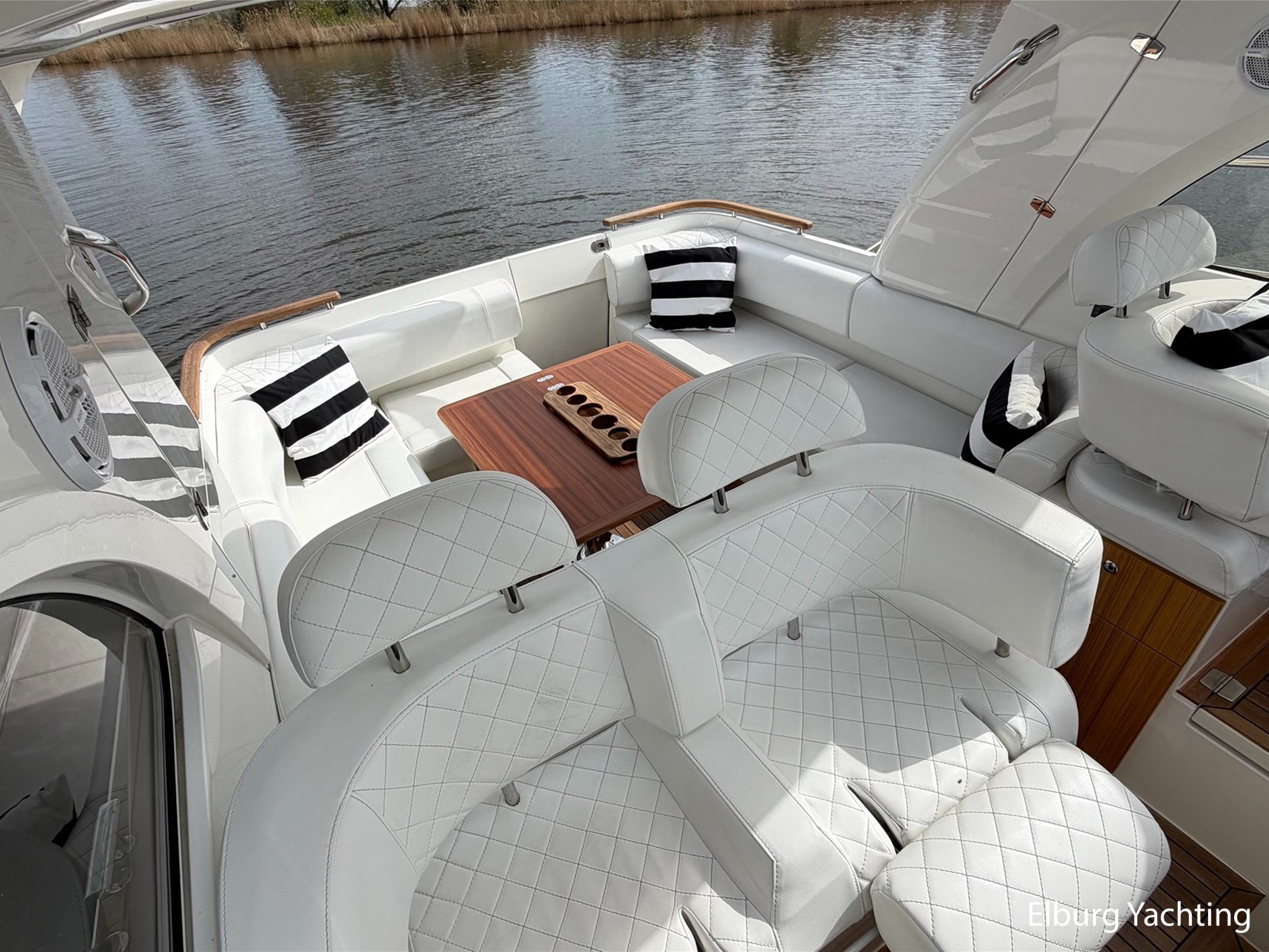 Verder beschikt het jacht over een royale open kuip met veel leefruimte, drie comfortabele vaarstoelen, sfeerverlichting in de kuip, horren, een stevige stootrand, dubbele RVS-railing rondom en, dankzij de slimme indeling, veel opbergruimte.